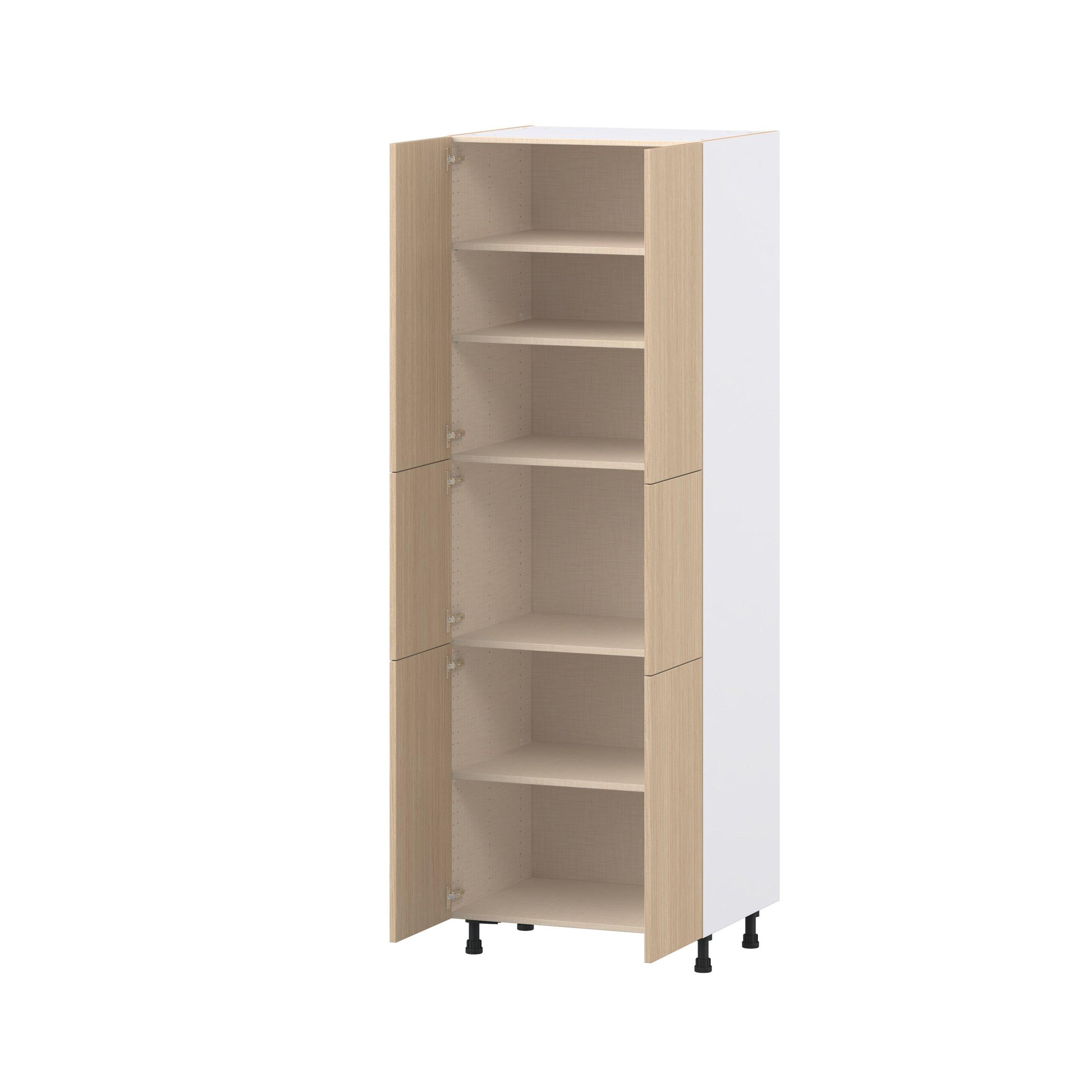 Elevate your project with the contemporary charm of Glenwood slab-style cabinets. Available in desert Mojavi oak and rich burnt walnut finishes, this collection captures the warmth and beauty of natural wood with the practicality of textured melamine. Crafted from one-piece MDF Studio Design Collection Glenwood 30 in. Mojavi Oak Door Pantry Cabinet is designed to resist hairline cracks while the easy-to-clean finish stands up to stains and moisture. Featuring 5-piece doors and dovetail drawer joints, these cabinets offer durability and elegance. This collection combines style with everyday storage solutions.
