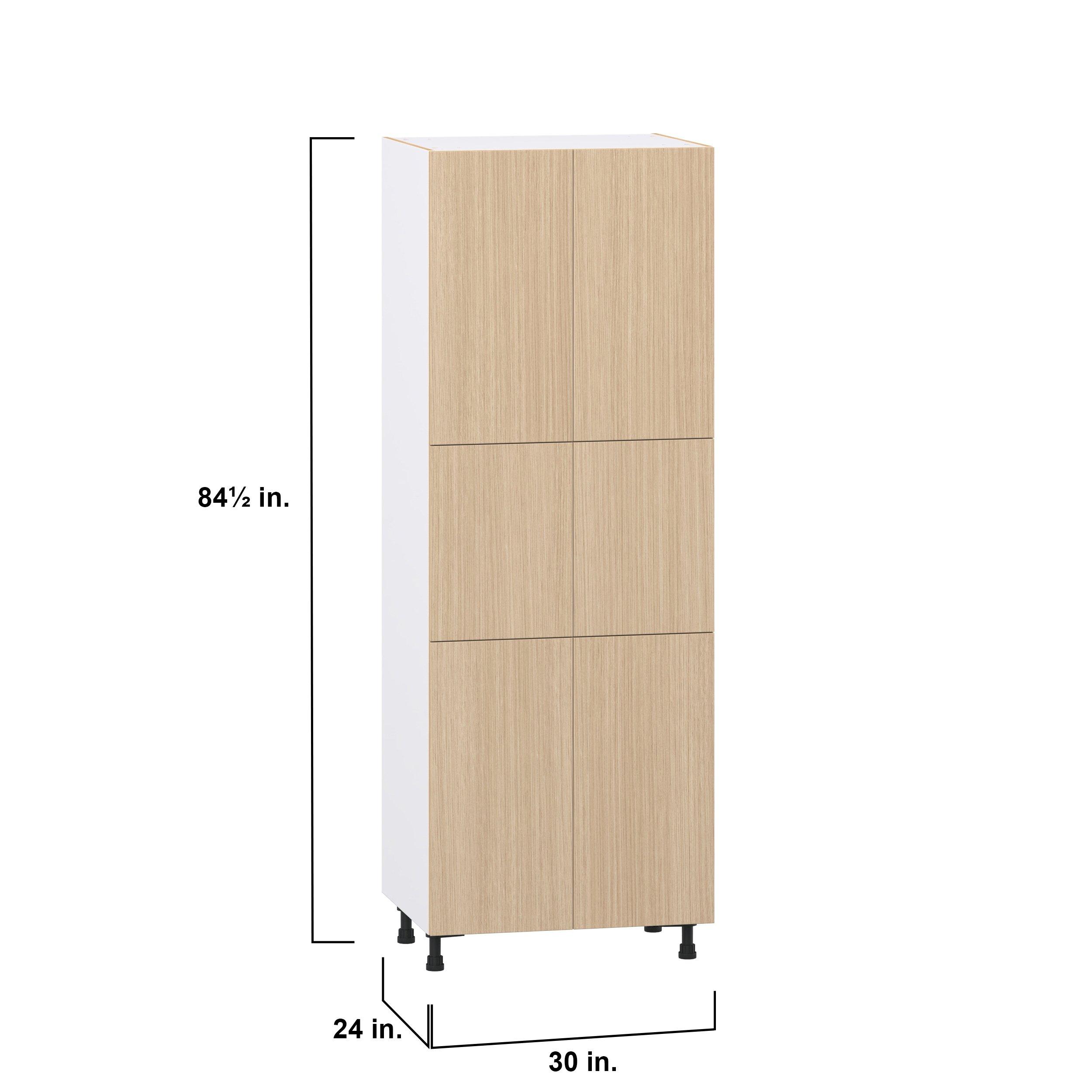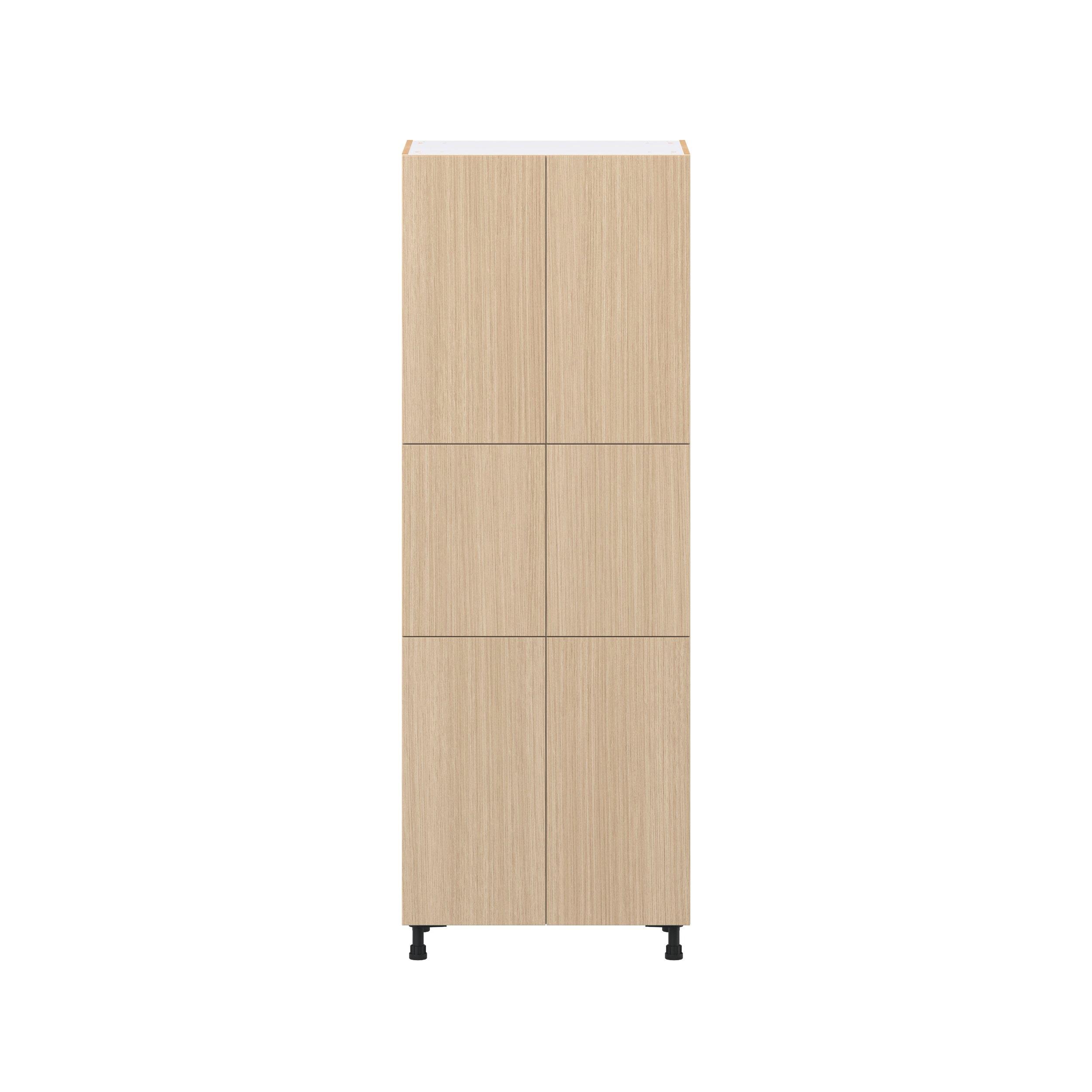 Elevate your project with the contemporary charm of Glenwood slab-style cabinets. Available in desert Mojavi oak and rich burnt walnut finishes, this collection captures the warmth and beauty of natural wood with the practicality of textured melamine. Crafted from one-piece MDF Studio Design Collection Glenwood 30 in. Mojavi Oak Door Pantry Cabinet is designed to resist hairline cracks while the easy-to-clean finish stands up to stains and moisture. Featuring 5-piece doors and dovetail drawer joints, these cabinets offer durability and elegance. This collection combines style with everyday storage solutions.