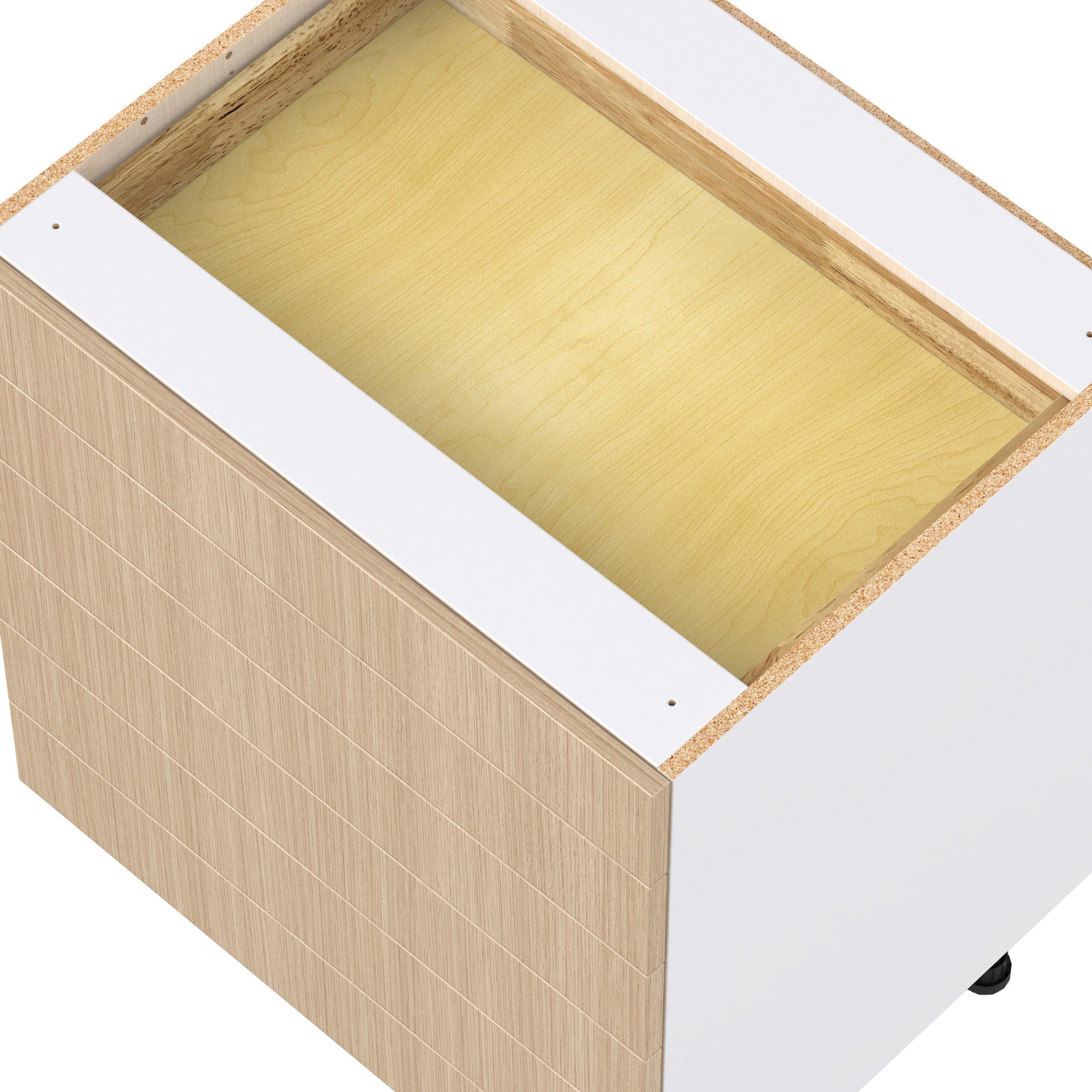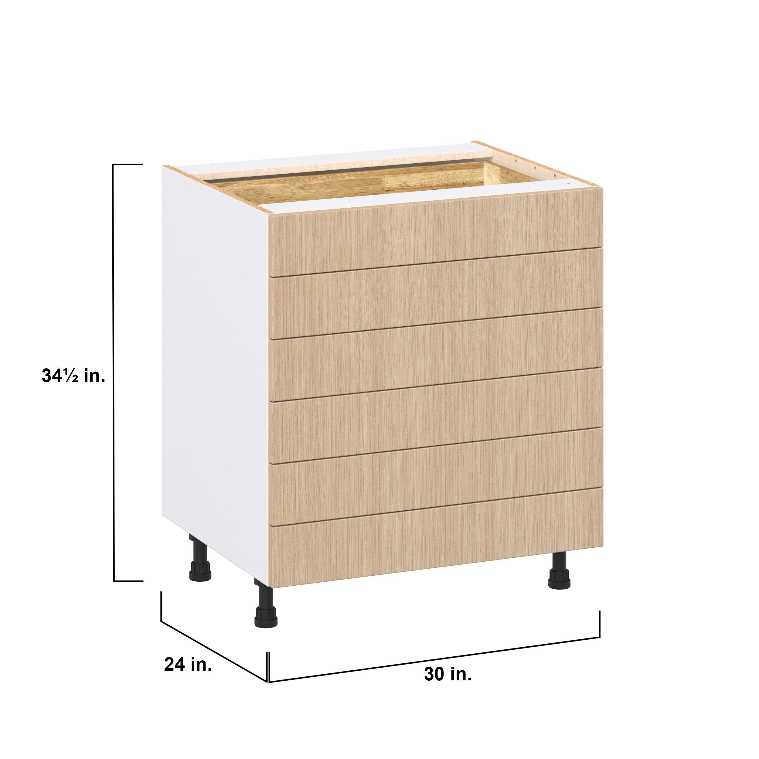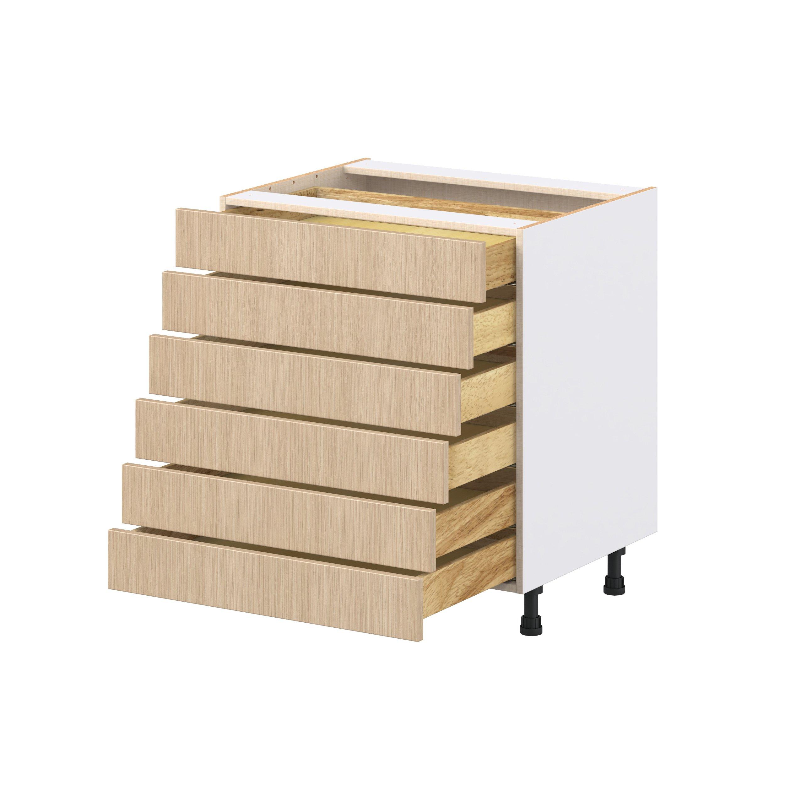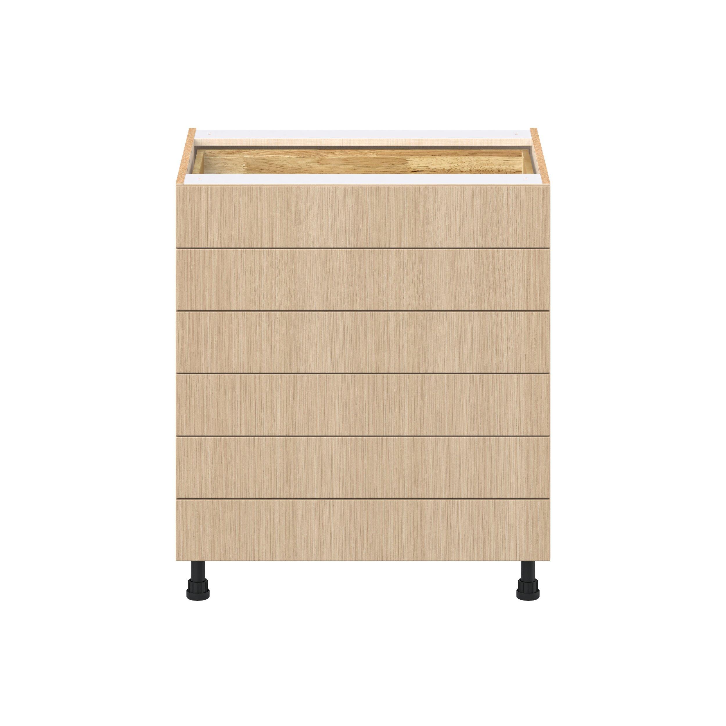 Elevate your project with the contemporary charm of Glenwood slab-style cabinets. Available in desert Mojavi oak and rich burnt walnut finishes, this collection captures the warmth and beauty of natural wood with the practicality of textured melamine. Crafted from one-piece MDF Studio Design Collection Glenwood 30 in. Mojavi Oak Drawer Base Cabinet is designed to resist hairline cracks while the easy-to-clean finish stands up to stains and moisture. Featuring 5-piece doors and dovetail drawer joints, these cabinets offer durability and elegance. This collection combines style with everyday storage solutions.