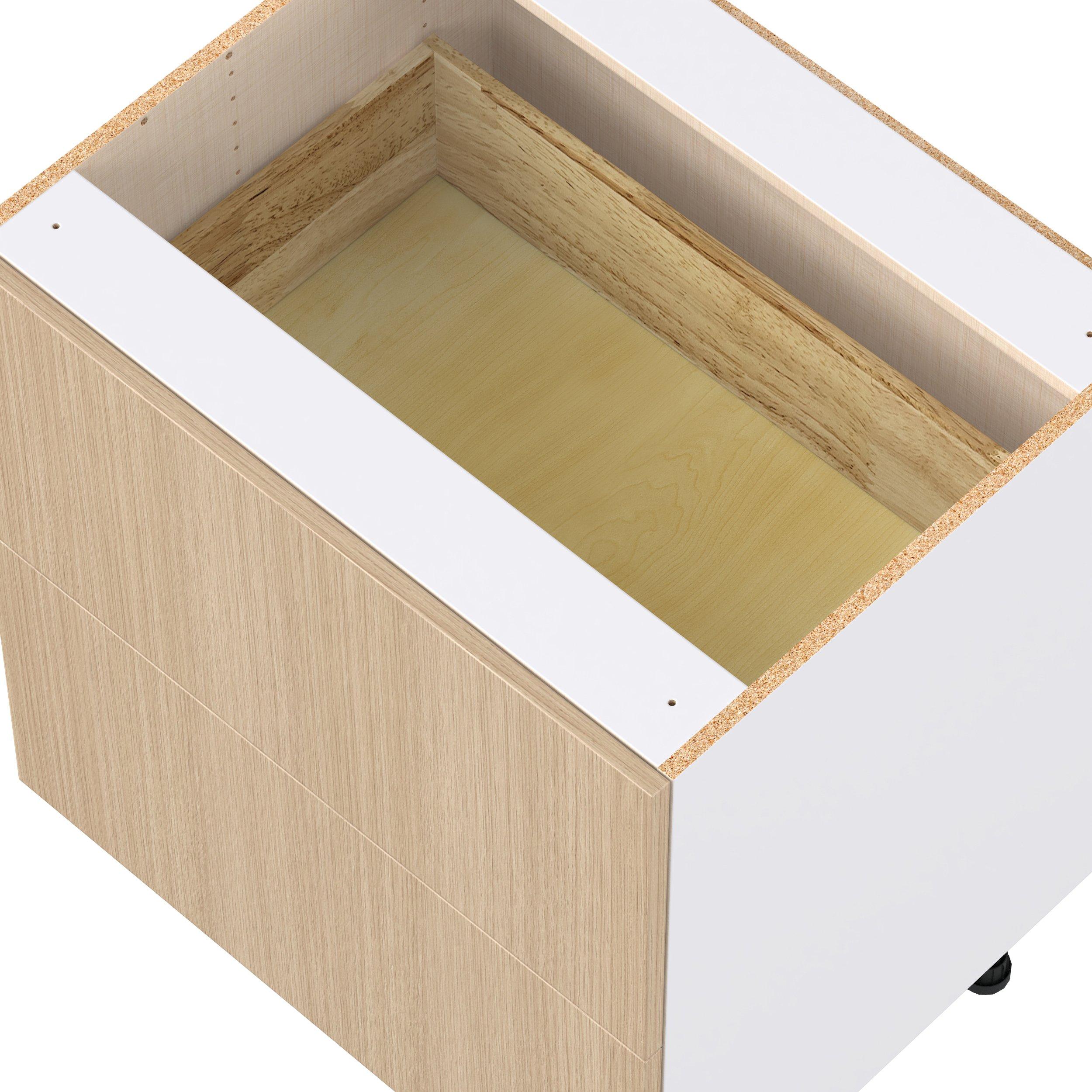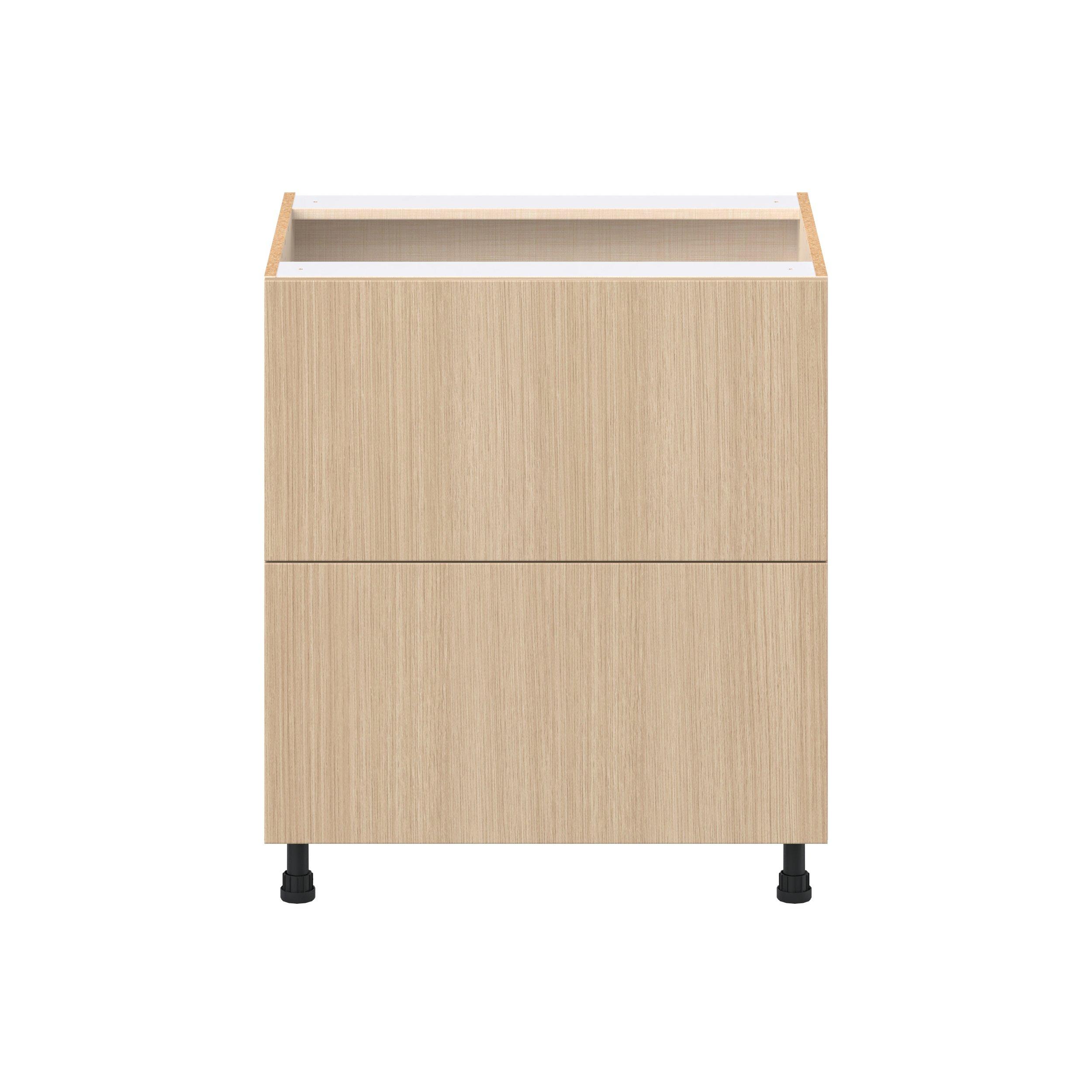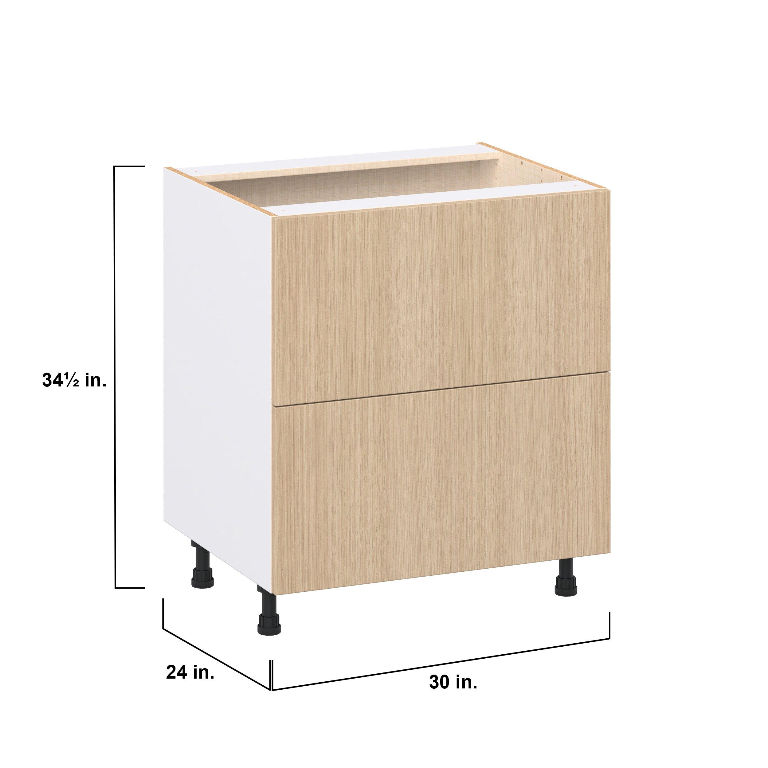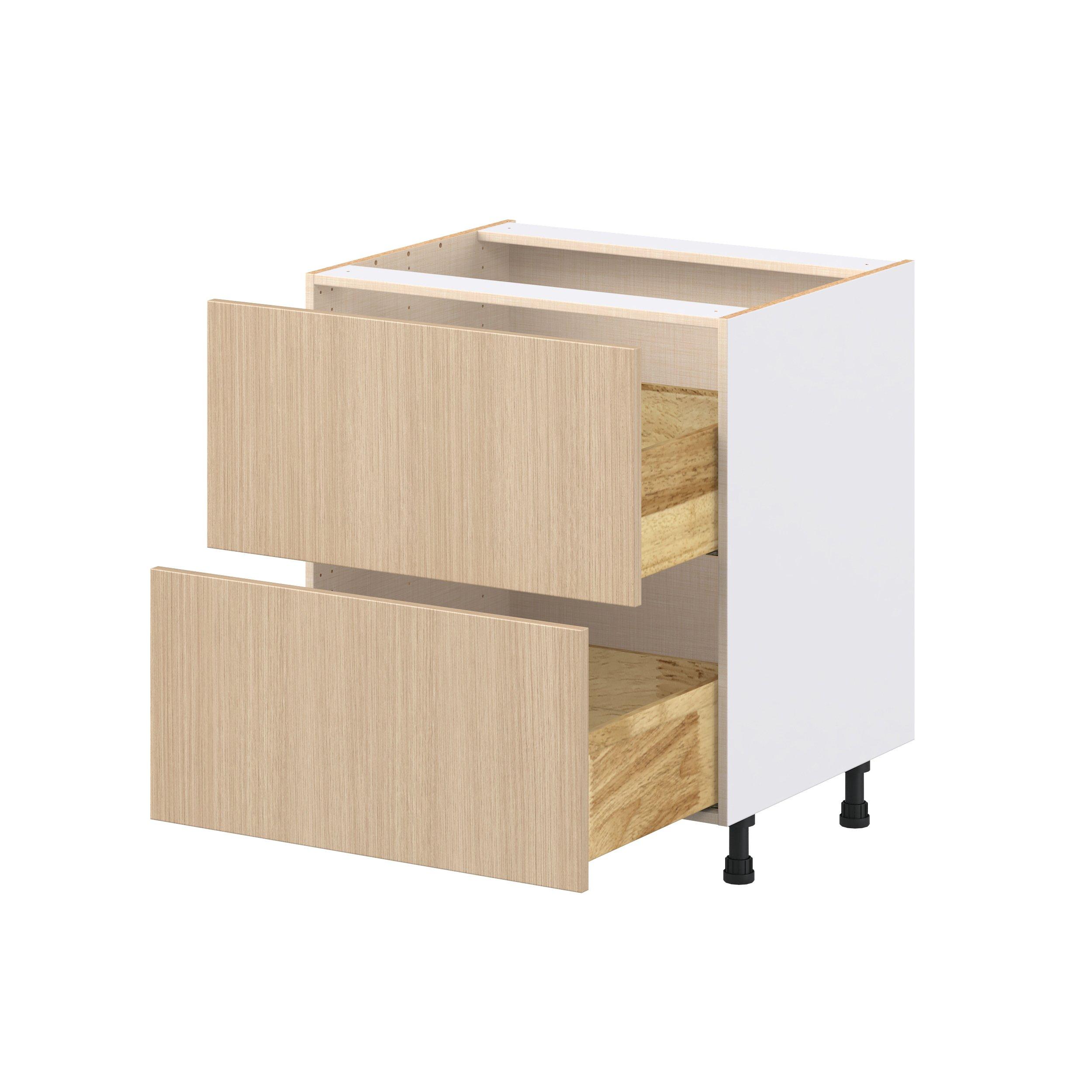 Elevate your project with the contemporary charm of Glenwood slab-style cabinets. Available in desert Mojavi oak and rich burnt walnut finishes, this collection captures the warmth and beauty of natural wood with the practicality of textured melamine. Crafted from one-piece MDF Studio Design Collection Glenwood 30 in. Mojavi Oak Drawer Base Cabinet is designed to resist hairline cracks while the easy-to-clean finish stands up to stains and moisture. Featuring 5-piece doors and dovetail drawer joints, these cabinets offer durability and elegance. This collection combines style with everyday storage solutions.