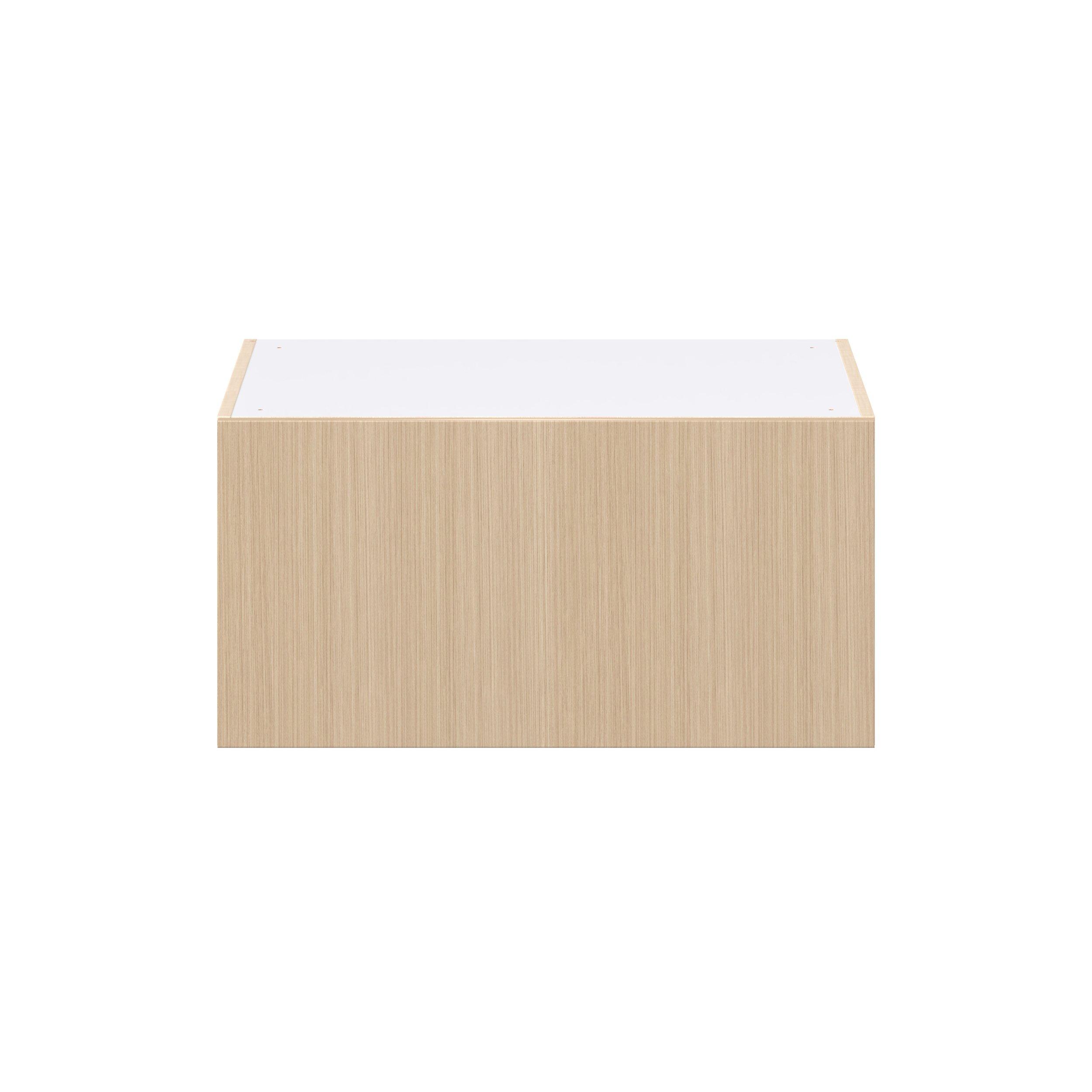 Elevate your project with the contemporary charm of Glenwood slab-style cabinets. Available in desert Mojavi oak and rich burnt walnut finishes, this collection captures the warmth and beauty of natural wood with the practicality of textured melamine. Crafted from one-piece MDF Studio Design Collection Glenwood 30 in. Mojavi Oak Lift Up Wall Cabinet is designed to resist hairline cracks while the easy-to-clean finish stands up to stains and moisture. Featuring 5-piece doors and dovetail drawer joints, these cabinets offer durability and elegance. This collection combines style with everyday storage solutions.