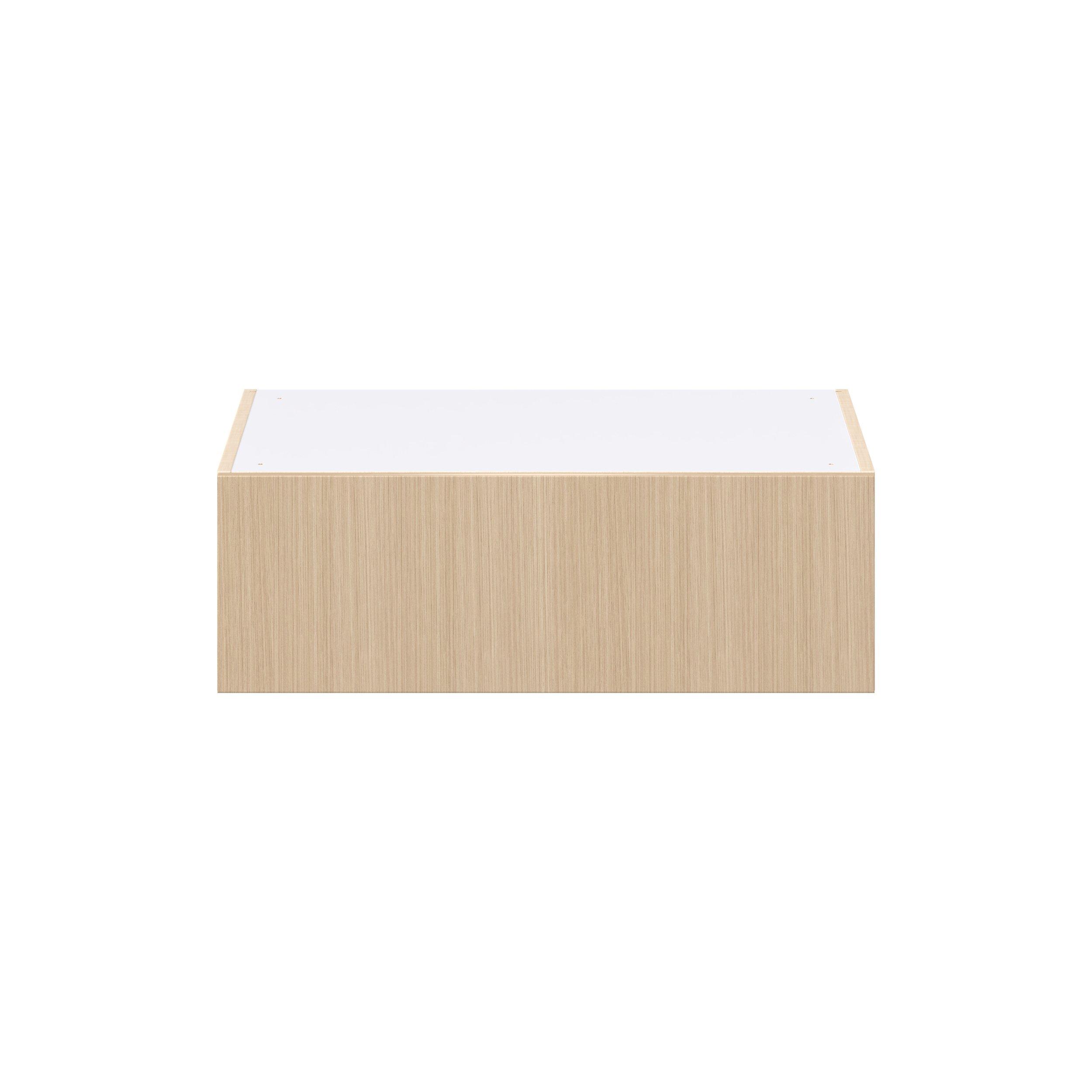 Elevate your project with the contemporary charm of Glenwood slab-style cabinets. Available in desert Mojavi oak and rich burnt walnut finishes, this collection captures the warmth and beauty of natural wood with the practicality of textured melamine. Crafted from one-piece MDF Studio Design Collection Glenwood 30 in. Mojavi Oak Lift Up Wall Cabinet is designed to resist hairline cracks while the easy-to-clean finish stands up to stains and moisture. Featuring 5-piece doors and dovetail drawer joints, these cabinets offer durability and elegance. This collection combines style with everyday storage solutions.