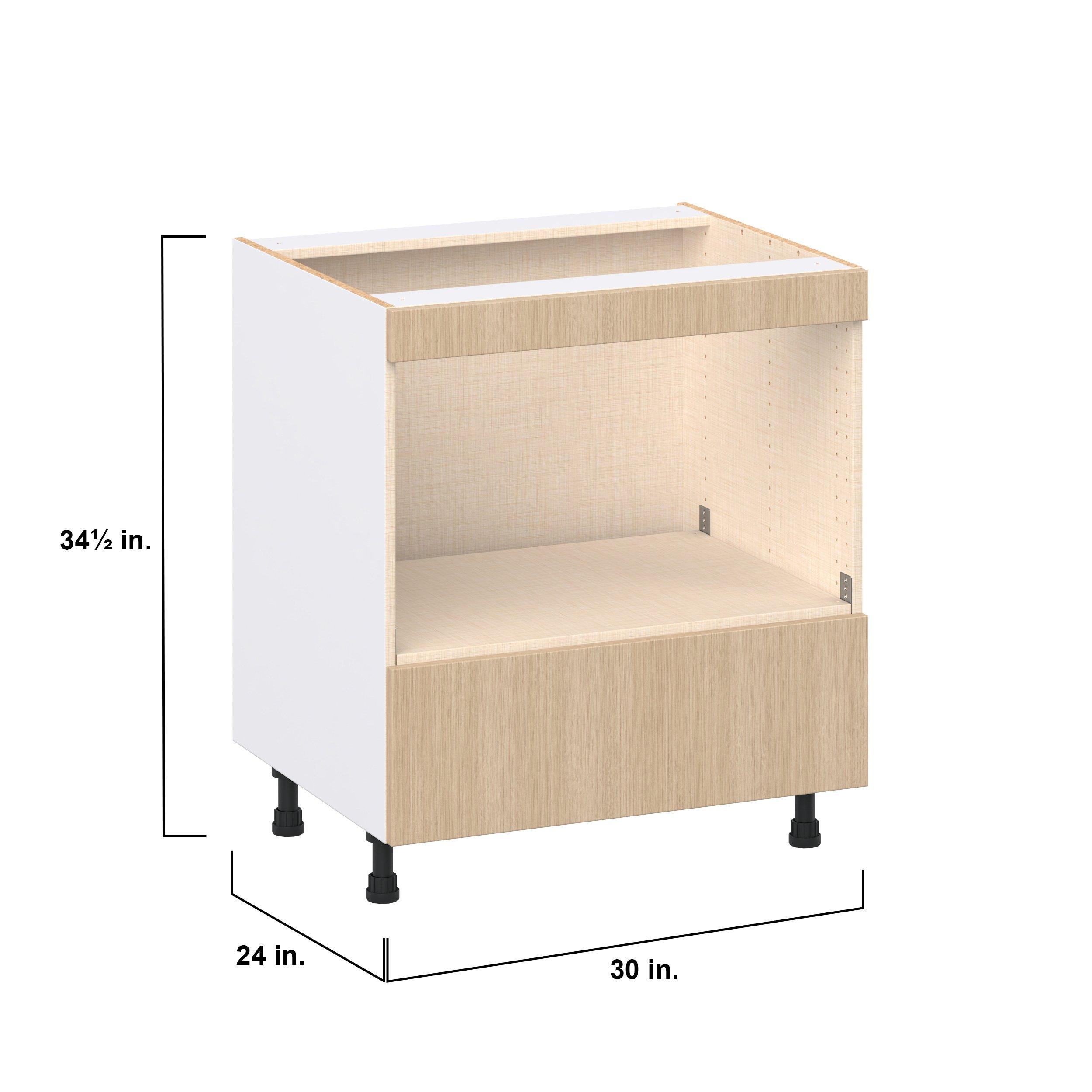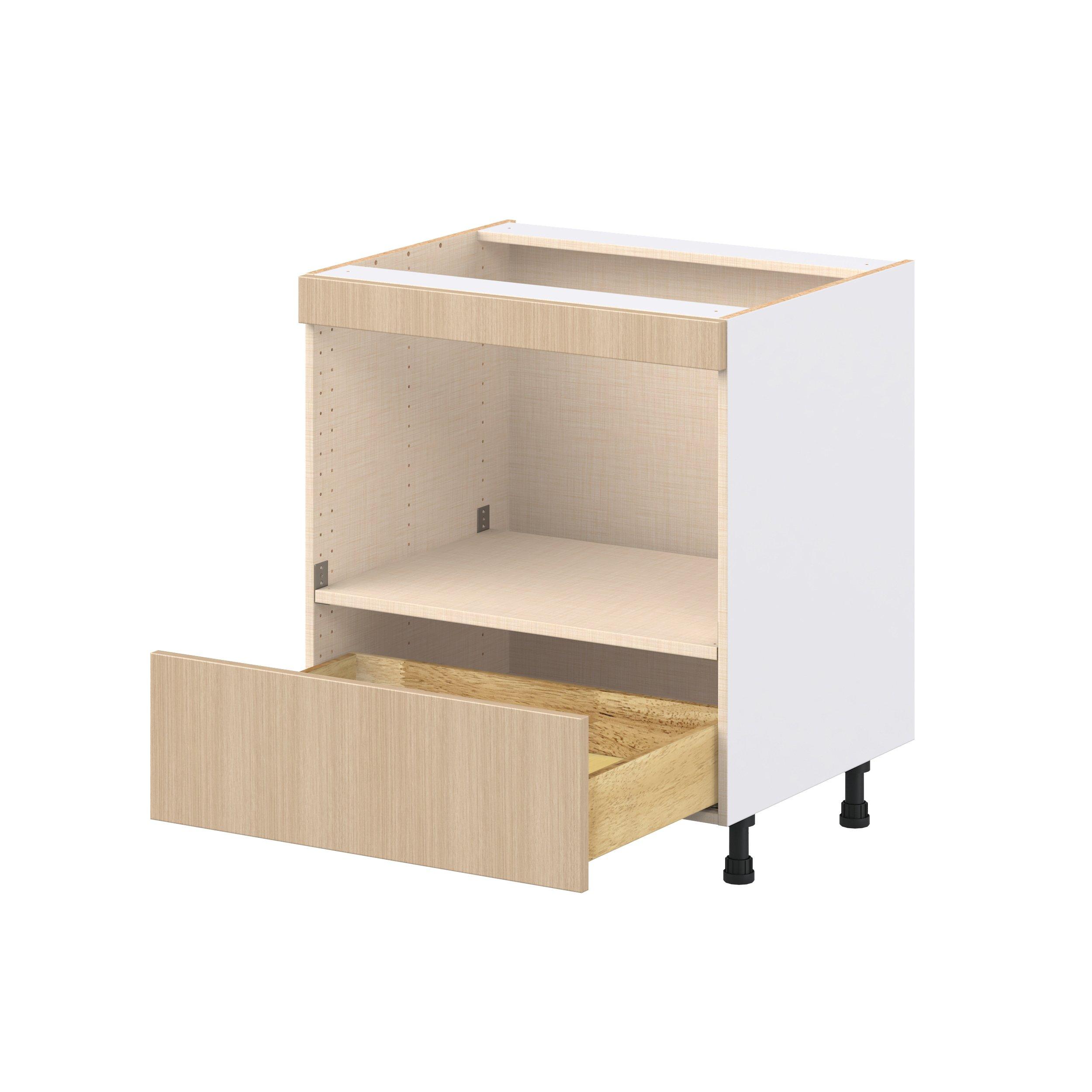 Elevate your project with the contemporary charm of Glenwood slab-style cabinets. Available in desert Mojavi oak and rich burnt walnut finishes, this collection captures the warmth and beauty of natural wood with the practicality of textured melamine. Crafted from one-piece MDF Studio Design Collection Glenwood 30 in. Mojavi Oak Microwave Base Cabinet is designed to resist hairline cracks while the easy-to-clean finish stands up to stains and moisture. Featuring 5-piece doors and dovetail drawer joints, these cabinets offer durability and elegance. This collection combines style with everyday storage solutions.