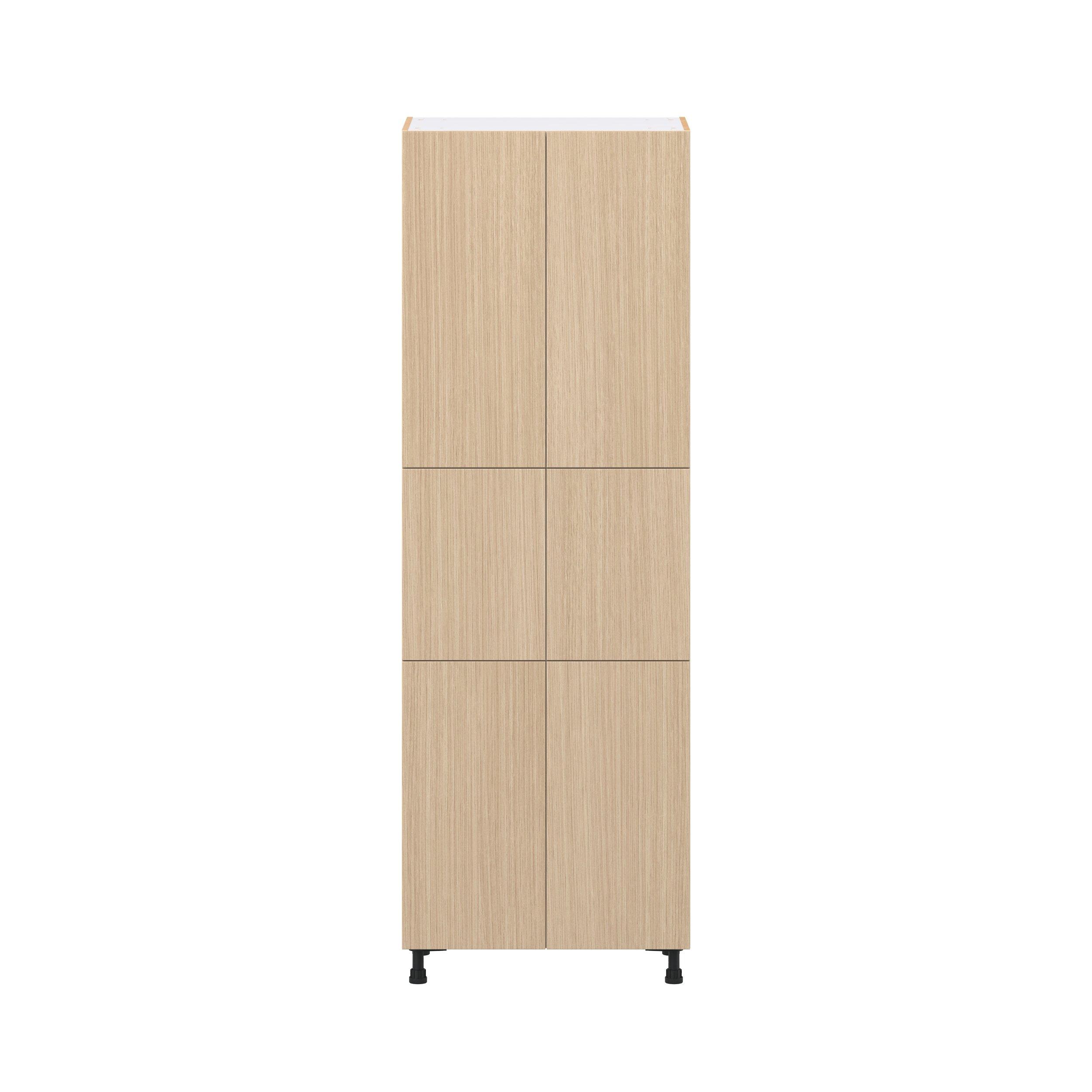 Elevate your project with the contemporary charm of Glenwood slab-style cabinets. Available in desert Mojavi oak and rich burnt walnut finishes, this collection captures the warmth and beauty of natural wood with the practicality of textured melamine. Crafted from one-piece MDF Studio Design Collection Glenwood 30 in. Mojavi Oak Pantry Cabinet with Inner Pull-Out Drawer is designed to resist hairline cracks while the easy-to-clean finish stands up to stains and moisture. Featuring 5-piece doors and dovetail drawer joints, these cabinets offer durability and elegance. This collection combines style with everyday storage solutions.