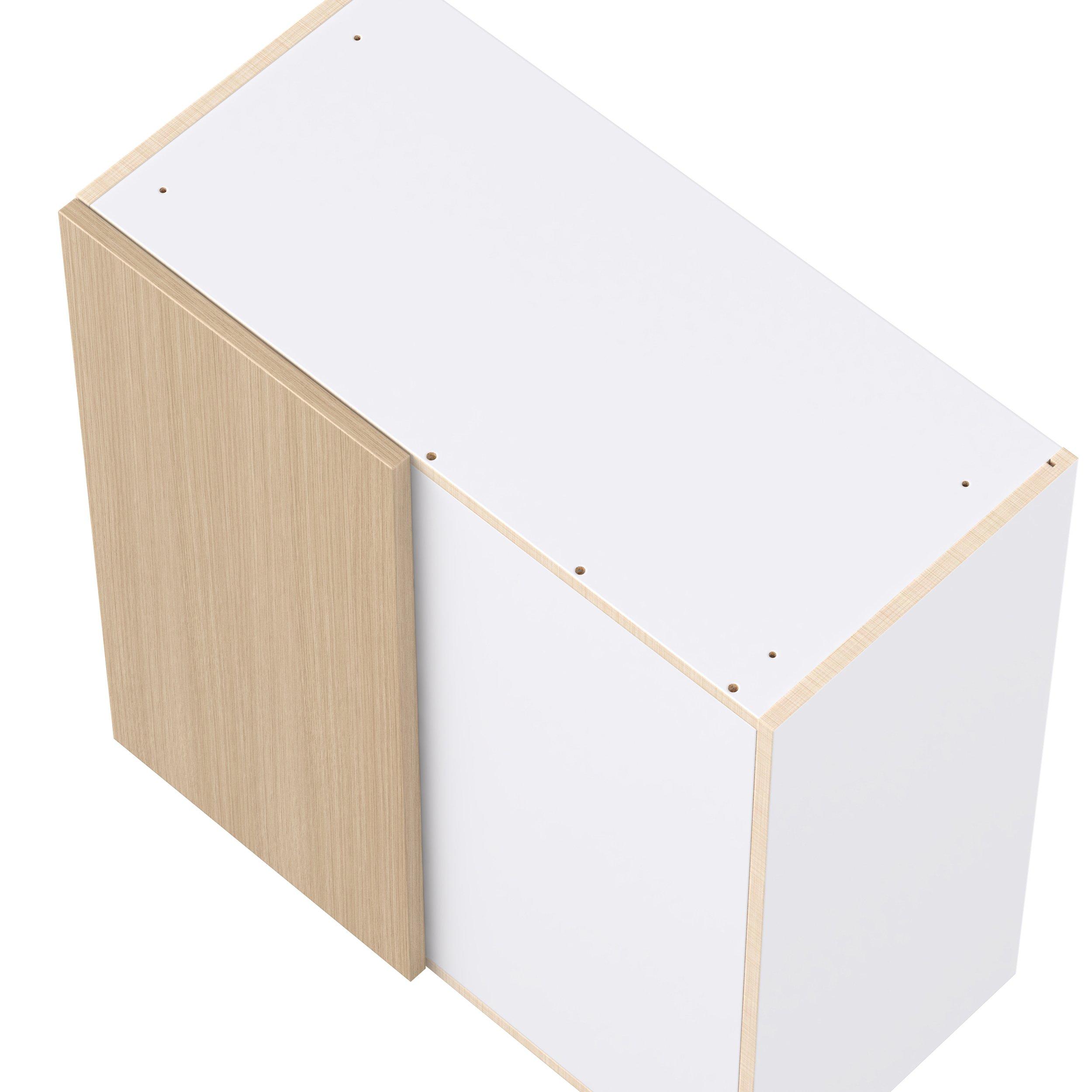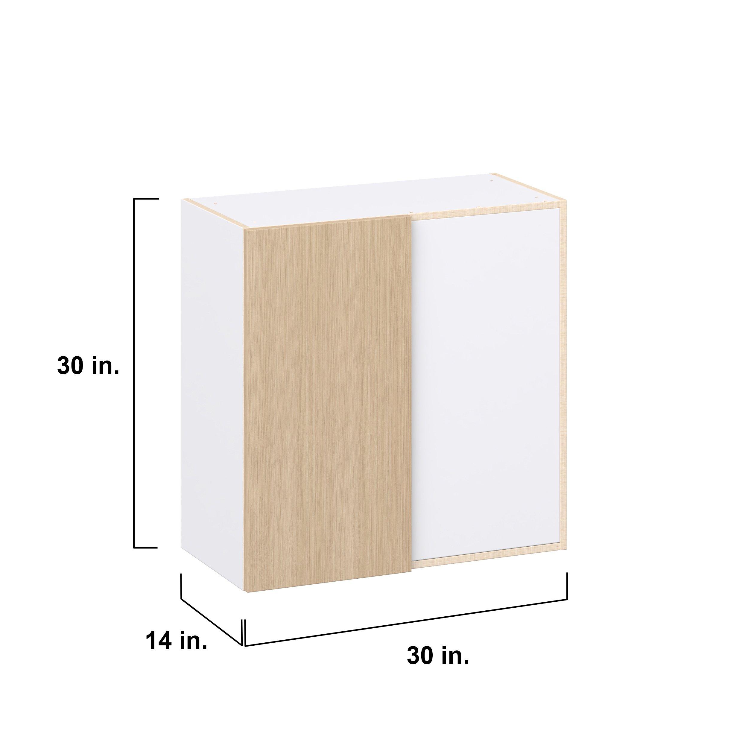 Elevate your project with the contemporary charm of Glenwood slab-style cabinets. Available in desert Mojavi oak and rich burnt walnut finishes, this collection captures the warmth and beauty of natural wood with the practicality of textured melamine. Crafted from one-piece MDF Studio Design Collection Glenwood 30 in. Mojavi Oak Right Blind Corner Wall Cabinet is designed to resist hairline cracks while the easy-to-clean finish stands up to stains and moisture. Featuring 5-piece doors and dovetail drawer joints, these cabinets offer durability and elegance. This collection combines style with everyday storage solutions.