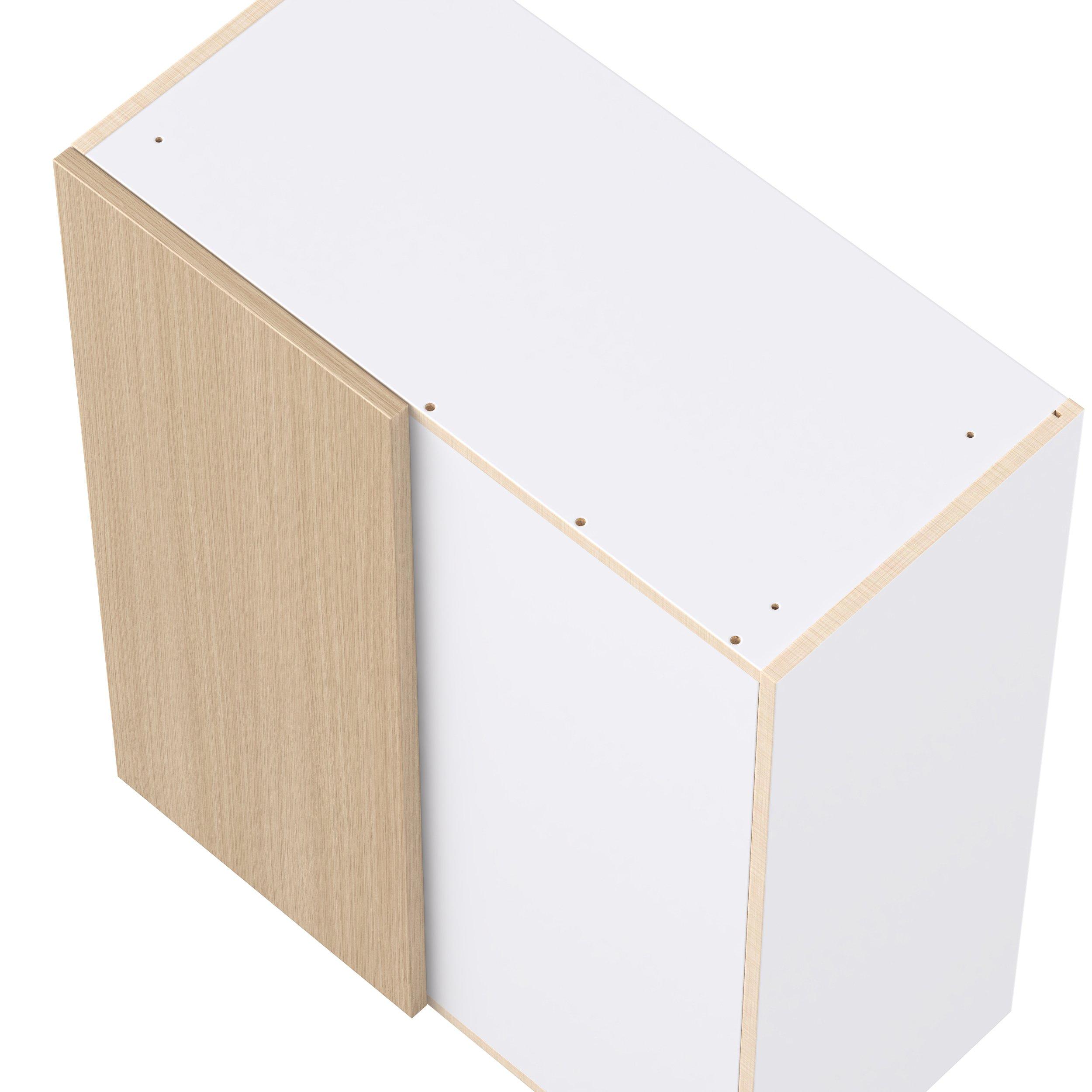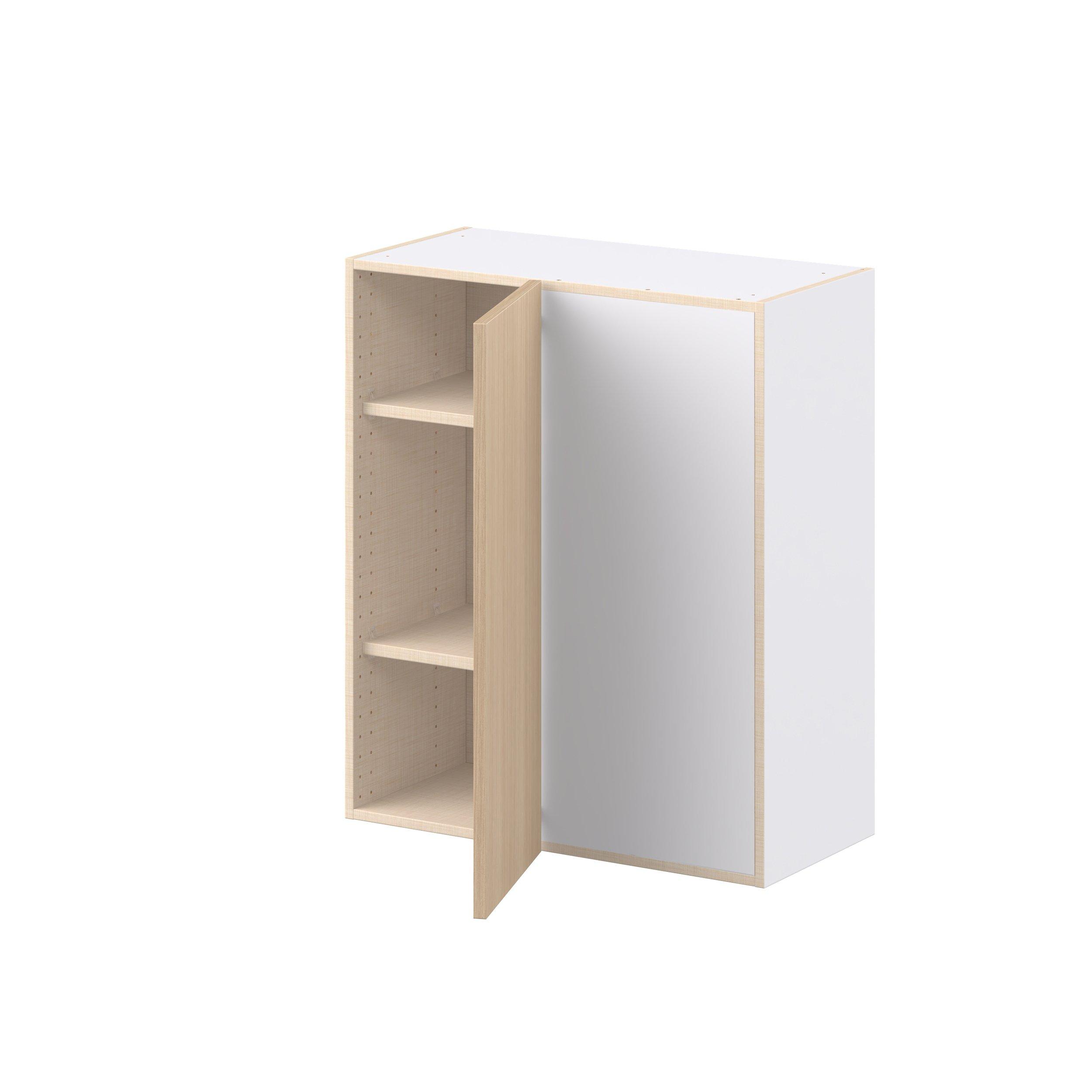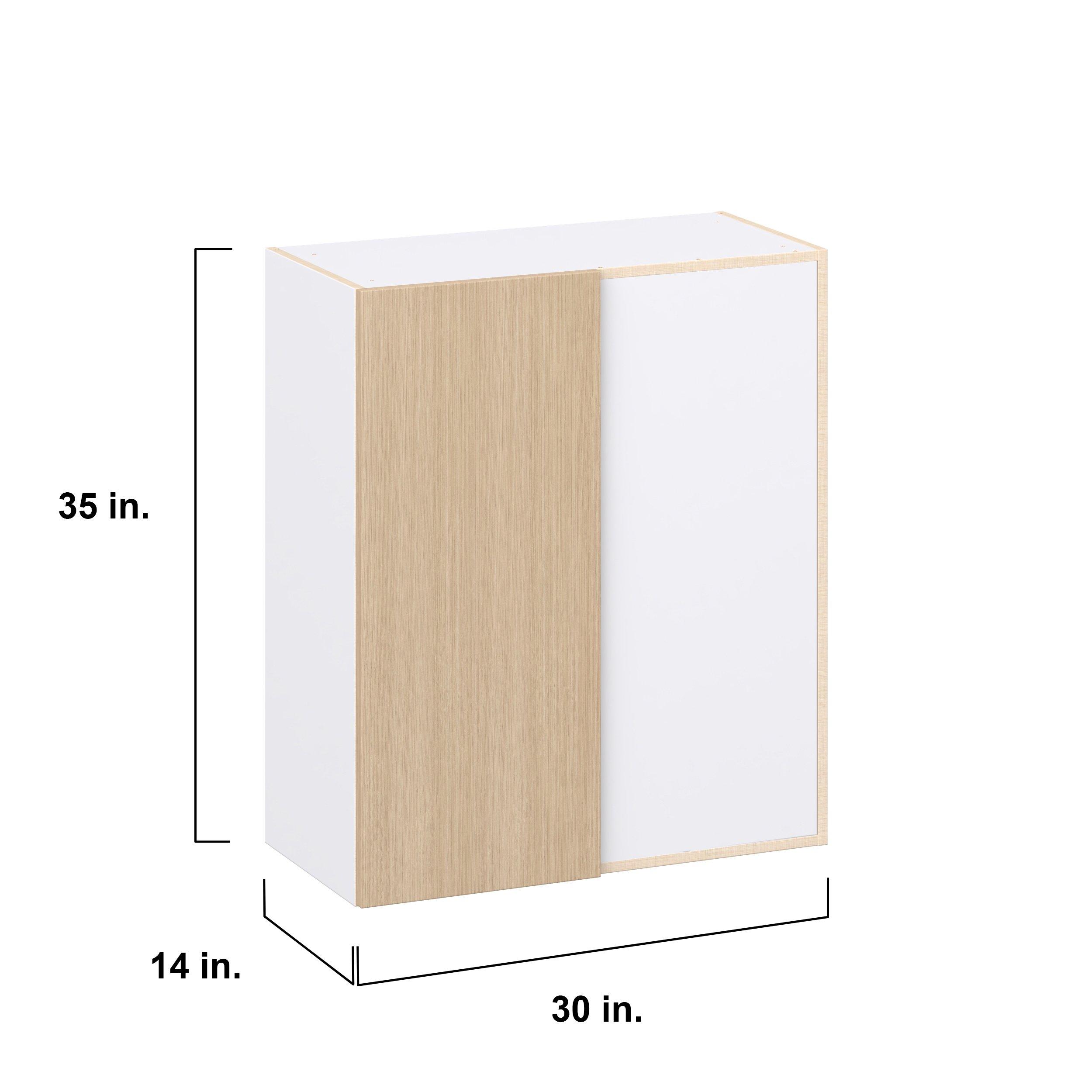 Elevate your project with the contemporary charm of Glenwood slab-style cabinets. Available in desert Mojavi oak and rich burnt walnut finishes, this collection captures the warmth and beauty of natural wood with the practicality of textured melamine. Crafted from one-piece MDF Studio Design Collection Glenwood 30 in. Mojavi Oak Right Blind Corner Wall Cabinet is designed to resist hairline cracks while the easy-to-clean finish stands up to stains and moisture. Featuring 5-piece doors and dovetail drawer joints, these cabinets offer durability and elegance. This collection combines style with everyday storage solutions.