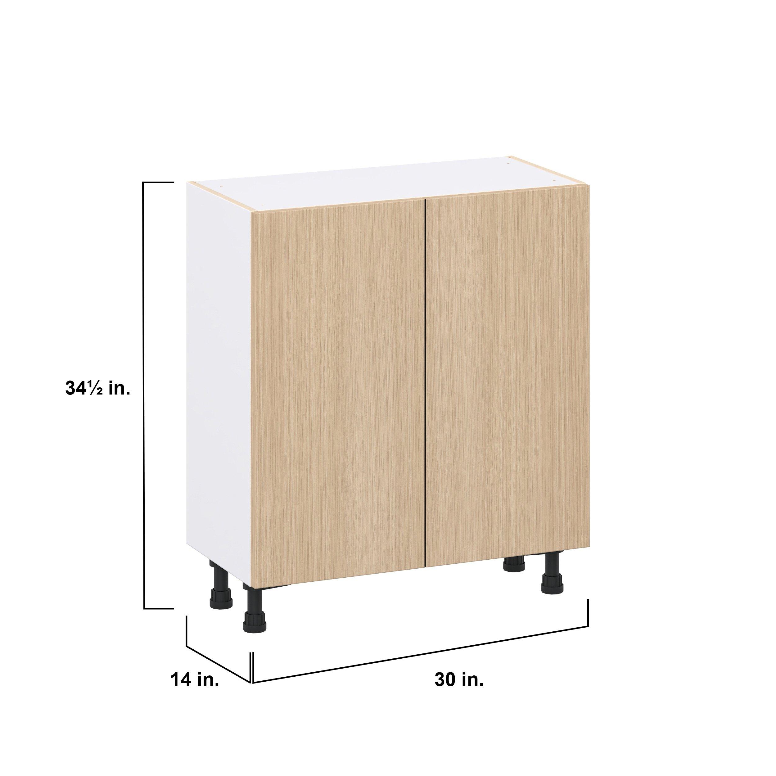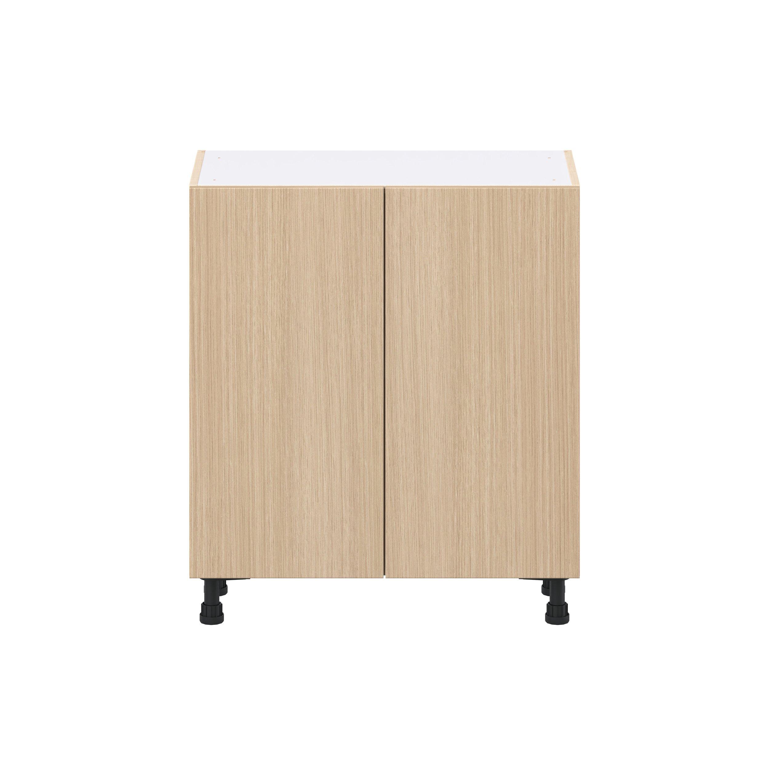 Elevate your project with the contemporary charm of Glenwood slab-style cabinets. Available in desert Mojavi oak and rich burnt walnut finishes, this collection captures the warmth and beauty of natural wood with the practicality of textured melamine. Crafted from one-piece MDF Studio Design Collection Glenwood 30 in. Mojavi Oak Shallow Base Cabinet is designed to resist hairline cracks while the easy-to-clean finish stands up to stains and moisture. Featuring 5-piece doors and dovetail drawer joints, these cabinets offer durability and elegance. This collection combines style with everyday storage solutions.