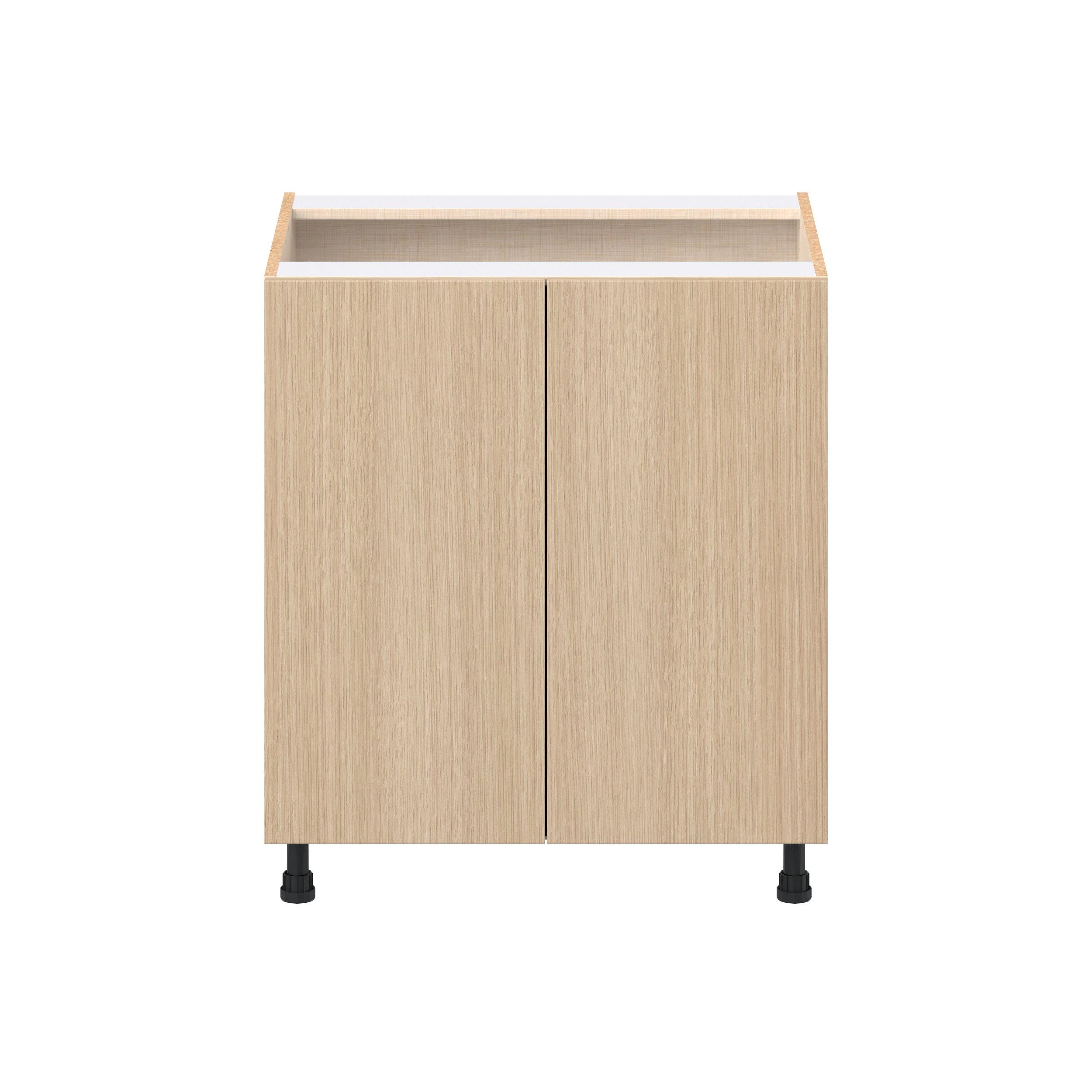 Elevate your project with the contemporary charm of Glenwood slab-style cabinets. Available in desert Mojavi oak and rich burnt walnut finishes, this collection captures the warmth and beauty of natural wood with the practicality of textured melamine. Crafted from one-piece MDF Studio Design Collection Glenwood 30 in. Mojavi Oak Sink Base Cabinet is designed to resist hairline cracks while the easy-to-clean finish stands up to stains and moisture. Featuring 5-piece doors and dovetail drawer joints, these cabinets offer durability and elegance. This collection combines style with everyday storage solutions.