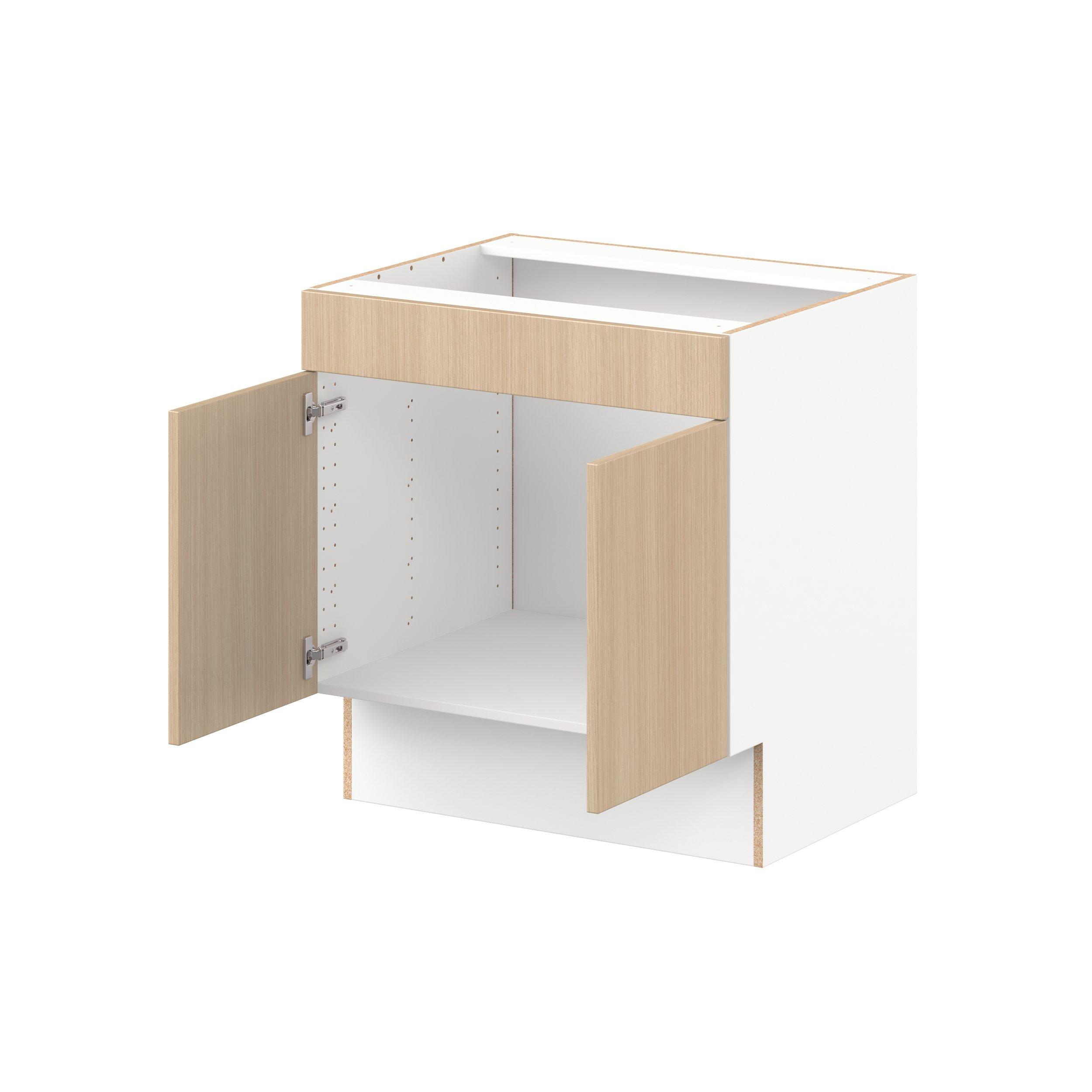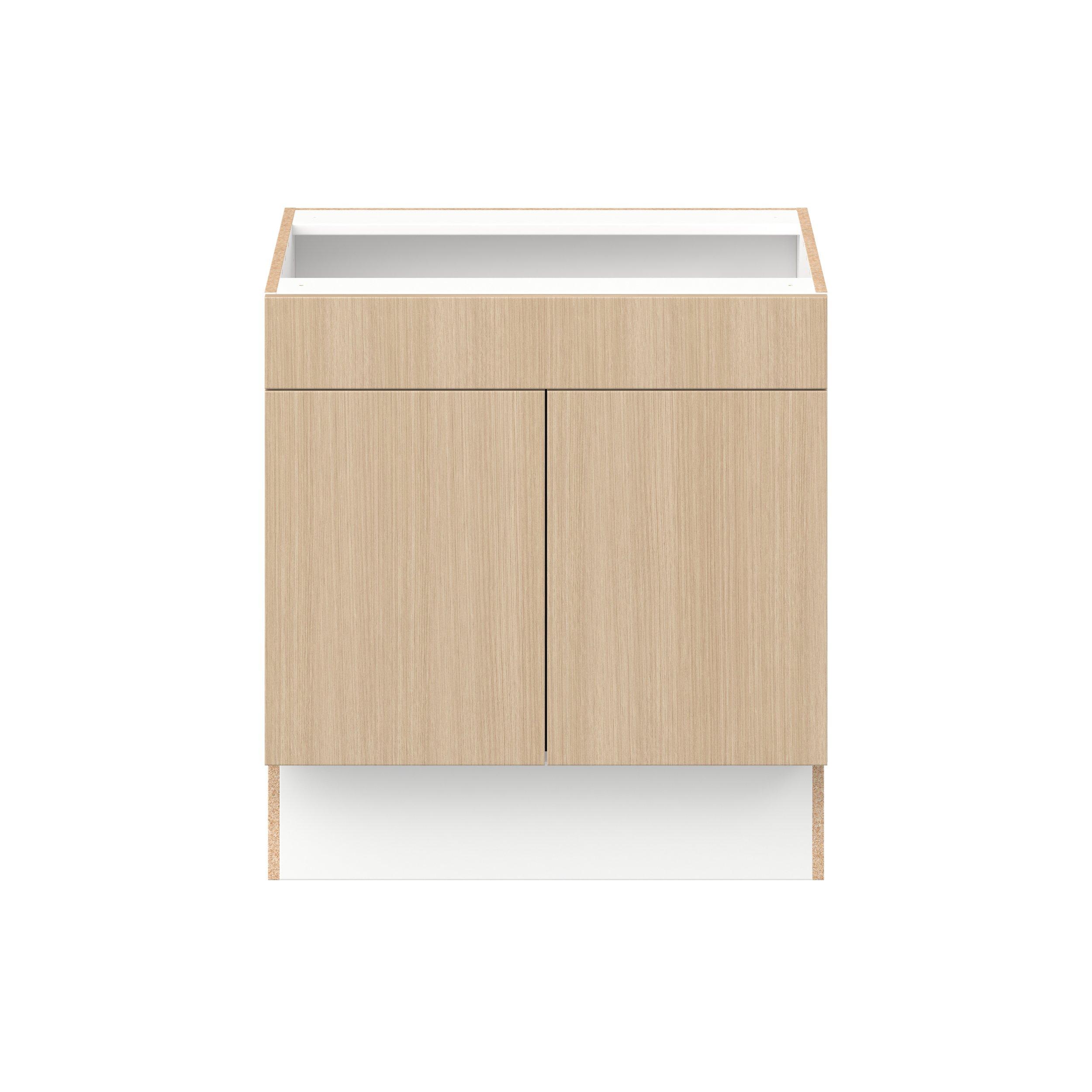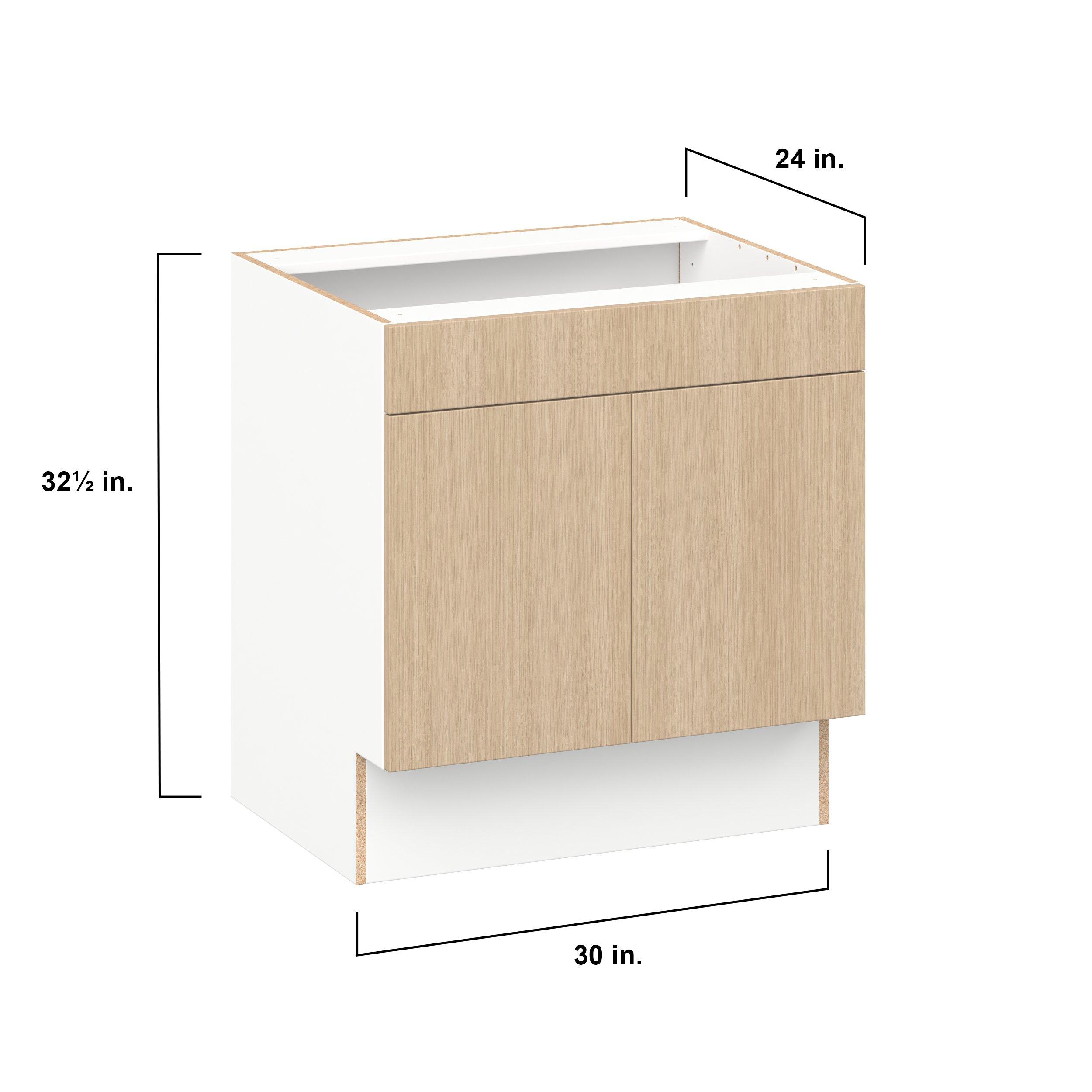 Elevate your project with the contemporary charm of Glenwood slab-style cabinets. Available in desert Mojavi oak and rich burnt walnut finishes, this collection captures the warmth and beauty of natural wood with the practicality of textured melamine. Crafted from one-piece MDF Studio Design Collection Glenwood 30 in. Mojavi Oak Sink Base Cabinet with False Front - ADA is designed to resist hairline cracks while the easy-to-clean finish stands up to stains and moisture. Featuring 5-piece doors and dovetail drawer joints, these cabinets offer durability and elegance. This collection combines style with everyday storage solutions.