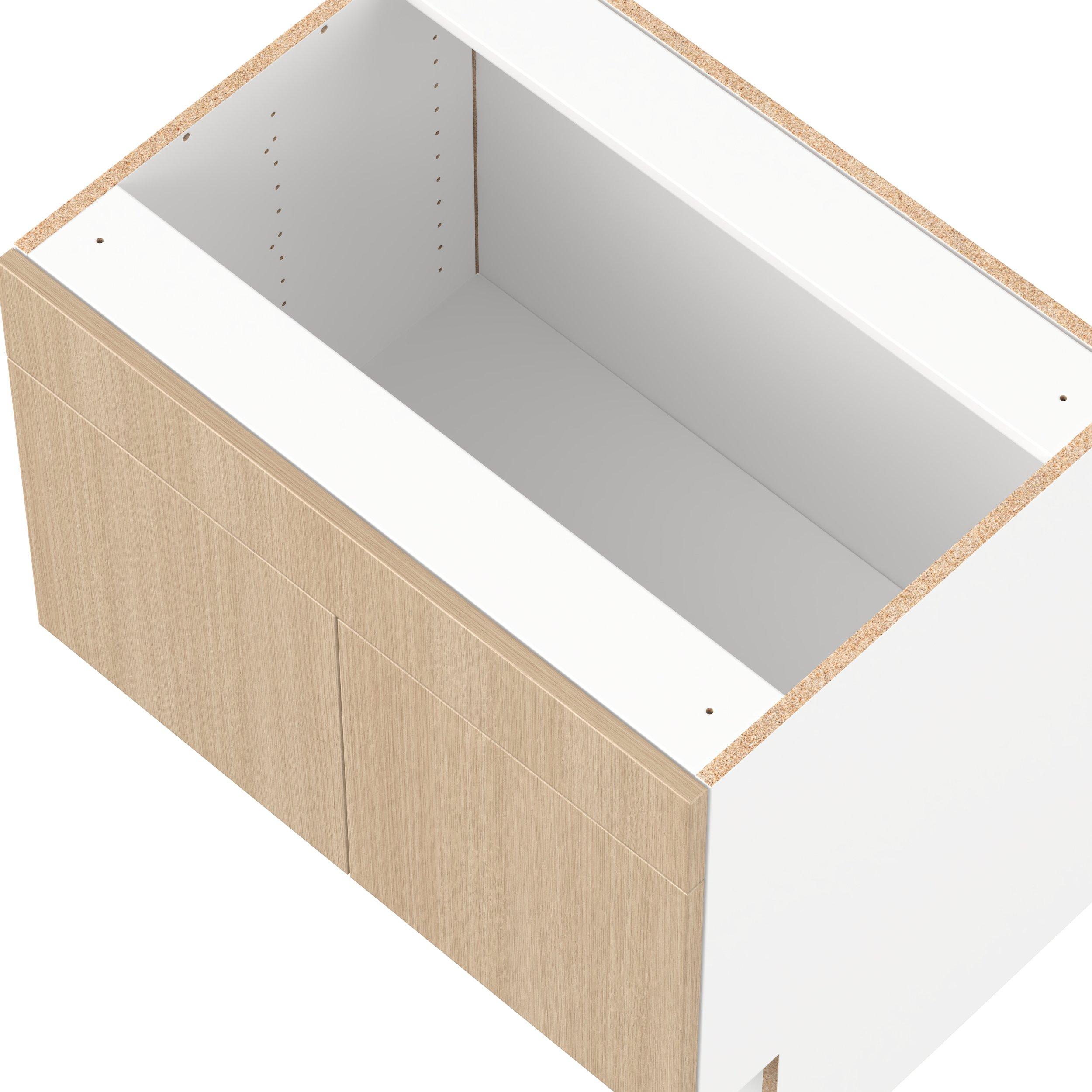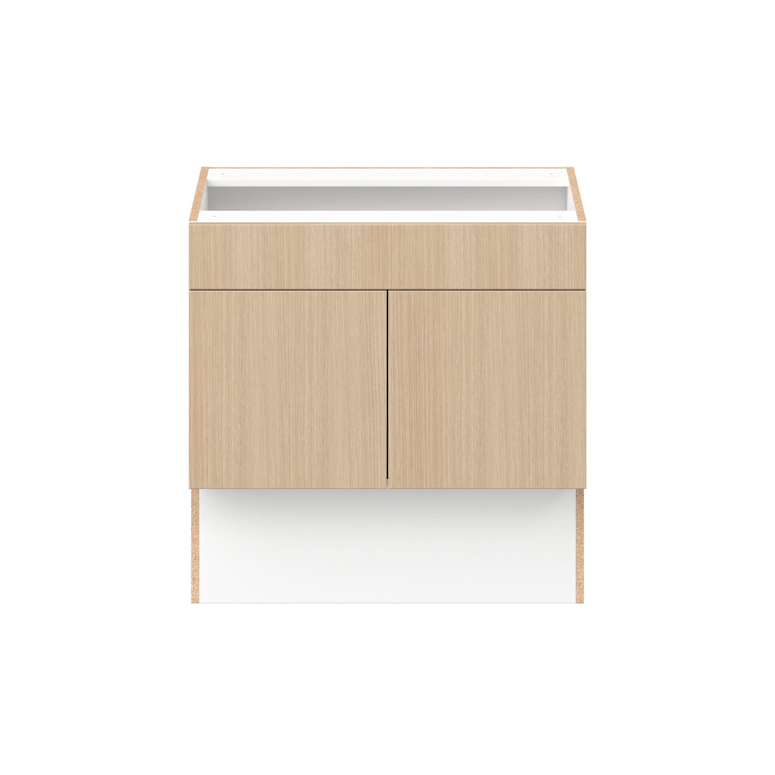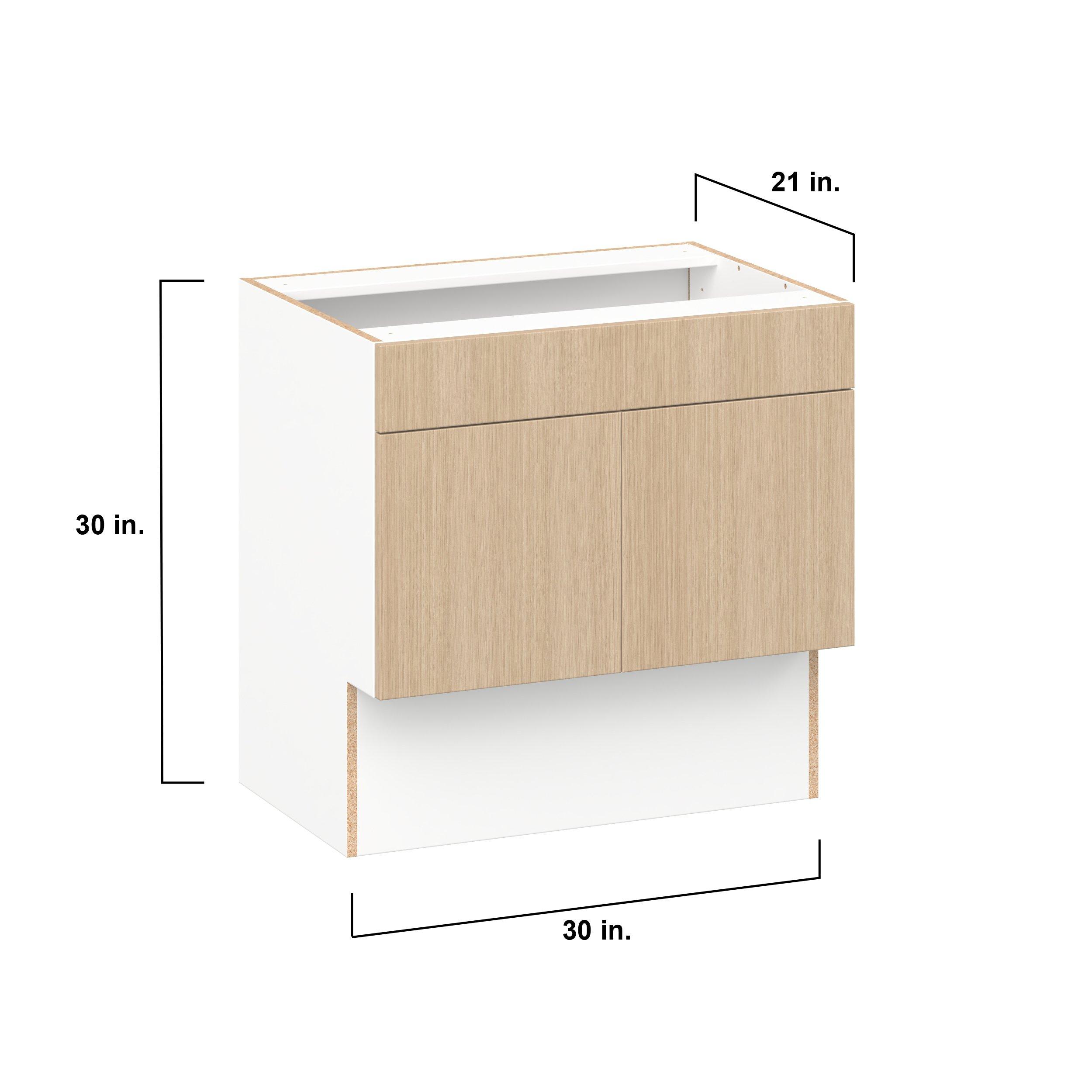 Elevate your project with the contemporary charm of Glenwood slab-style cabinets. Available in desert Mojavi oak and rich burnt walnut finishes, this collection captures the warmth and beauty of natural wood with the practicality of textured melamine. Crafted from one-piece MDF Studio Design Collection Glenwood 30 in. Mojavi Oak Vanity Sink Base Cabinet with Removable Front - ADA is designed to resist hairline cracks while the easy-to-clean finish stands up to stains and moisture. Featuring 5-piece doors and dovetail drawer joints, these cabinets offer durability and elegance. This collection combines style with everyday storage solutions.