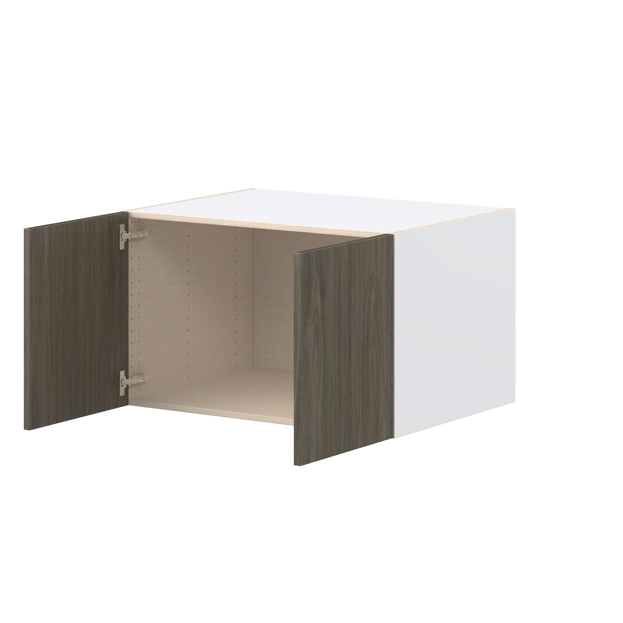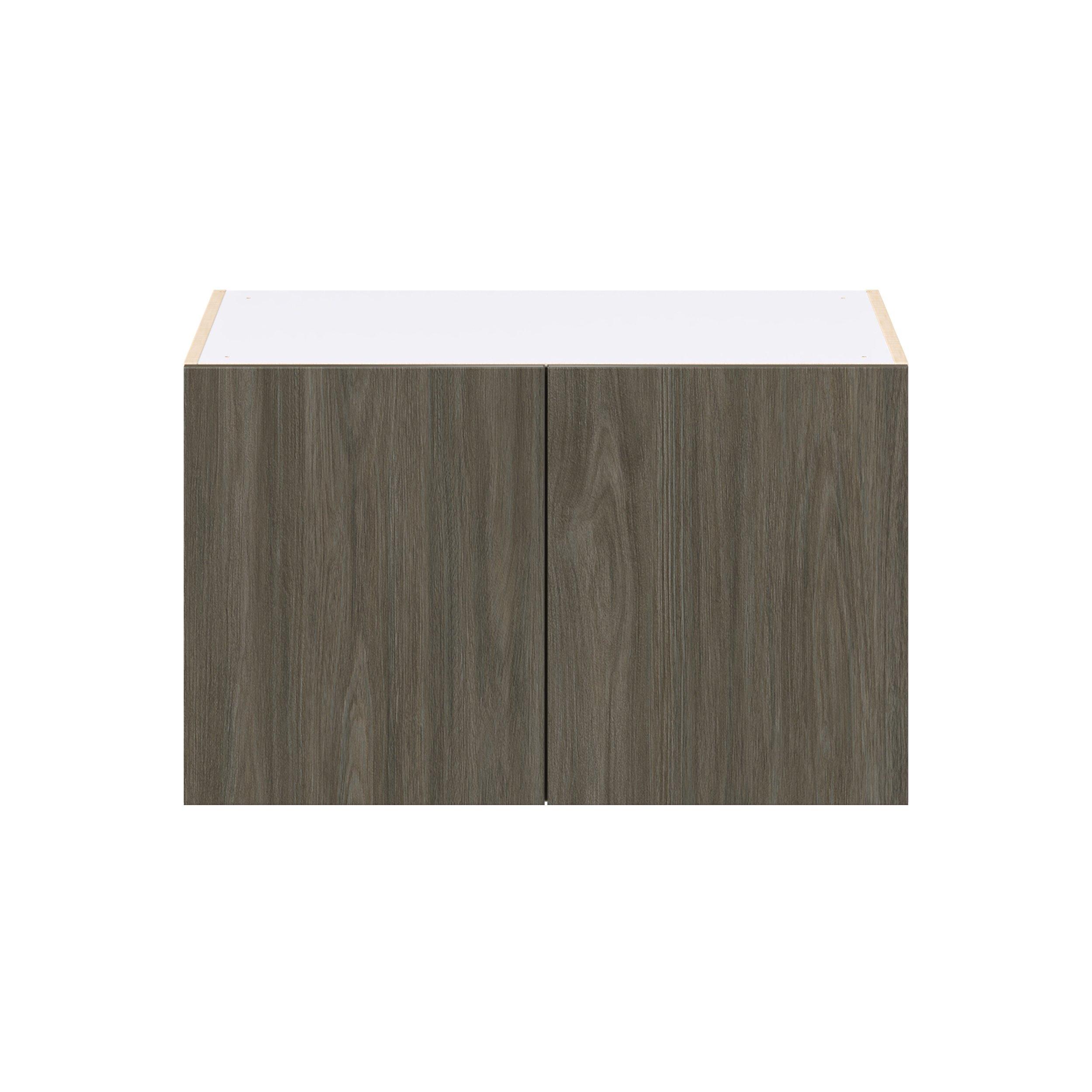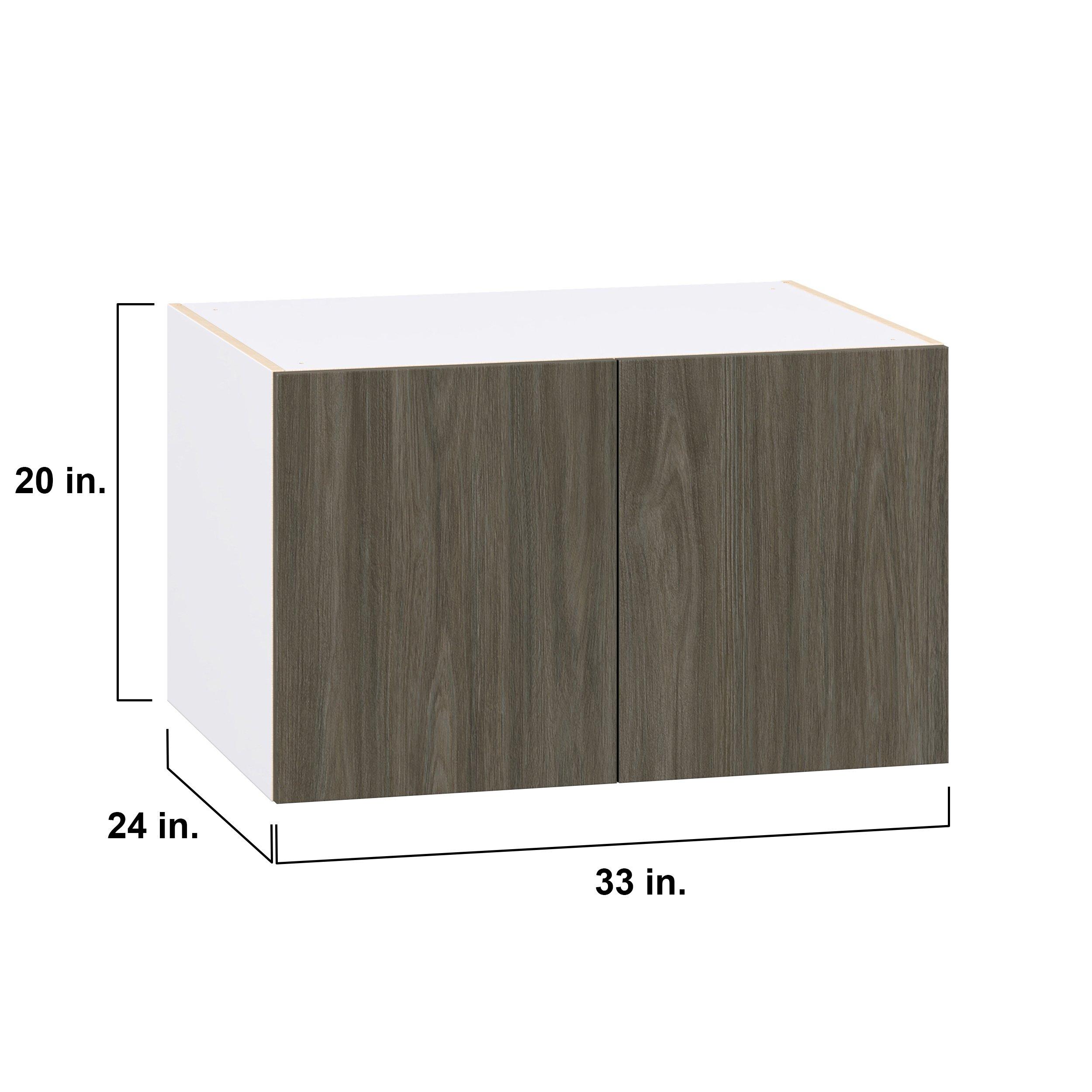 Elevate your project with the contemporary charm of Glenwood slab-style cabinets. Available in desert Mojavi oak and rich burnt walnut finishes, this collection captures the warmth and beauty of natural wood with the practicality of textured melamine. Crafted from one-piece MDF Studio Design Collection Glenwood 33 in. Burnt Walnut Bridge Wall Cabinet is designed to resist hairline cracks while the easy-to-clean finish stands up to stains and moisture. Featuring 5-piece doors and dovetail drawer joints, these cabinets offer durability and elegance. This collection combines style with everyday storage solutions.
