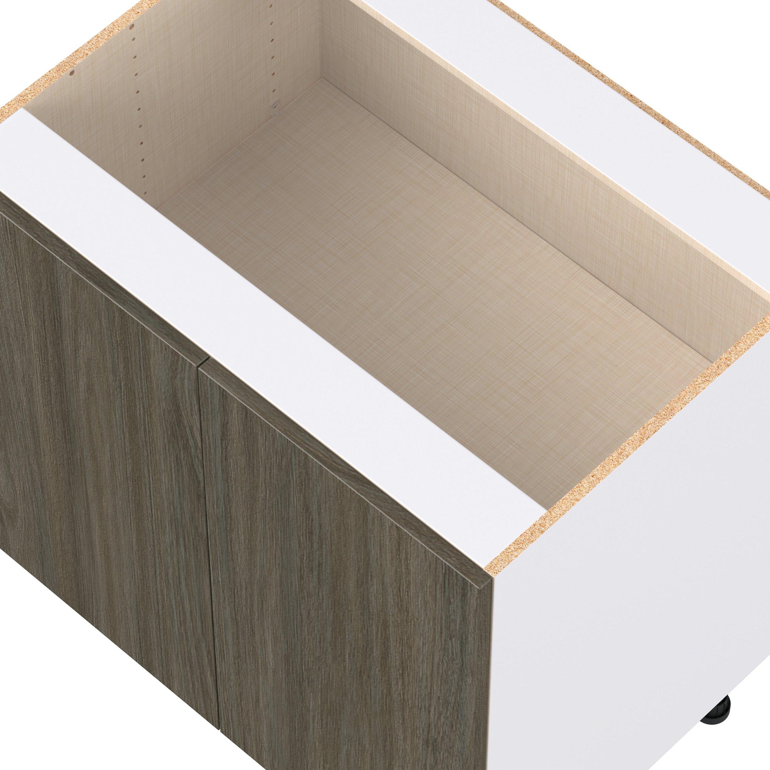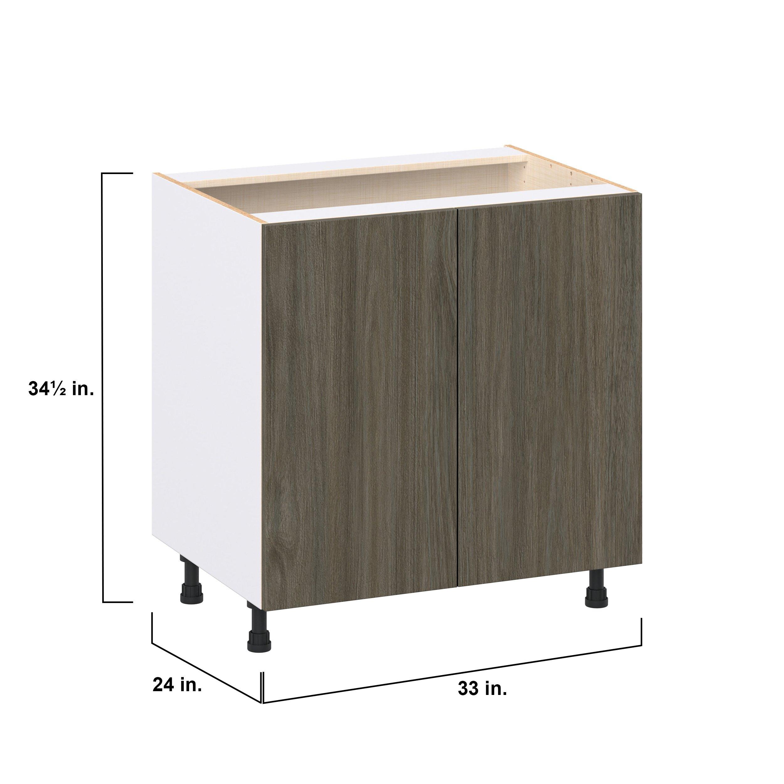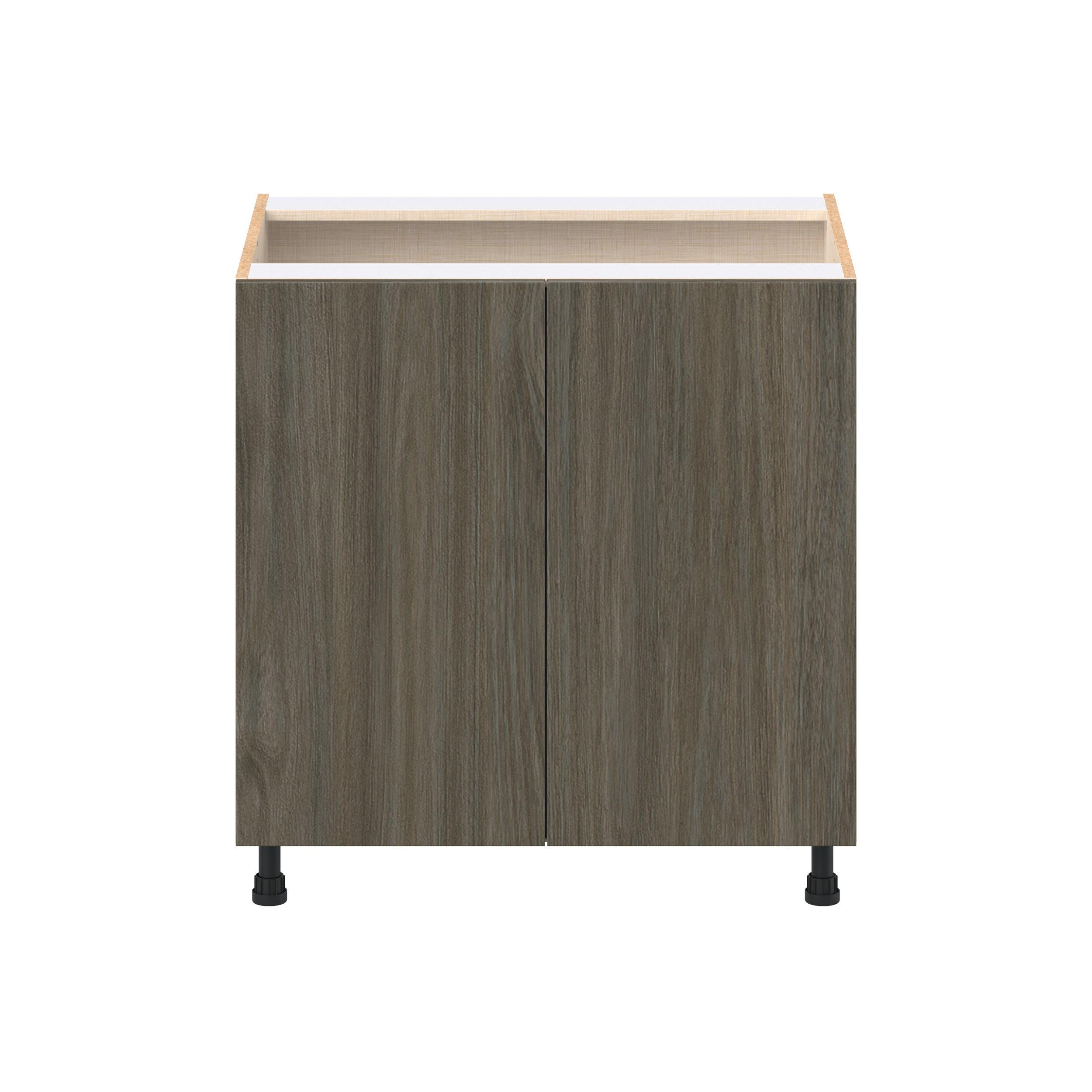 Elevate your project with the contemporary charm of Glenwood slab-style cabinets. Available in desert Mojavi oak and rich burnt walnut finishes, this collection captures the warmth and beauty of natural wood with the practicality of textured melamine. Crafted from one-piece MDF Studio Design Collection Glenwood 33 in. Burnt Walnut Door Base Cabinet is designed to resist hairline cracks while the easy-to-clean finish stands up to stains and moisture. Featuring 5-piece doors and dovetail drawer joints, these cabinets offer durability and elegance. This collection combines style with everyday storage solutions.