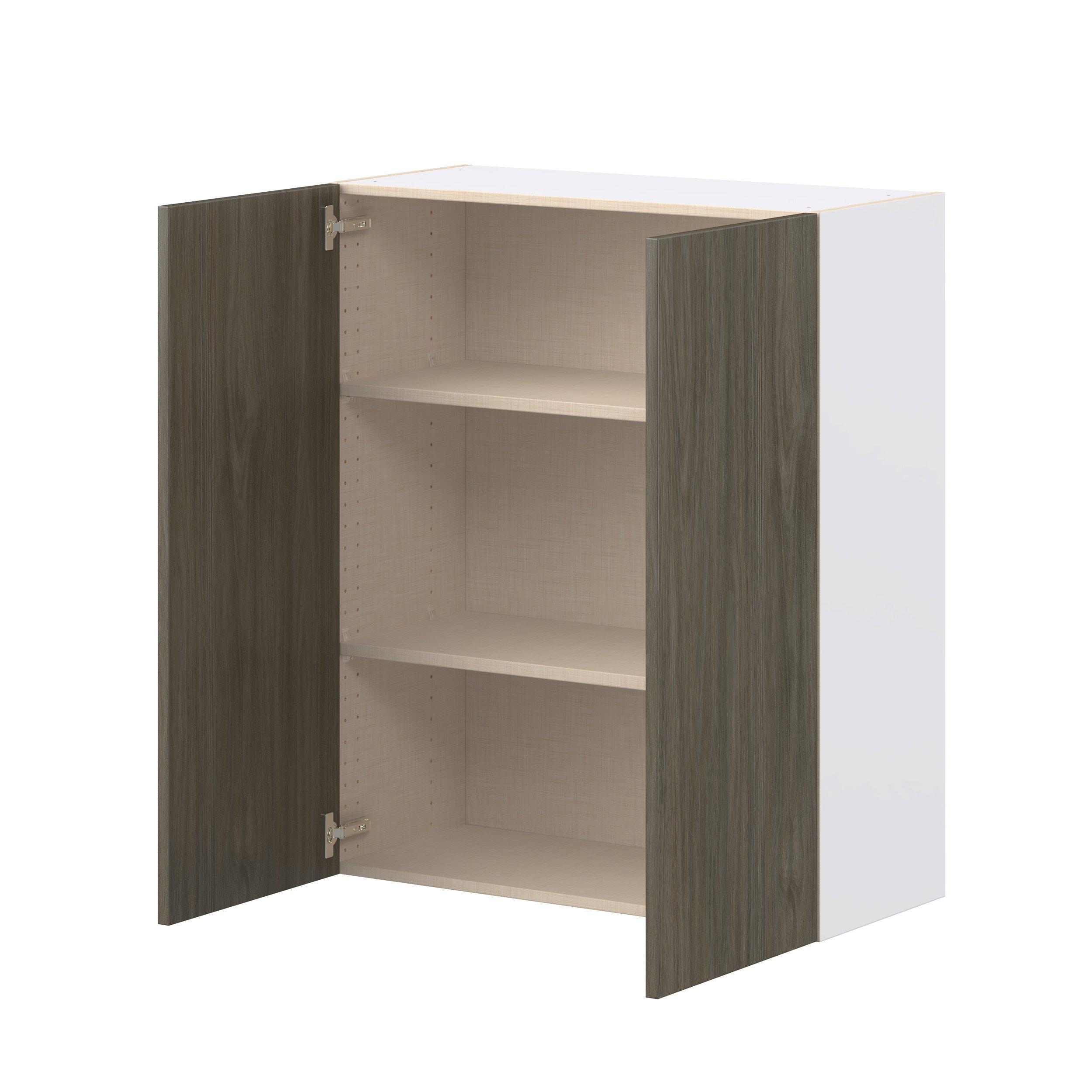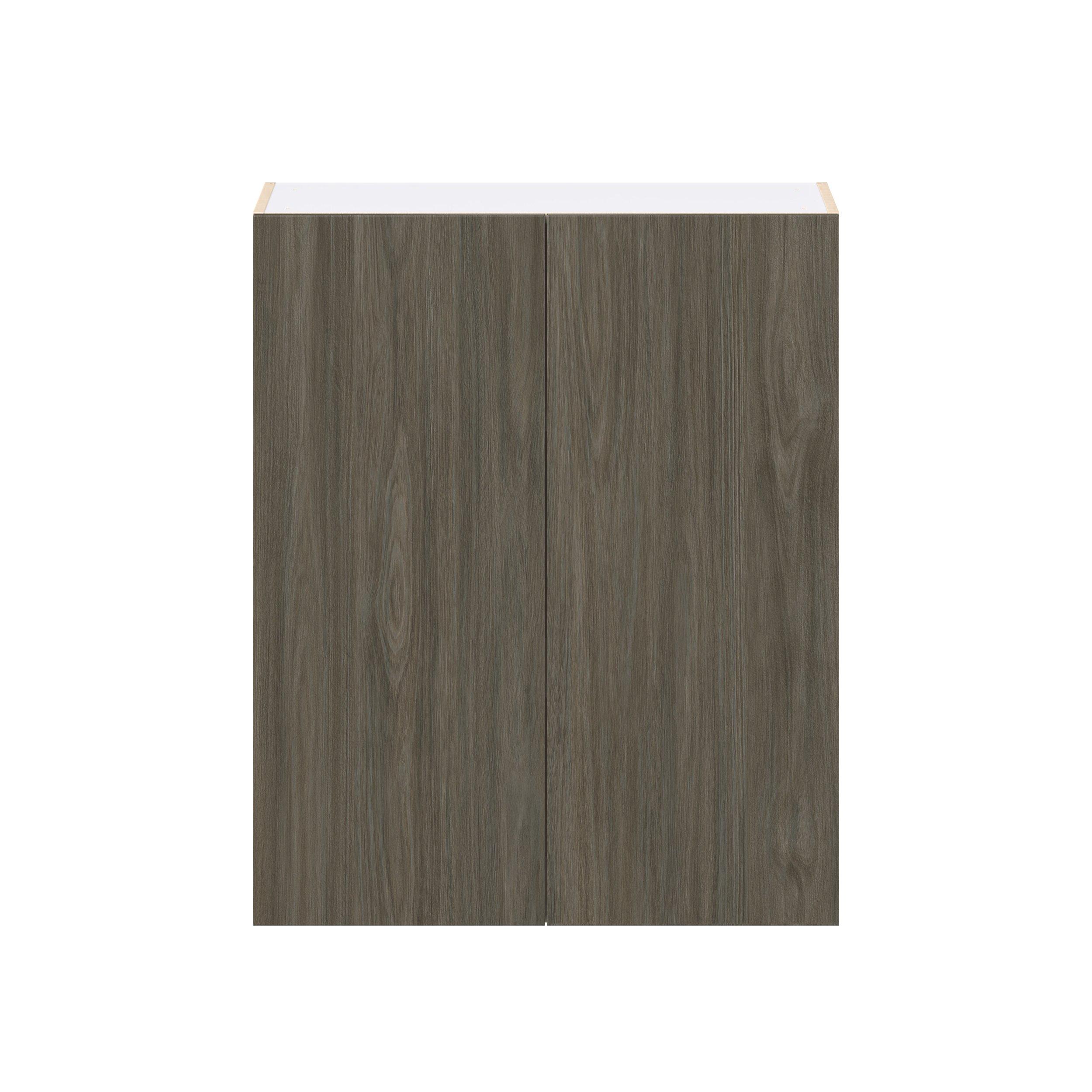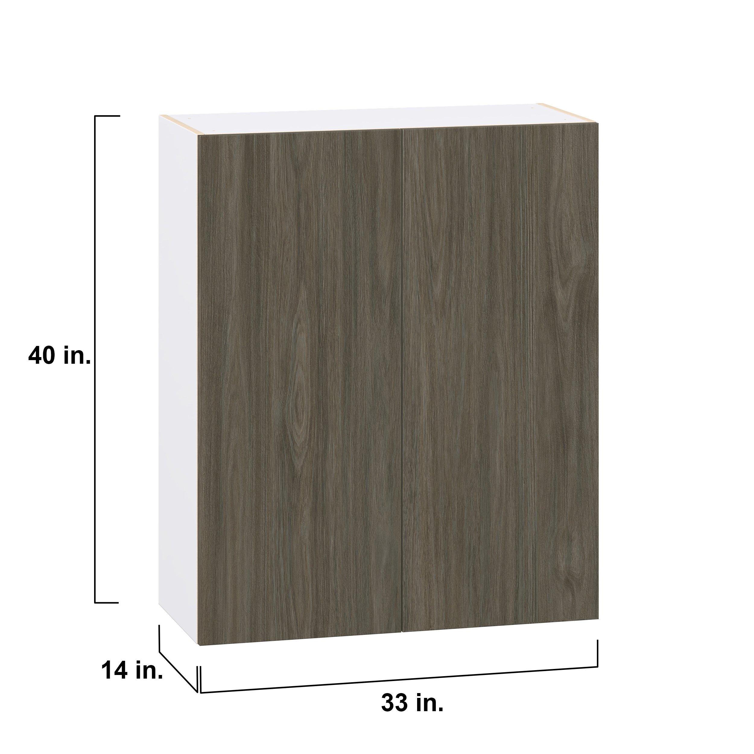 Elevate your project with the contemporary charm of Glenwood slab-style cabinets. Available in desert Mojavi oak and rich burnt walnut finishes, this collection captures the warmth and beauty of natural wood with the practicality of textured melamine. Crafted from one-piece MDF Studio Design Collection Glenwood 33 in. Burnt Walnut Door Wall Cabinet is designed to resist hairline cracks while the easy-to-clean finish stands up to stains and moisture. Featuring 5-piece doors and dovetail drawer joints, these cabinets offer durability and elegance. This collection combines style with everyday storage solutions.