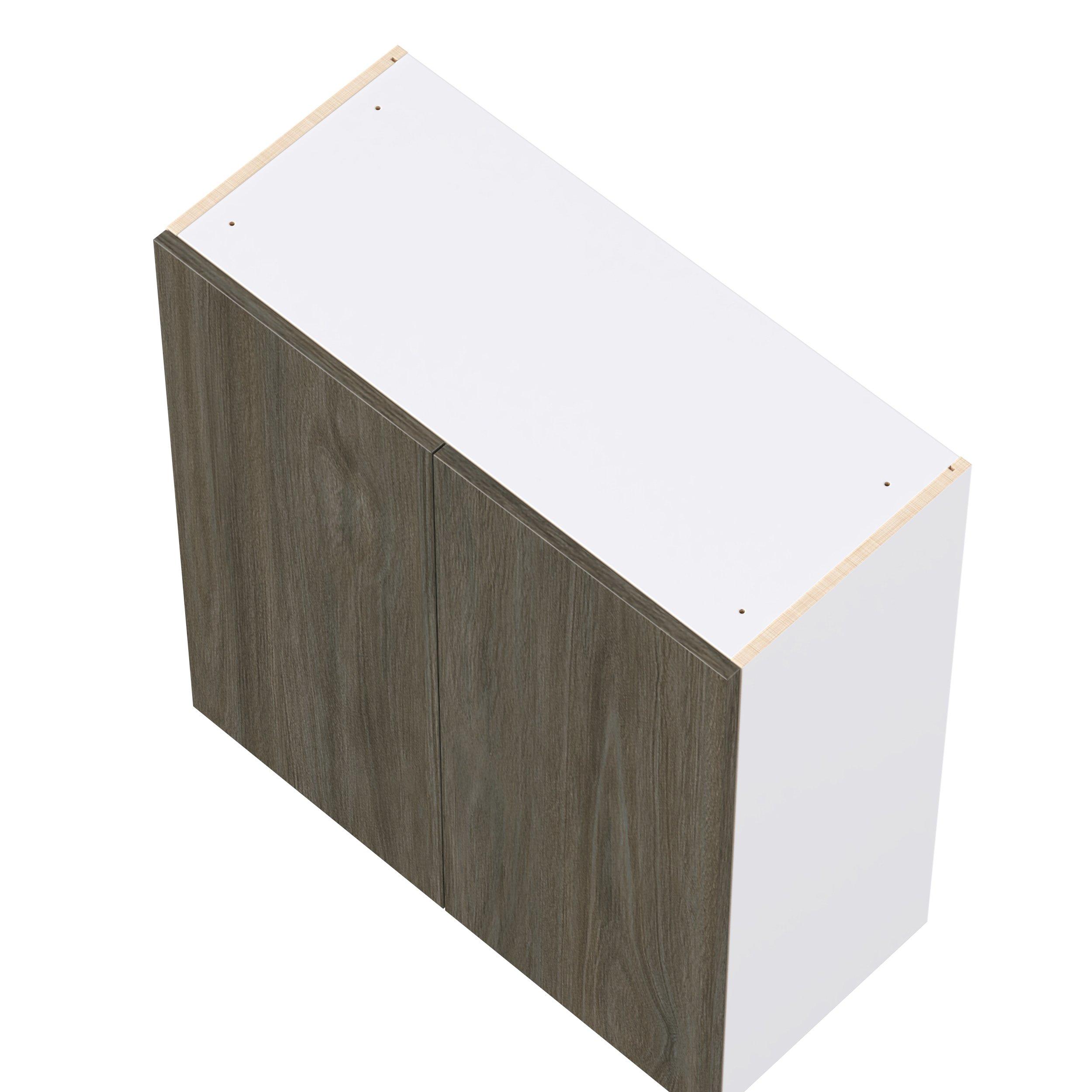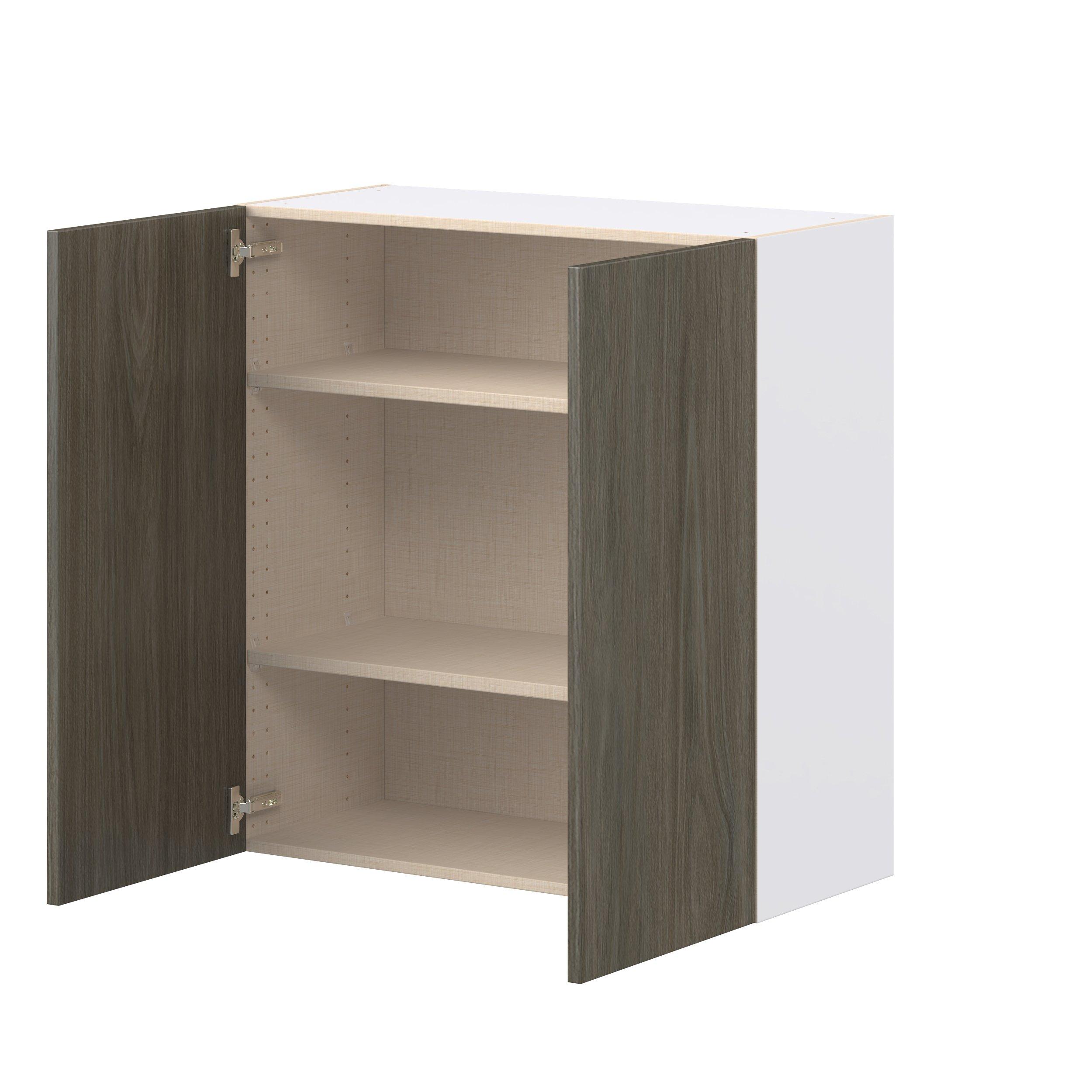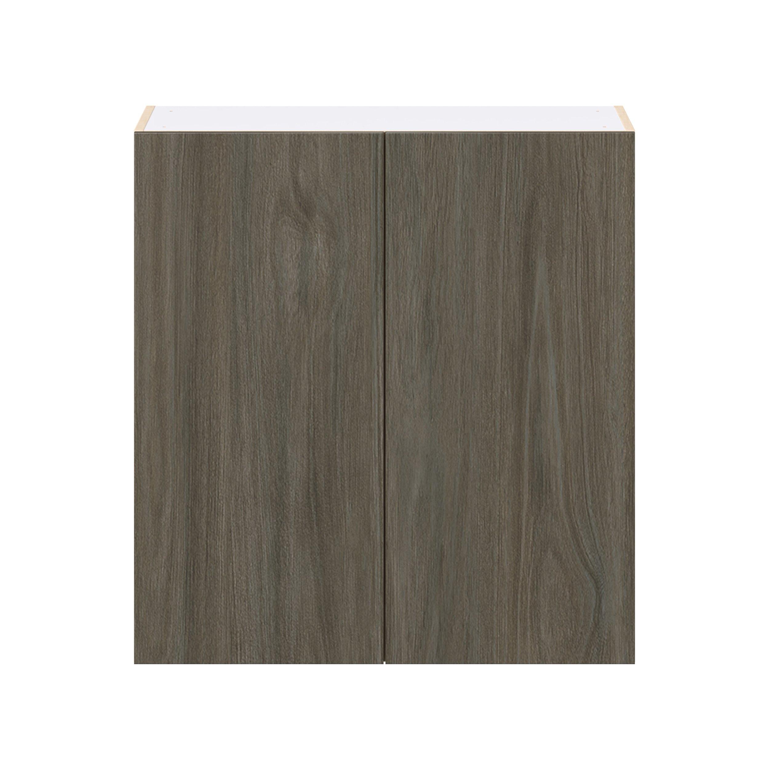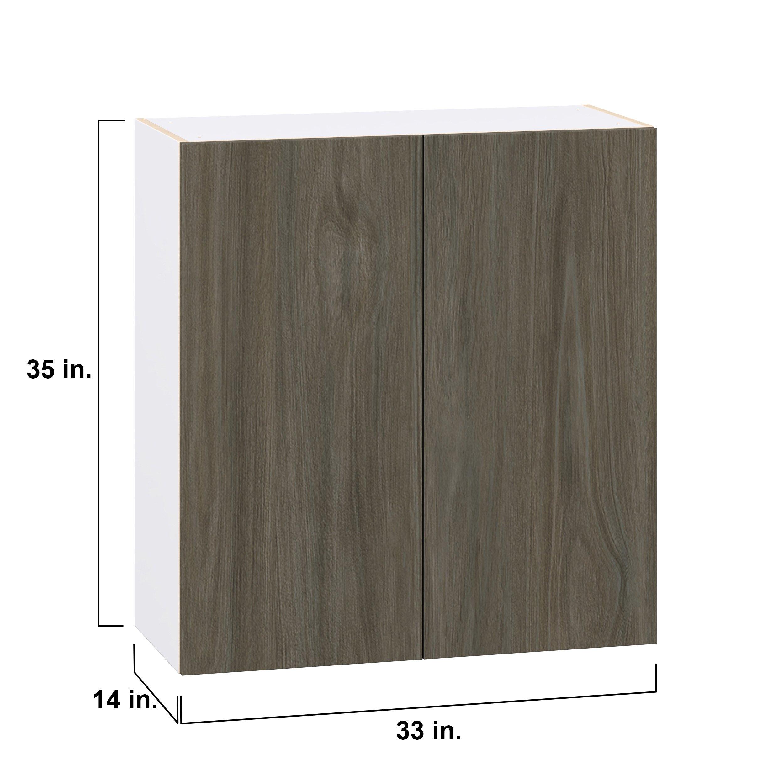 Elevate your project with the contemporary charm of Glenwood slab-style cabinets. Available in desert Mojavi oak and rich burnt walnut finishes, this collection captures the warmth and beauty of natural wood with the practicality of textured melamine. Crafted from one-piece MDF Studio Design Collection Glenwood 33 in. Burnt Walnut Door Wall Cabinet is designed to resist hairline cracks while the easy-to-clean finish stands up to stains and moisture. Featuring 5-piece doors and dovetail drawer joints, these cabinets offer durability and elegance. This collection combines style with everyday storage solutions.