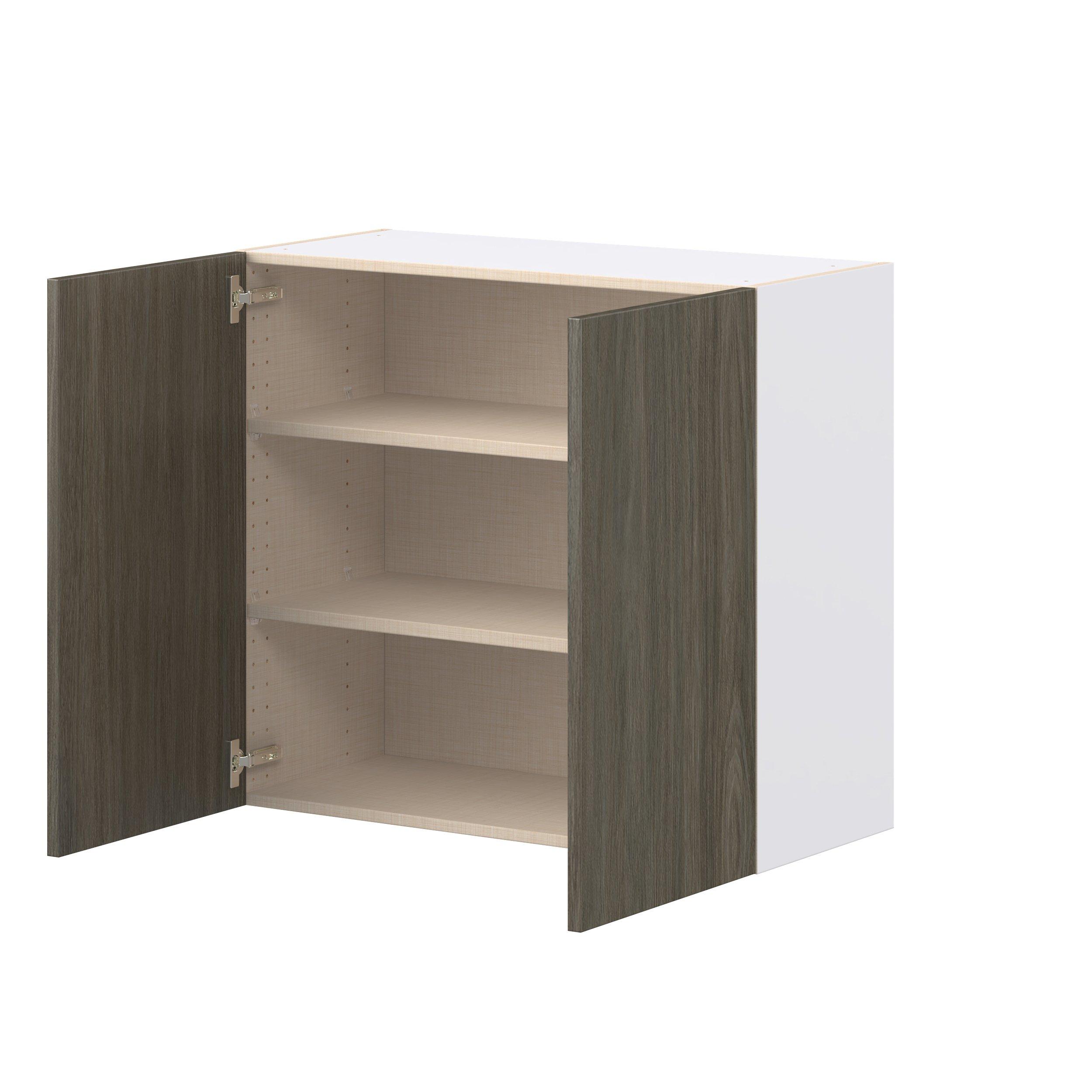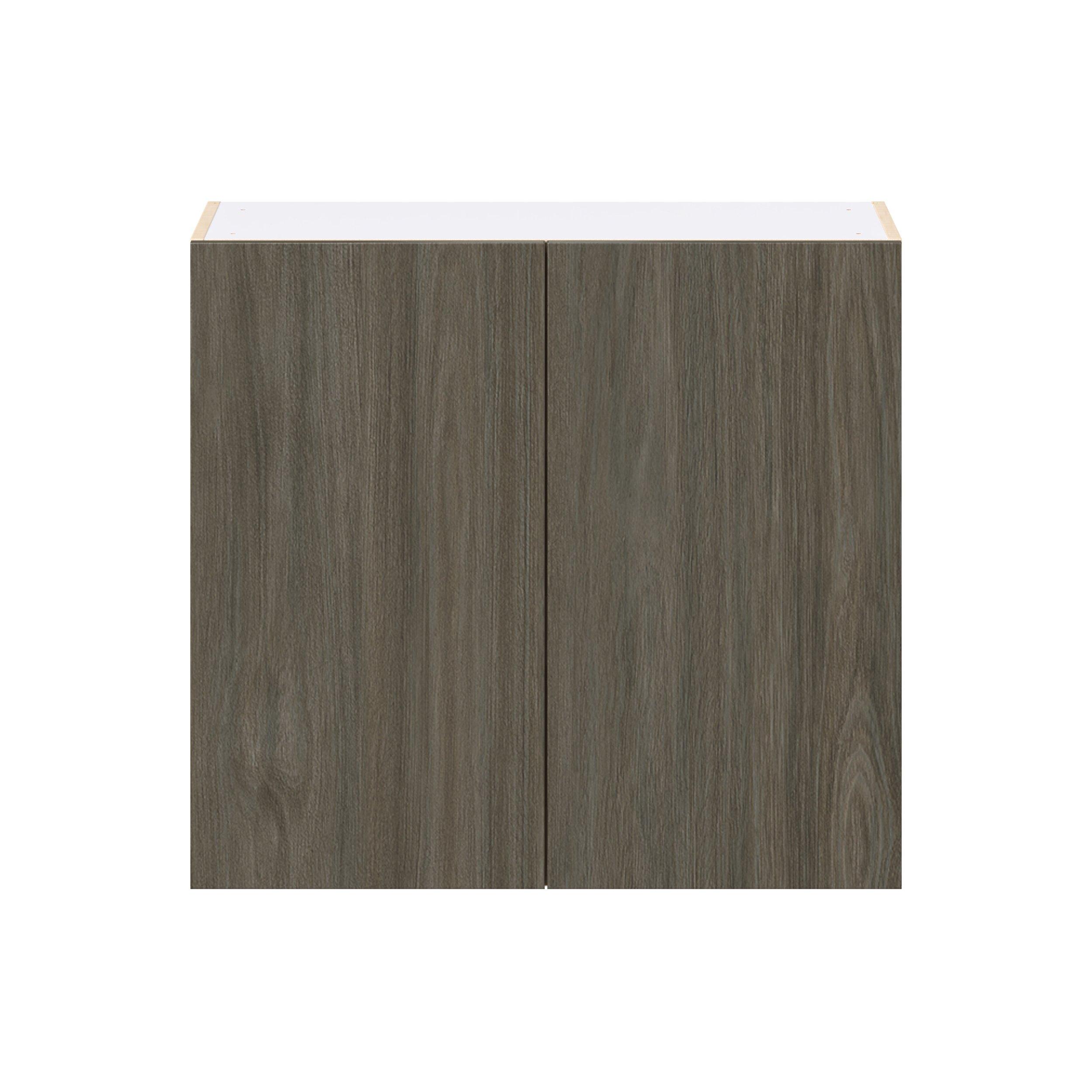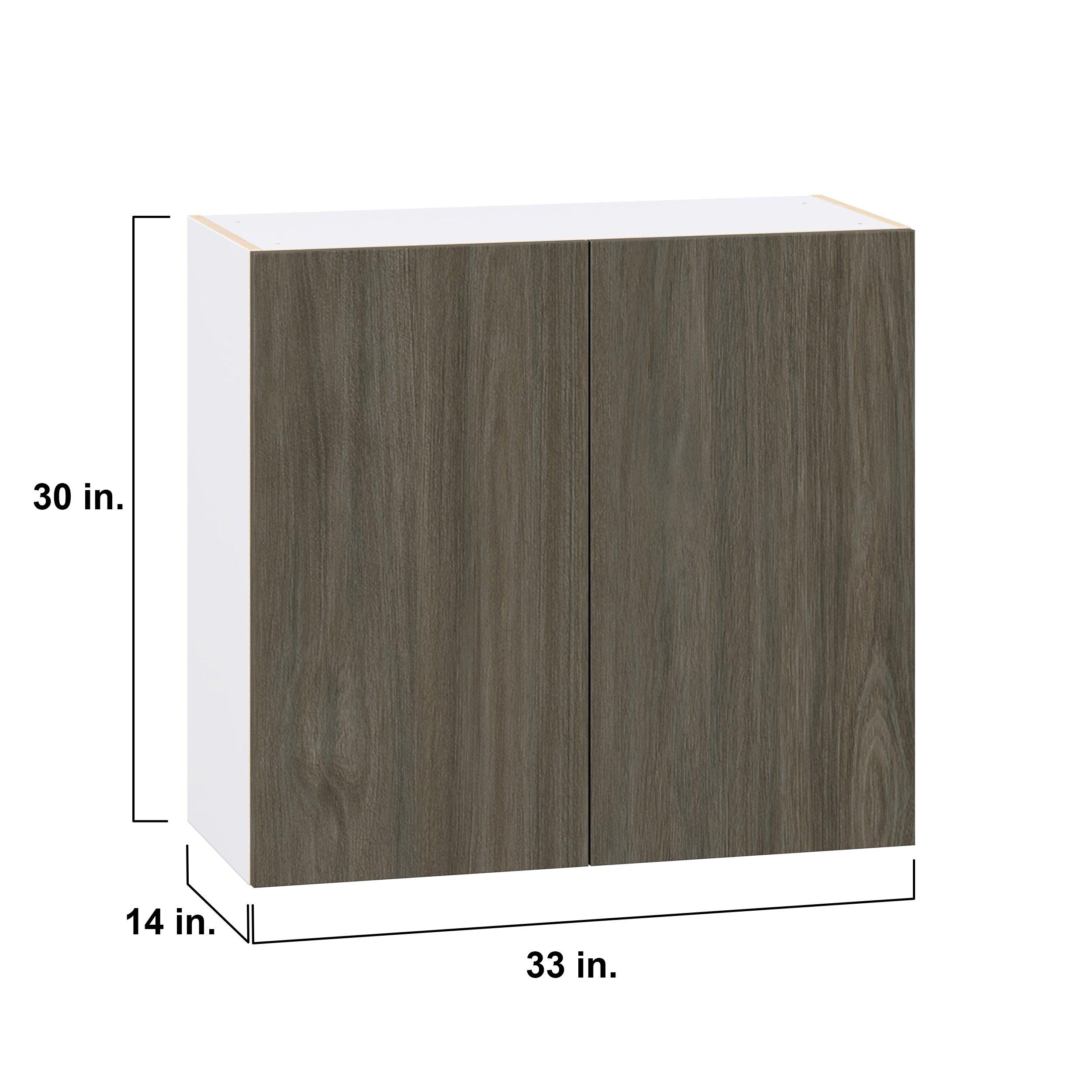 Elevate your project with the contemporary charm of Glenwood slab-style cabinets. Available in desert Mojavi oak and rich burnt walnut finishes, this collection captures the warmth and beauty of natural wood with the practicality of textured melamine. Crafted from one-piece MDF Studio Design Collection Glenwood 33 in. Burnt Walnut Door Wall Cabinet is designed to resist hairline cracks while the easy-to-clean finish stands up to stains and moisture. Featuring 5-piece doors and dovetail drawer joints, these cabinets offer durability and elegance. This collection combines style with everyday storage solutions.