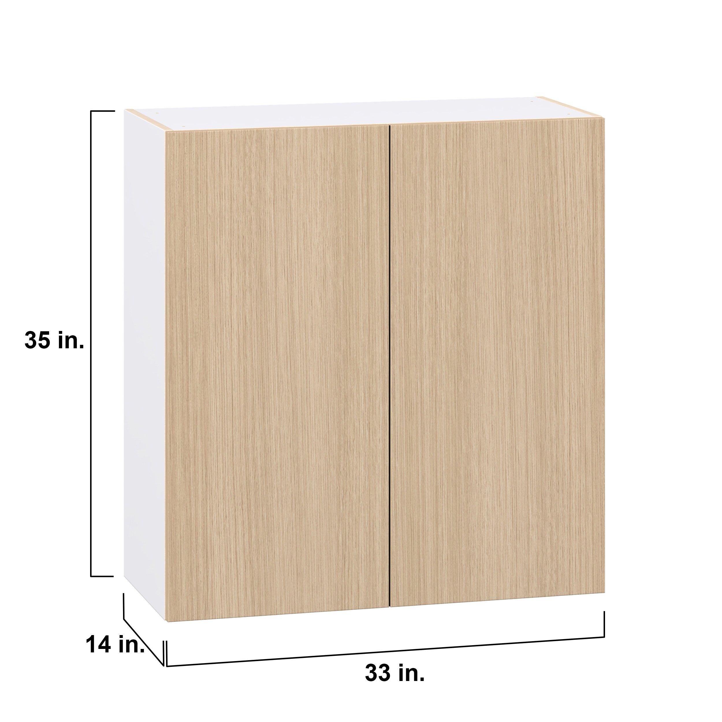 Elevate your project with the contemporary charm of Glenwood slab-style cabinets. Available in desert Mojavi oak and rich burnt walnut finishes, this collection captures the warmth and beauty of natural wood with the practicality of textured melamine. Crafted from one-piece MDF Studio Design Collection Glenwood 33 in. Mojavi Oak Door Wall Cabinet is designed to resist hairline cracks while the easy-to-clean finish stands up to stains and moisture. Featuring 5-piece doors and dovetail drawer joints, these cabinets offer durability and elegance. This collection combines style with everyday storage solutions.