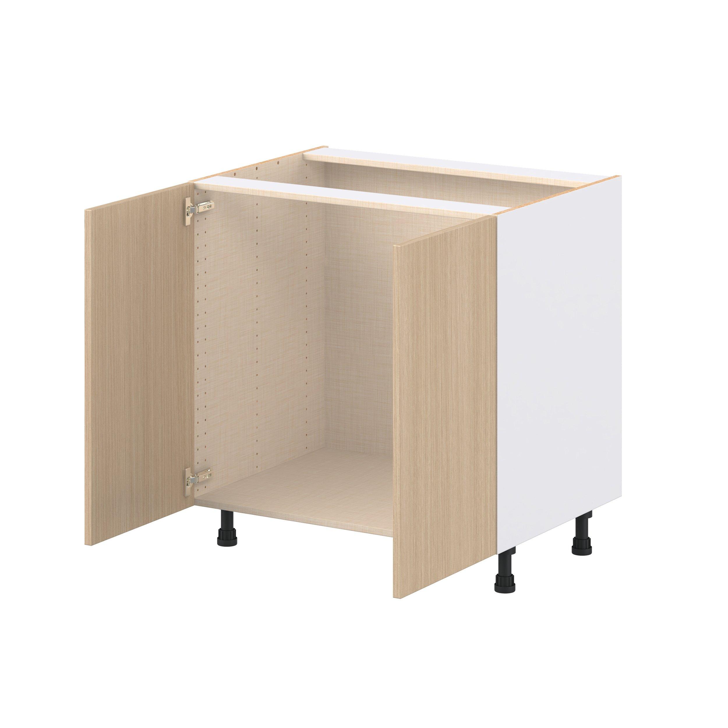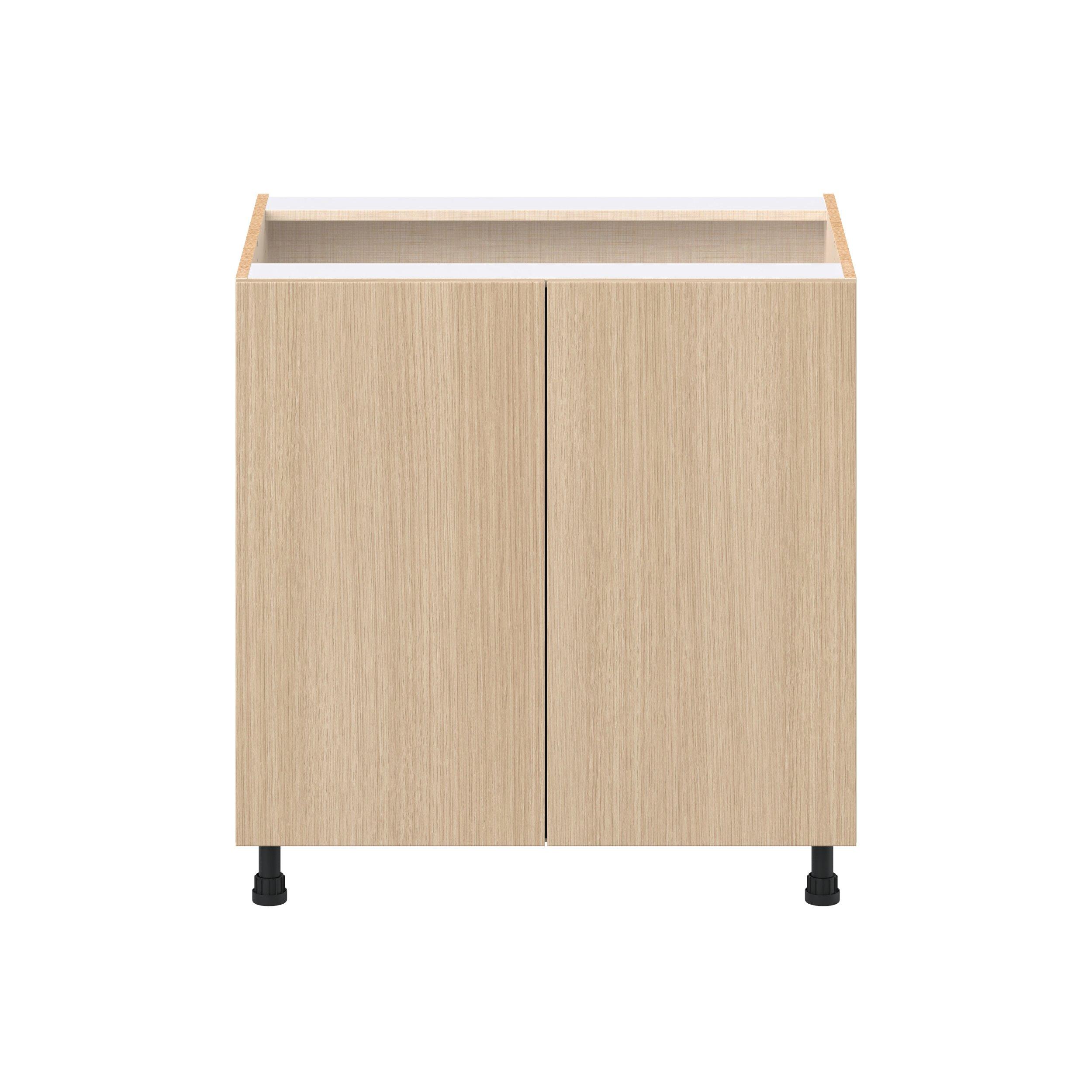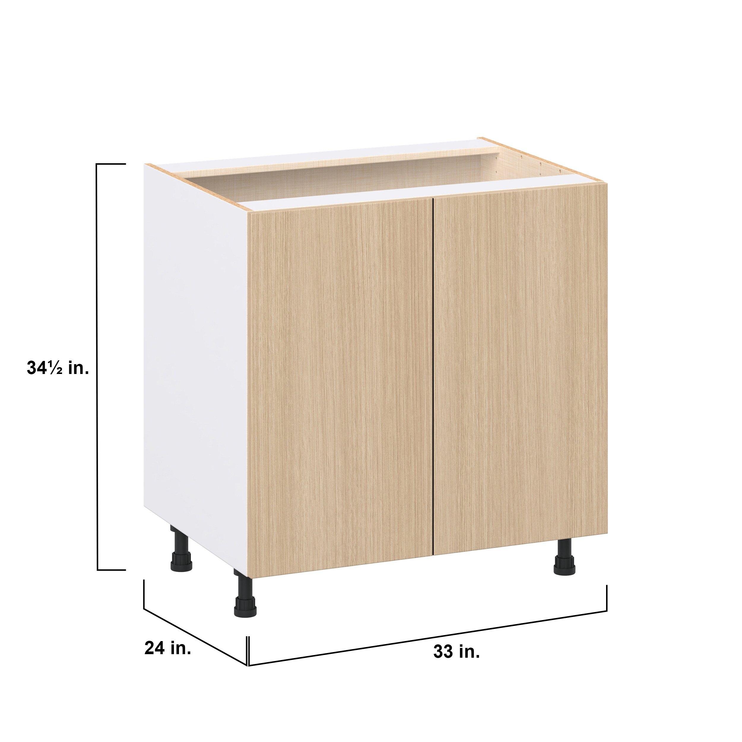 Elevate your project with the contemporary charm of Glenwood slab-style cabinets. Available in desert Mojavi oak and rich burnt walnut finishes, this collection captures the warmth and beauty of natural wood with the practicality of textured melamine. Crafted from one-piece MDF Studio Design Collection Glenwood 33 in. Mojavi Oak Sink Base Cabinet is designed to resist hairline cracks while the easy-to-clean finish stands up to stains and moisture. Featuring 5-piece doors and dovetail drawer joints, these cabinets offer durability and elegance. This collection combines style with everyday storage solutions.