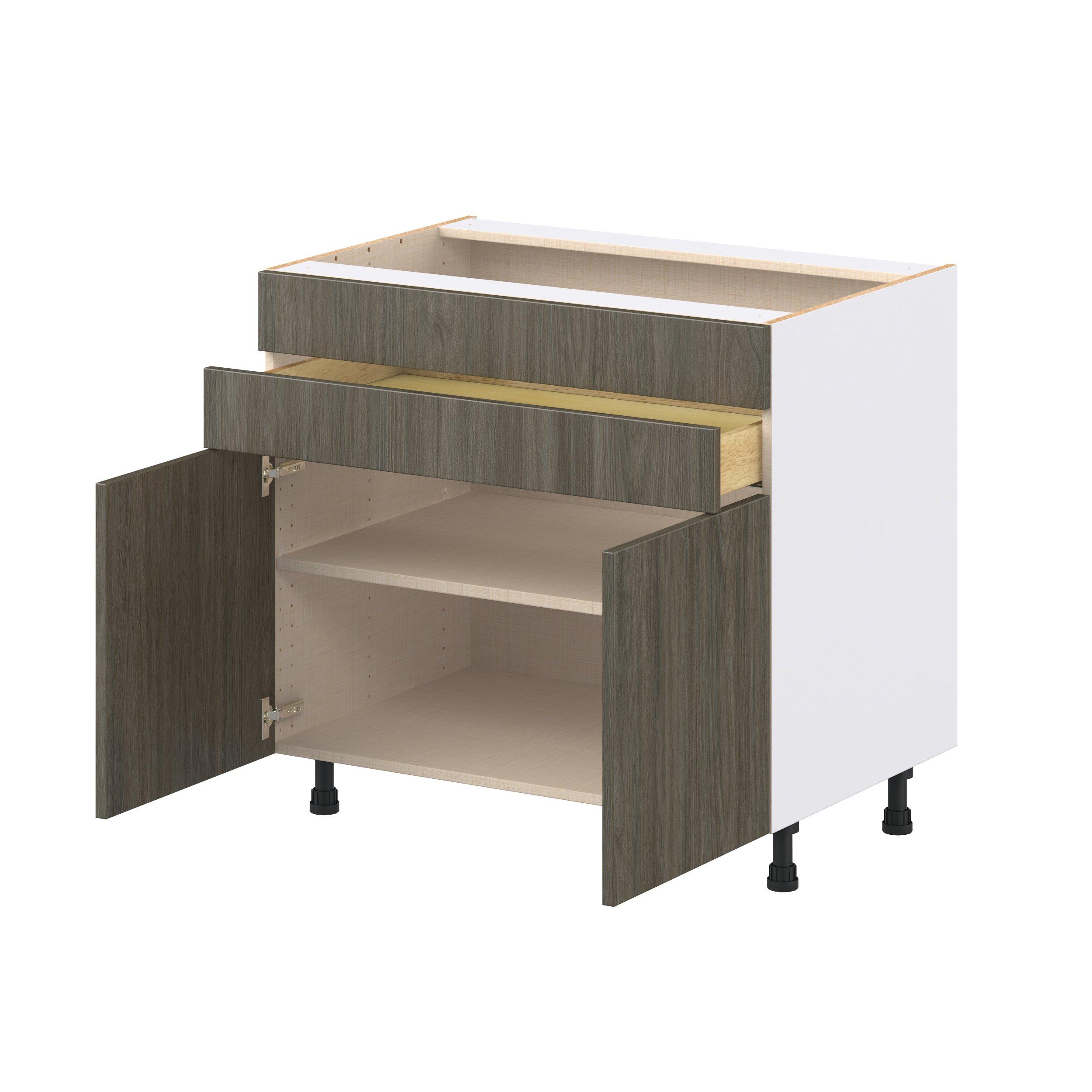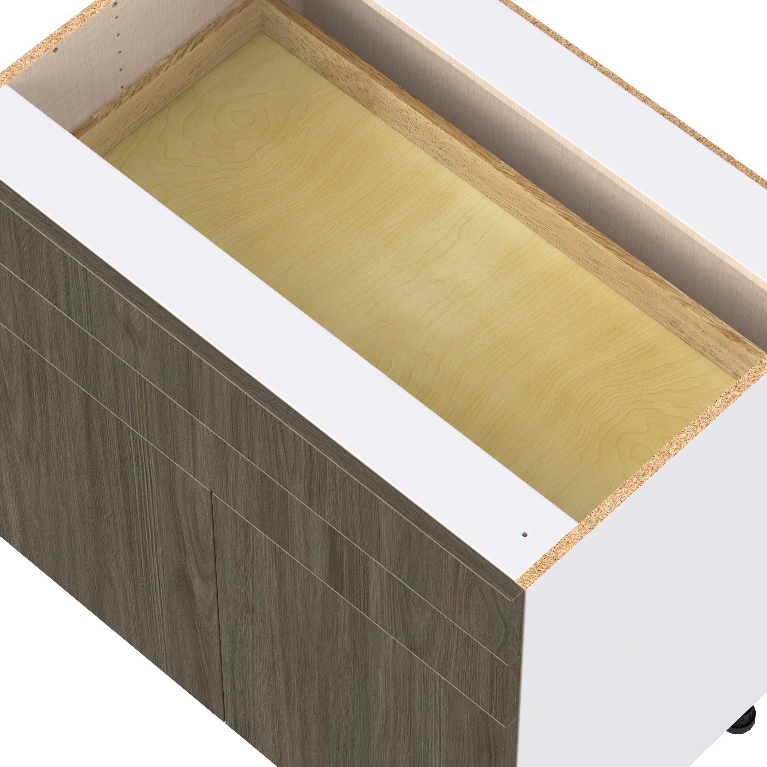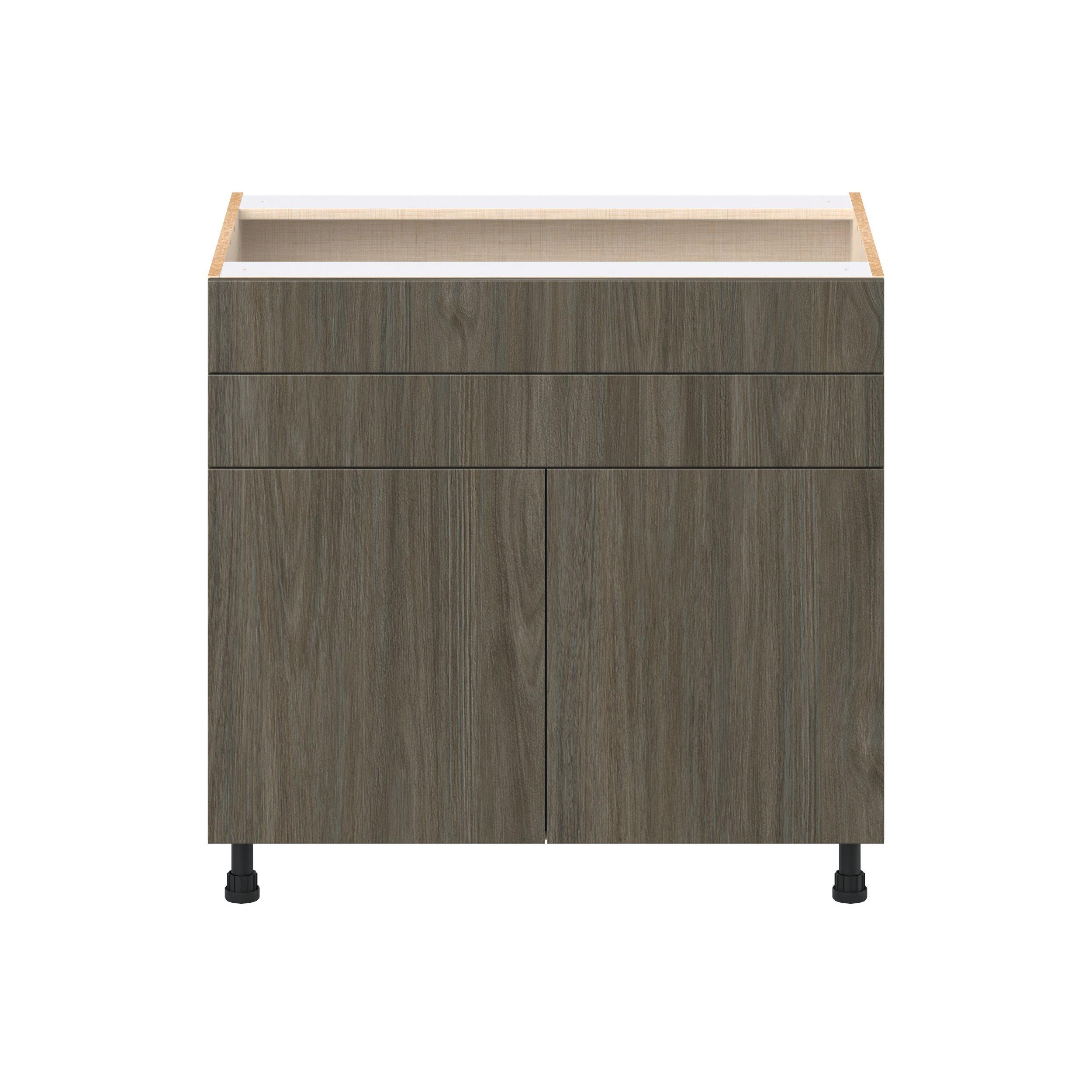 Elevate your project with the contemporary charm of Glenwood slab-style cabinets. Available in desert Mojavi oak and rich burnt walnut finishes, this collection captures the warmth and beauty of natural wood with the practicality of textured melamine. Crafted from one-piece MDF Studio Design Collection Glenwood 36 in. Burnt Walnut Cooktop Base Cabinet is designed to resist hairline cracks while the easy-to-clean finish stands up to stains and moisture. Featuring 5-piece doors and dovetail drawer joints, these cabinets offer durability and elegance. This collection combines style with everyday storage solutions.