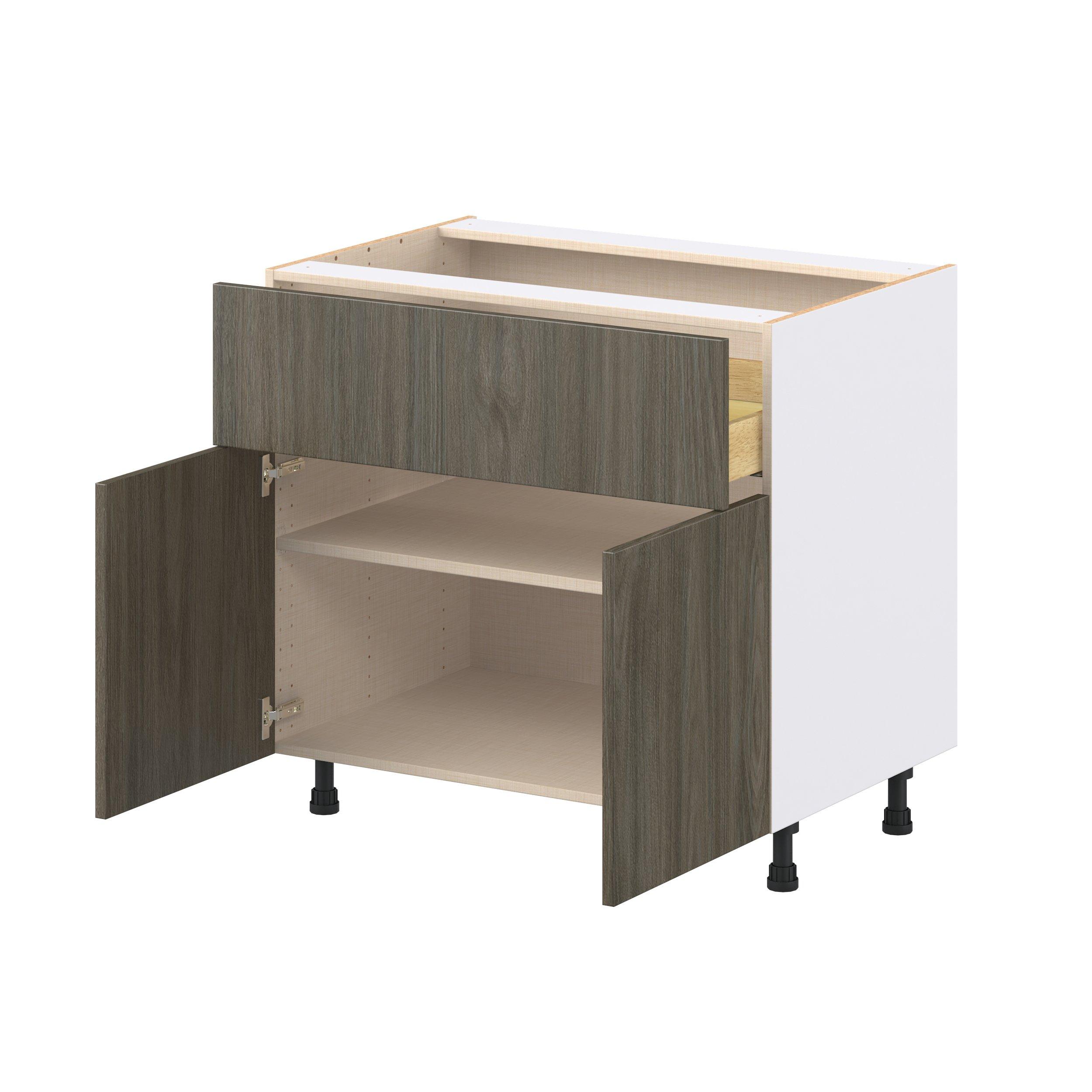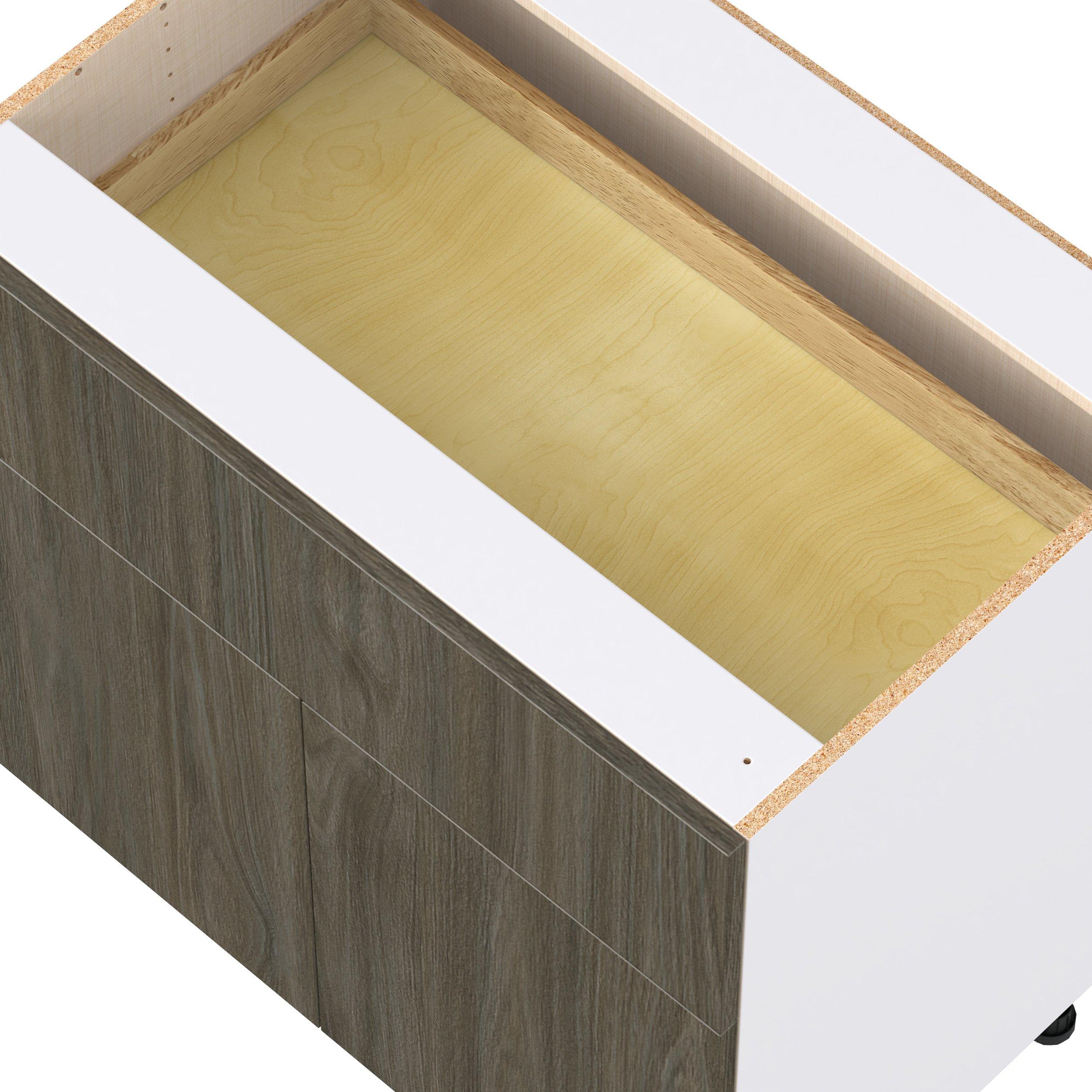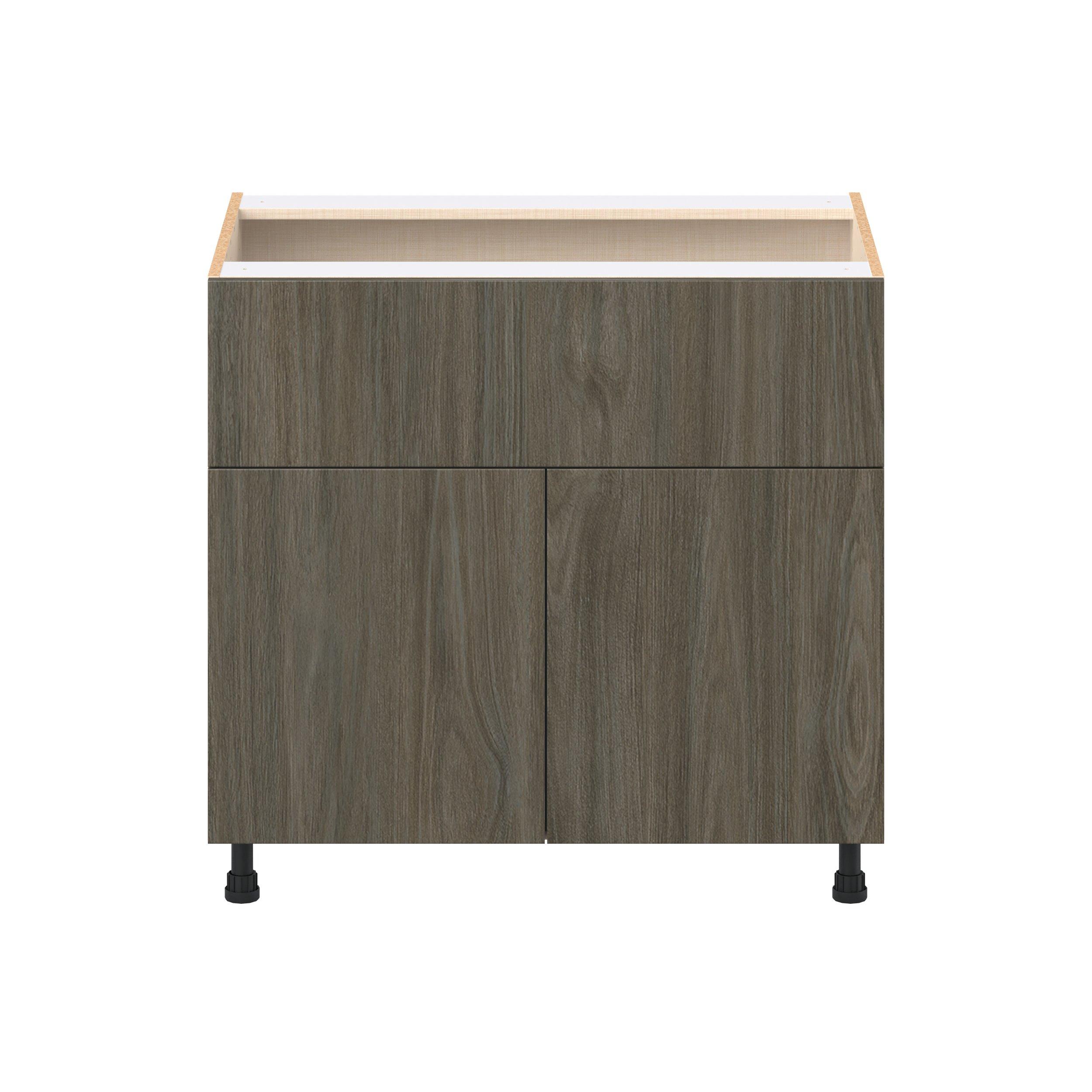 Elevate your project with the contemporary charm of Glenwood slab-style cabinets. Available in desert Mojavi oak and rich burnt walnut finishes, this collection captures the warmth and beauty of natural wood with the practicality of textured melamine. Crafted from one-piece MDF Studio Design Collection Glenwood 36 in. Burnt Walnut Cooktop Base Cabinet is designed to resist hairline cracks while the easy-to-clean finish stands up to stains and moisture. Featuring 5-piece doors and dovetail drawer joints, these cabinets offer durability and elegance. This collection combines style with everyday storage solutions.
