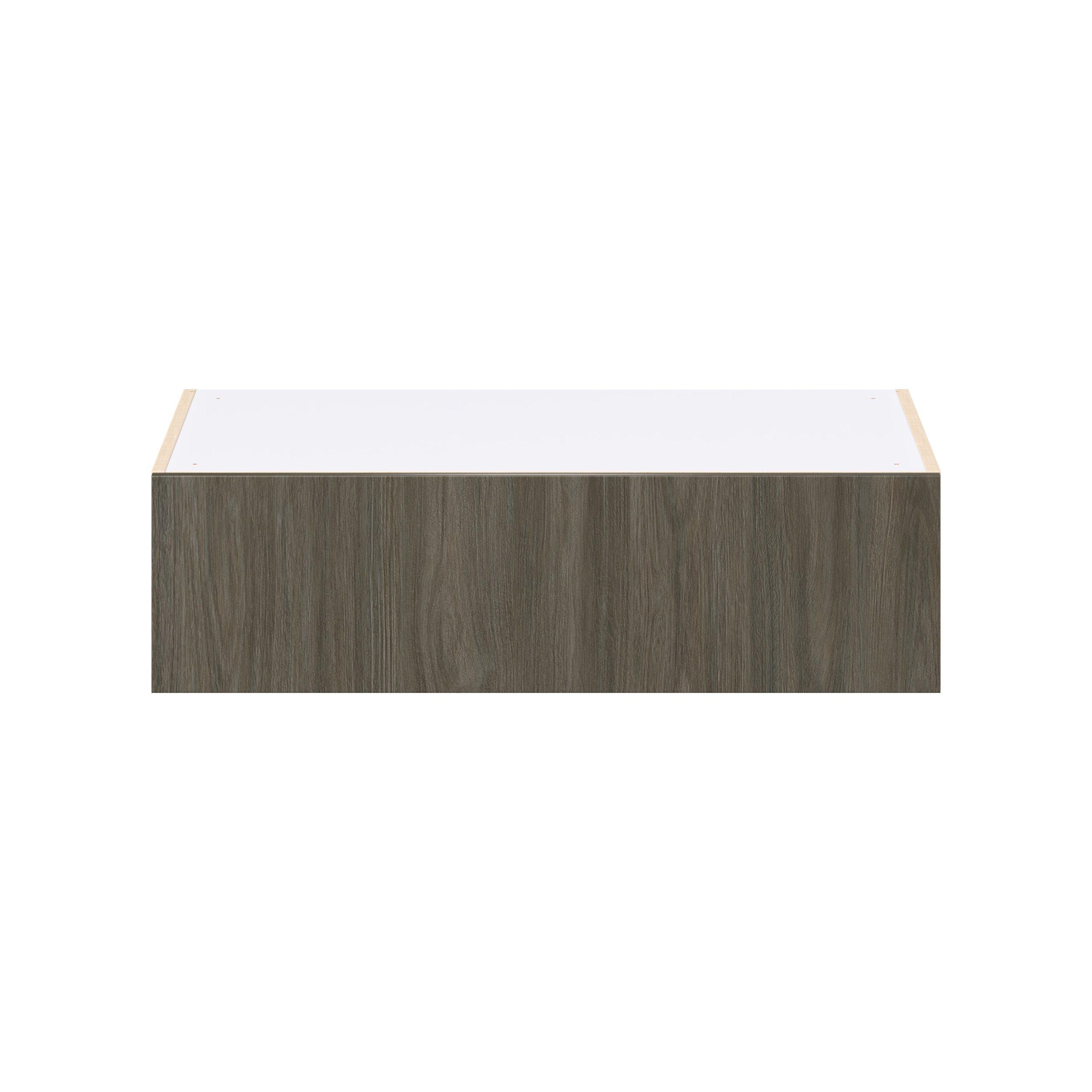Elevate your project with the contemporary charm of Glenwood slab-style cabinets. Available in desert Mojavi oak and rich burnt walnut finishes, this collection captures the warmth and beauty of natural wood with the practicality of textured melamine. Crafted from one-piece MDF Studio Design Collection Glenwood 36 in. Burnt Walnut Lift Up Wall Cabinet is designed to resist hairline cracks while the easy-to-clean finish stands up to stains and moisture. Featuring 5-piece doors and dovetail drawer joints, these cabinets offer durability and elegance. This collection combines style with everyday storage solutions.