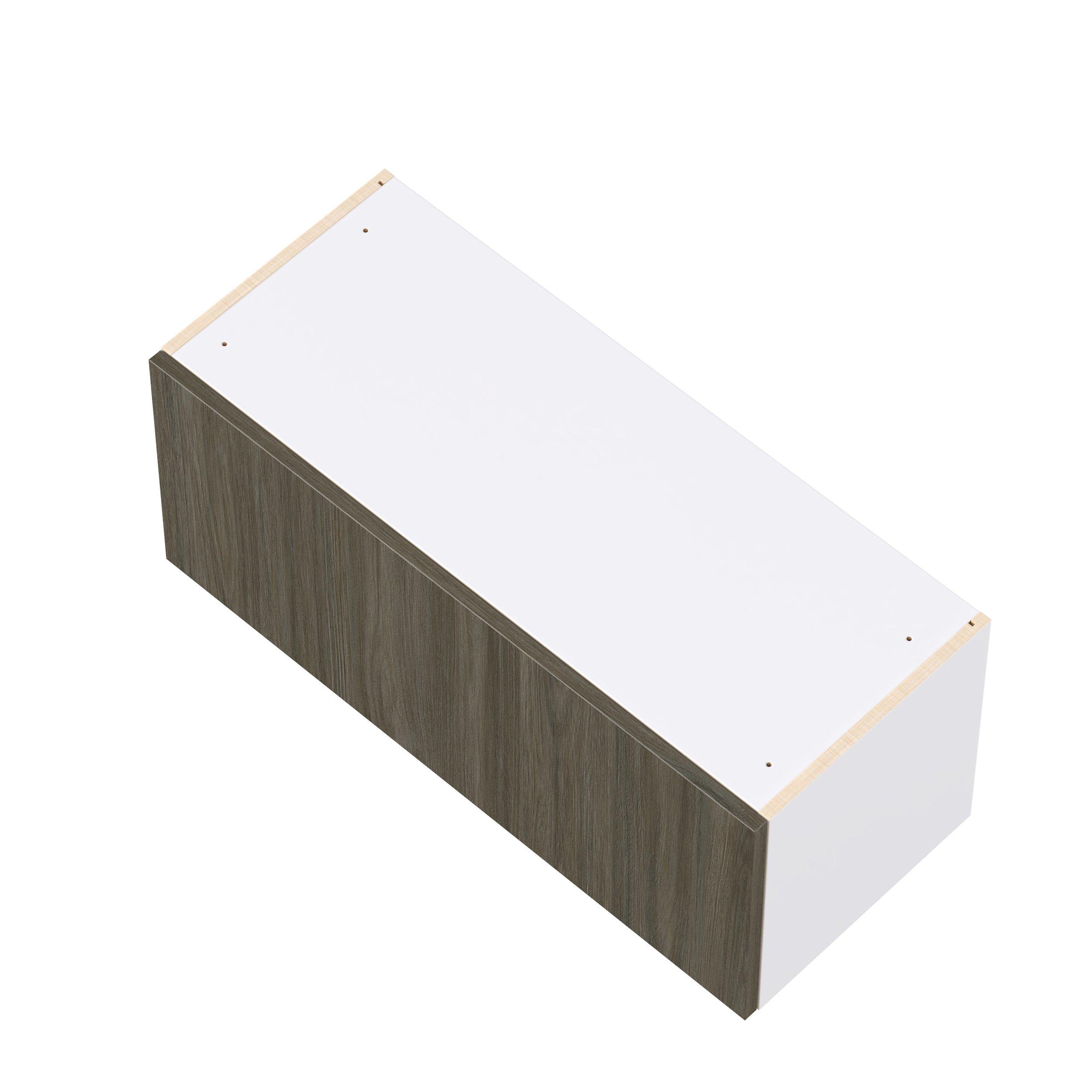 Elevate your project with the contemporary charm of Glenwood slab-style cabinets. Available in desert Mojavi oak and rich burnt walnut finishes, this collection captures the warmth and beauty of natural wood with the practicality of textured melamine. Crafted from one-piece MDF Studio Design Collection Glenwood 36 in. Burnt Walnut Lift Up Wall Cabinet is designed to resist hairline cracks while the easy-to-clean finish stands up to stains and moisture. Featuring 5-piece doors and dovetail drawer joints, these cabinets offer durability and elegance. This collection combines style with everyday storage solutions.