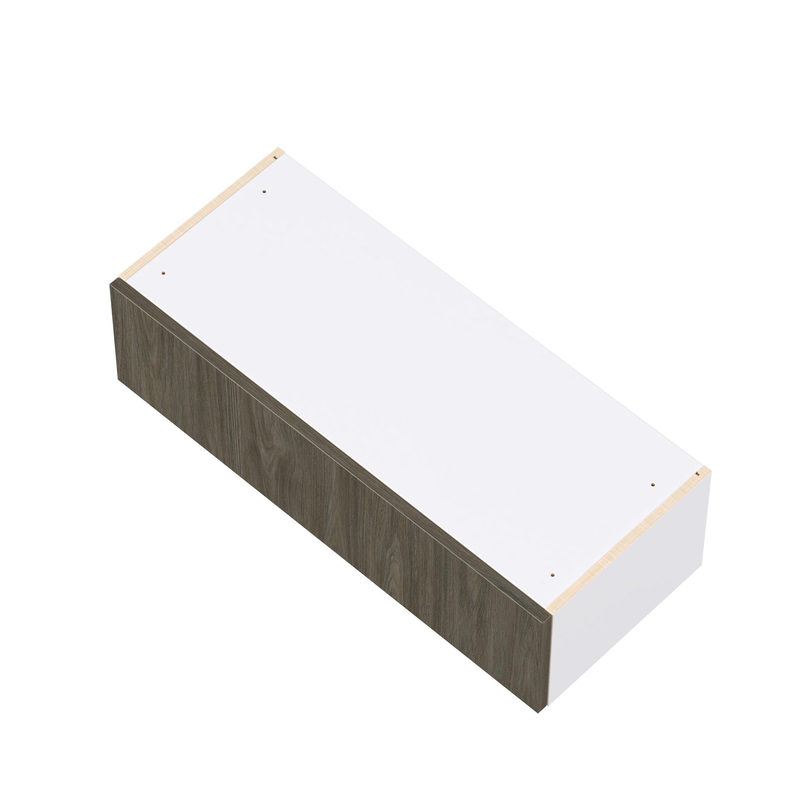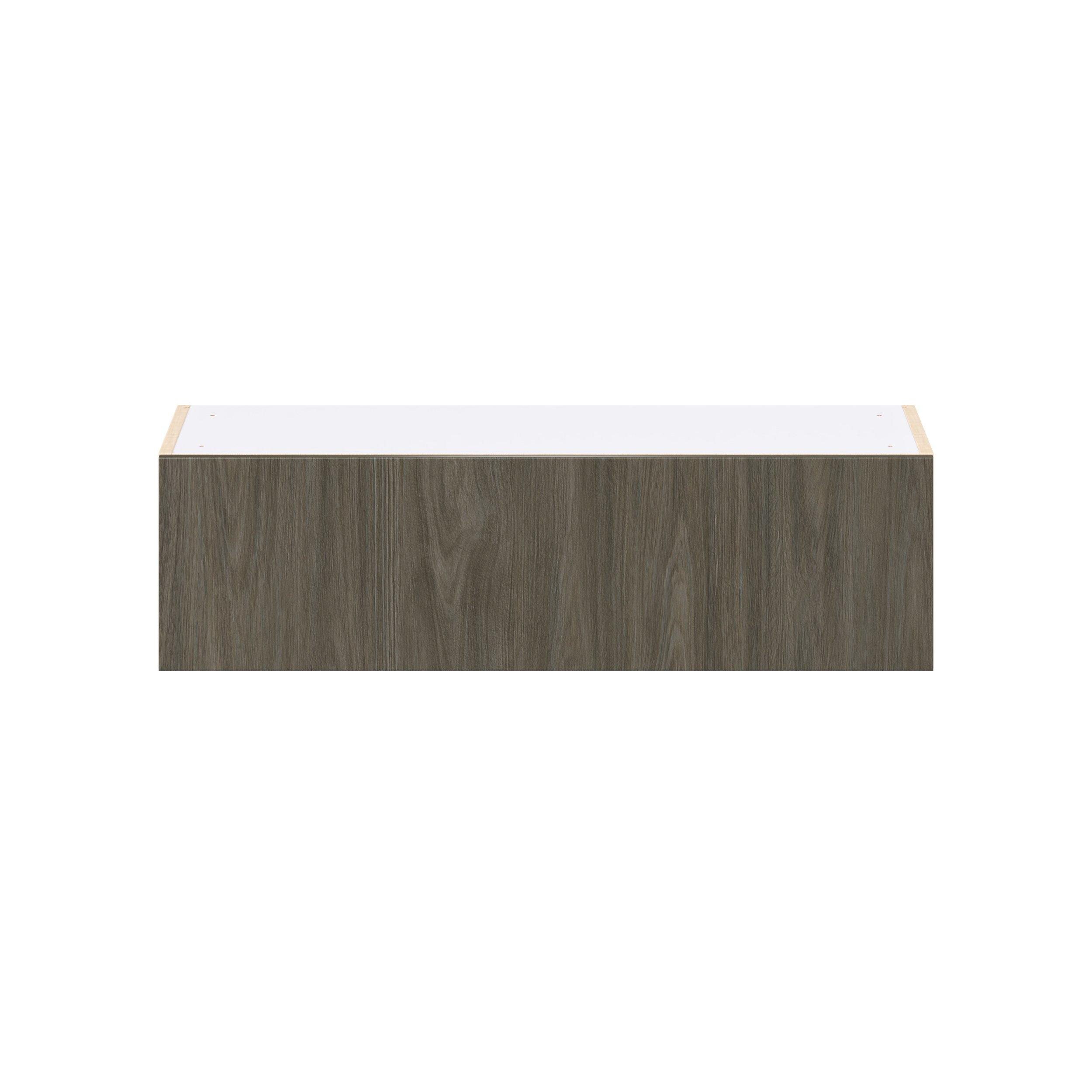 Elevate your project with the contemporary charm of Glenwood slab-style cabinets. Available in desert Mojavi oak and rich burnt walnut finishes, this collection captures the warmth and beauty of natural wood with the practicality of textured melamine. Crafted from one-piece MDF Studio Design Collection Glenwood 36 in. Burnt Walnut Lift Up Wall Cabinet is designed to resist hairline cracks while the easy-to-clean finish stands up to stains and moisture. Featuring 5-piece doors and dovetail drawer joints, these cabinets offer durability and elegance. This collection combines style with everyday storage solutions.