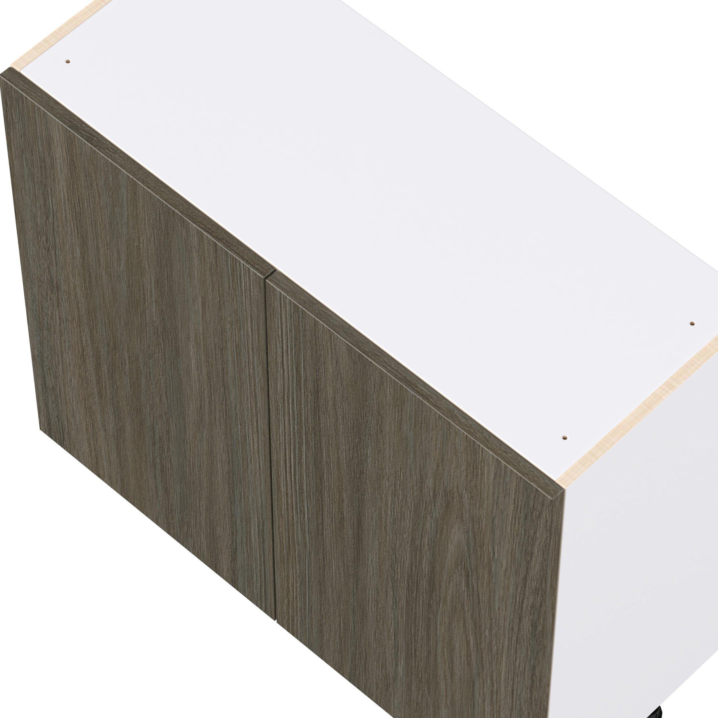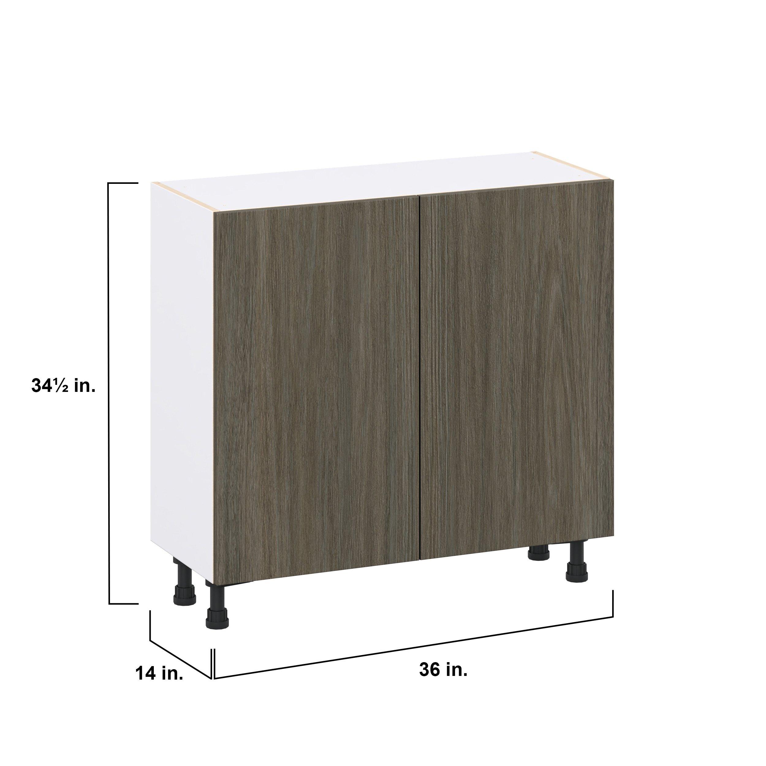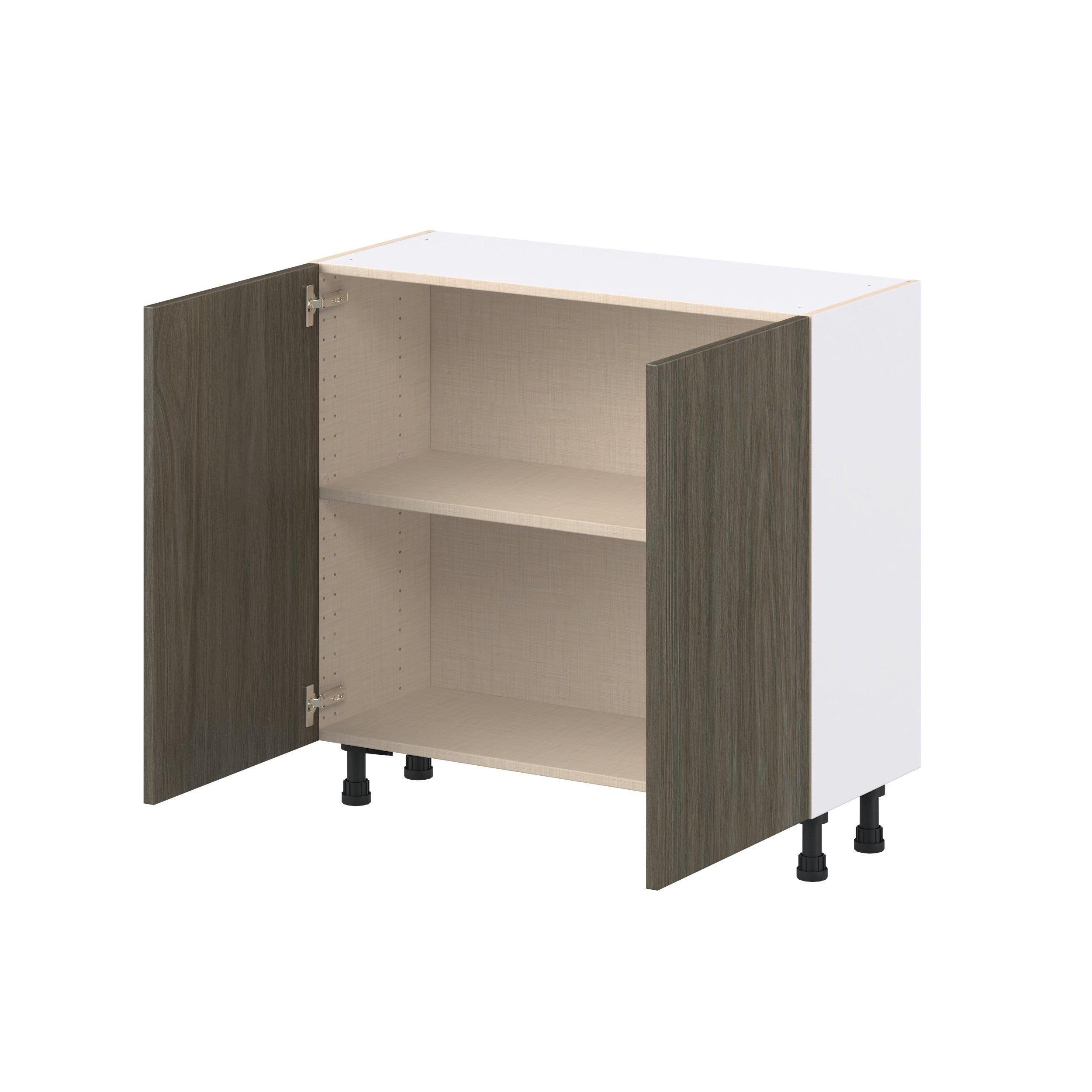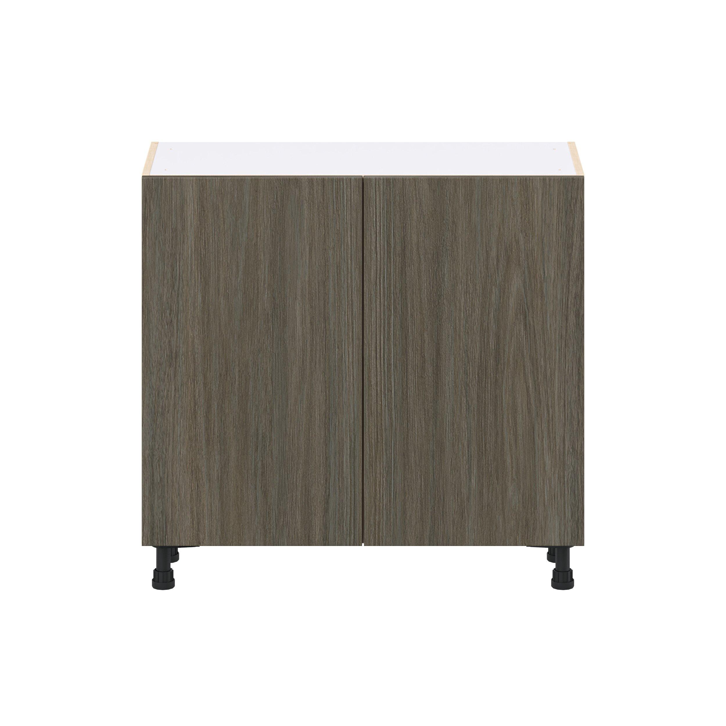 Elevate your project with the contemporary charm of Glenwood slab-style cabinets. Available in desert Mojavi oak and rich burnt walnut finishes, this collection captures the warmth and beauty of natural wood with the practicality of textured melamine. Crafted from one-piece MDF Studio Design Collection Glenwood 36 in. Burnt Walnut Shallow Base Cabinet is designed to resist hairline cracks while the easy-to-clean finish stands up to stains and moisture. Featuring 5-piece doors and dovetail drawer joints, these cabinets offer durability and elegance. This collection combines style with everyday storage solutions.
