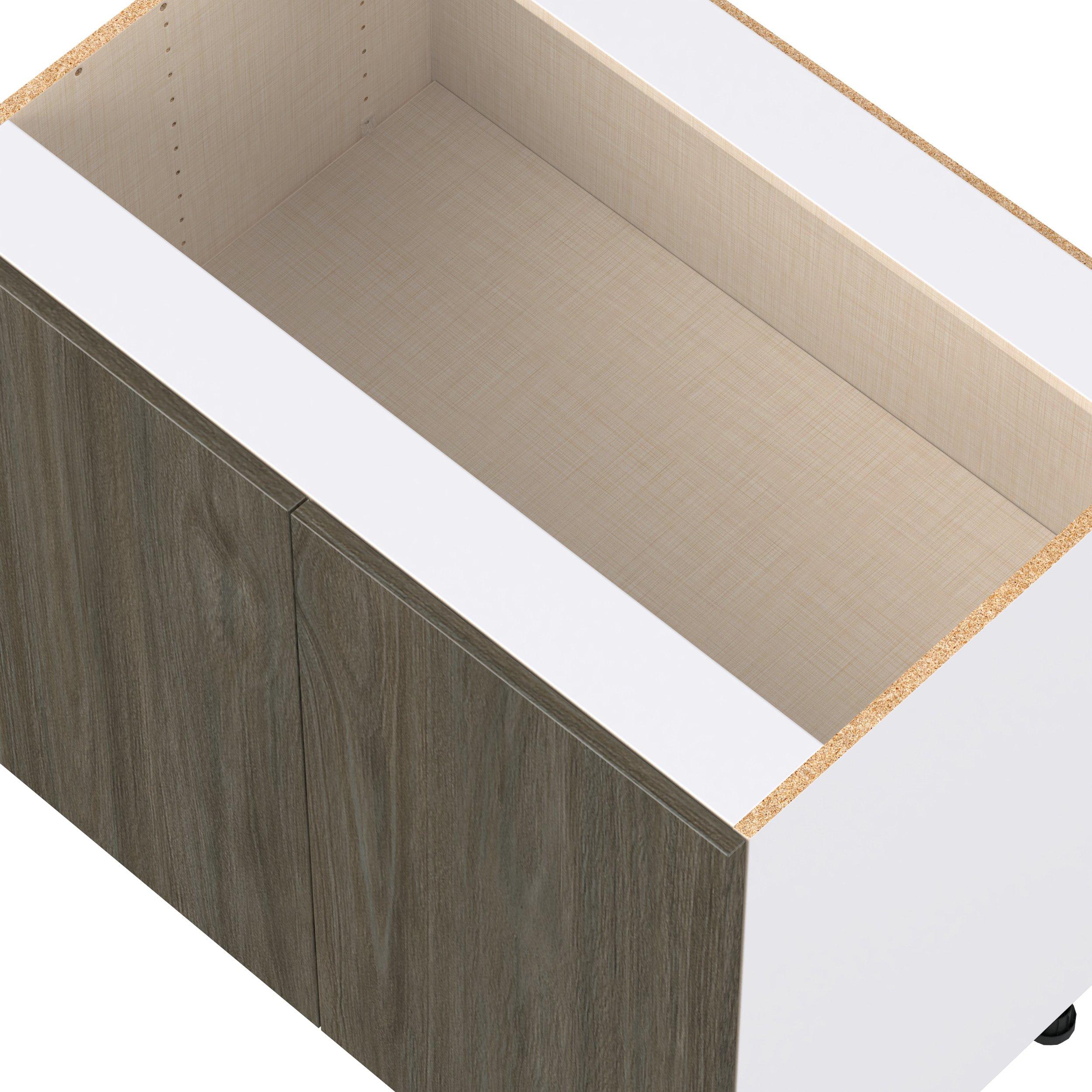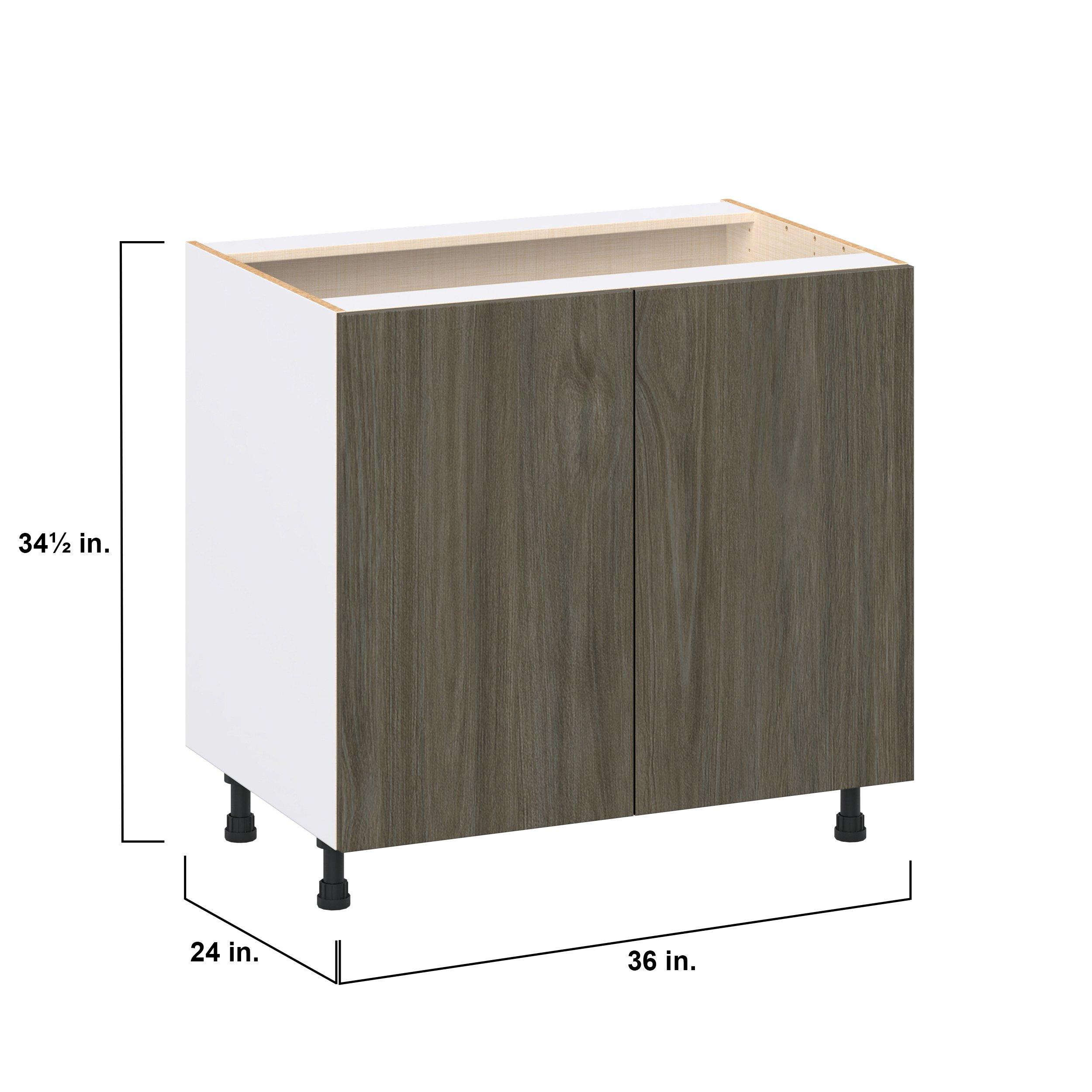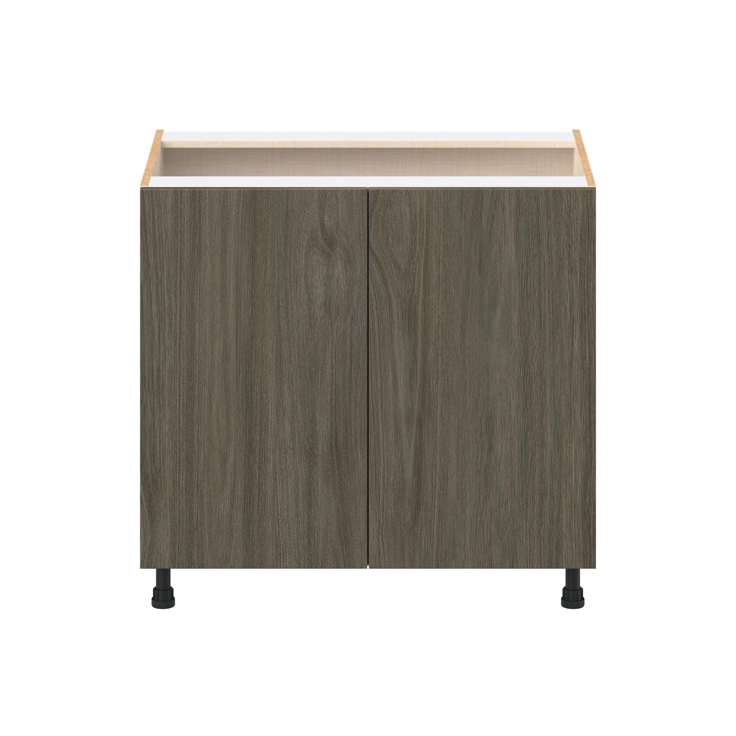 Elevate your project with the contemporary charm of Glenwood slab-style cabinets. Available in desert Mojavi oak and rich burnt walnut finishes, this collection captures the warmth and beauty of natural wood with the practicality of textured melamine. Crafted from one-piece MDF Studio Design Collection Glenwood 36 in. Burnt Walnut Shallow Base Cabinet is designed to resist hairline cracks while the easy-to-clean finish stands up to stains and moisture. Featuring 5-piece doors and dovetail drawer joints, these cabinets offer durability and elegance. This collection combines style with everyday storage solutions.