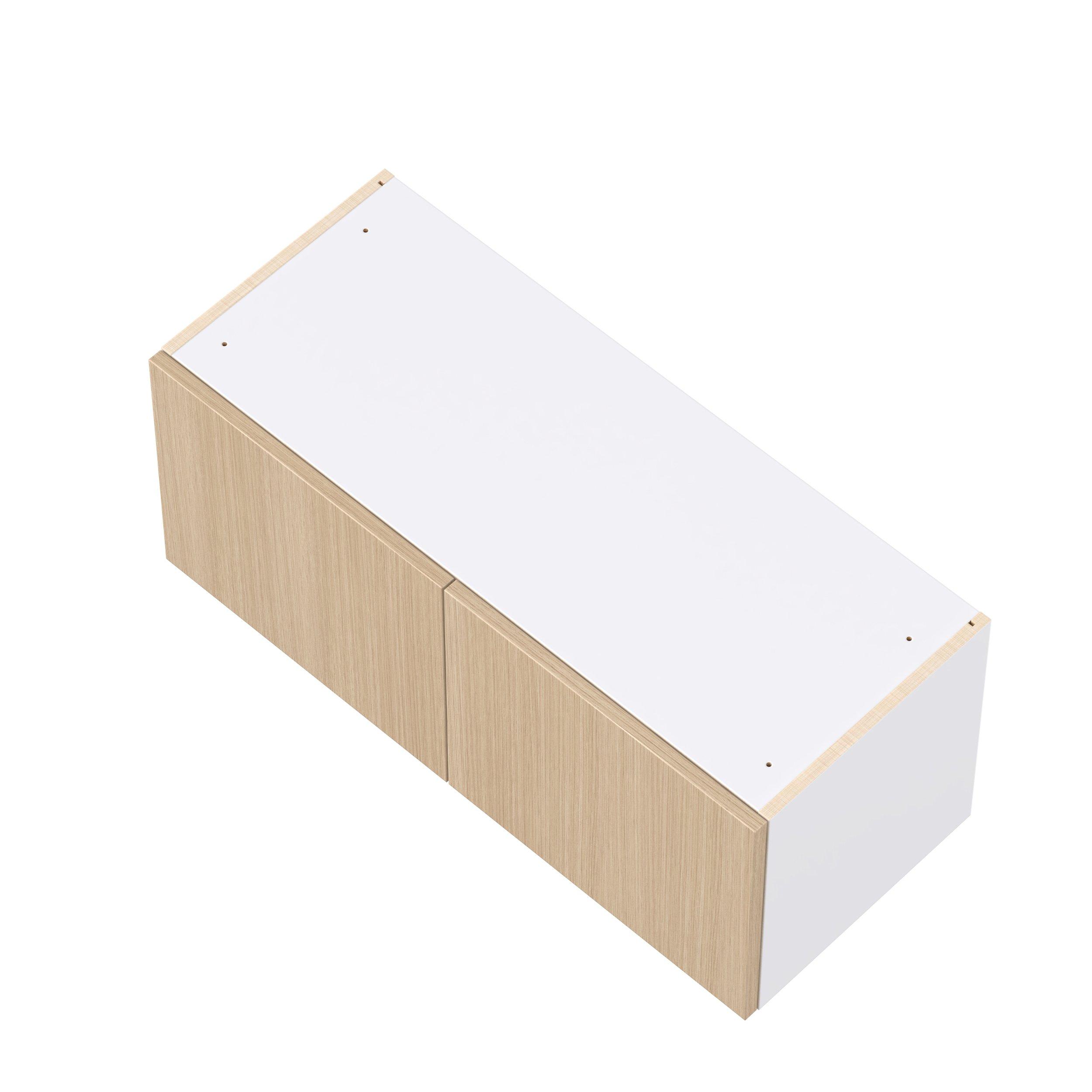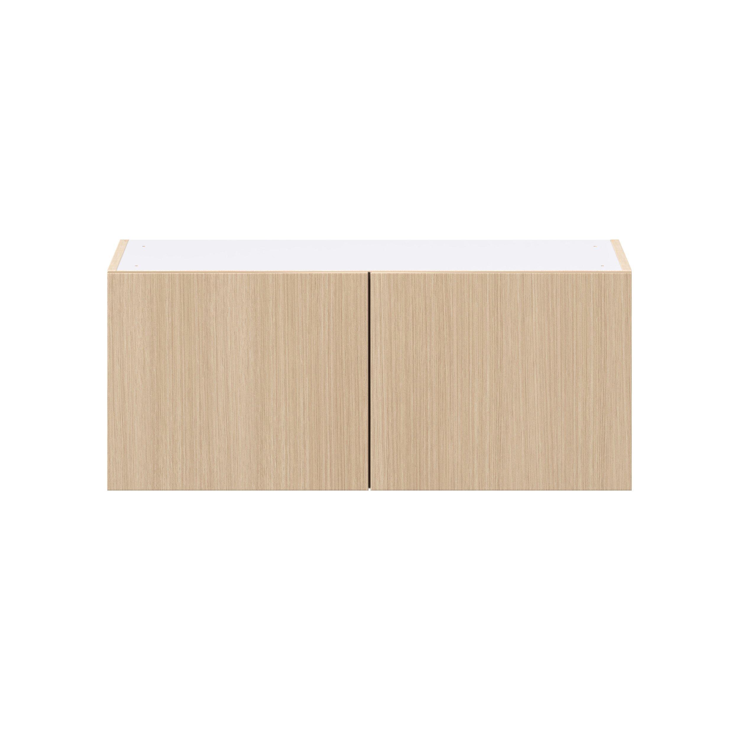 Elevate your project with the contemporary charm of Glenwood slab-style cabinets. Available in desert Mojavi oak and rich burnt walnut finishes, this collection captures the warmth and beauty of natural wood with the practicality of textured melamine. Crafted from one-piece MDF Studio Design Collection Glenwood 36 in. Mojavi Oak Bridge Wall Cabinet is designed to resist hairline cracks while the easy-to-clean finish stands up to stains and moisture. Featuring 5-piece doors and dovetail drawer joints, these cabinets offer durability and elegance. This collection combines style with everyday storage solutions.