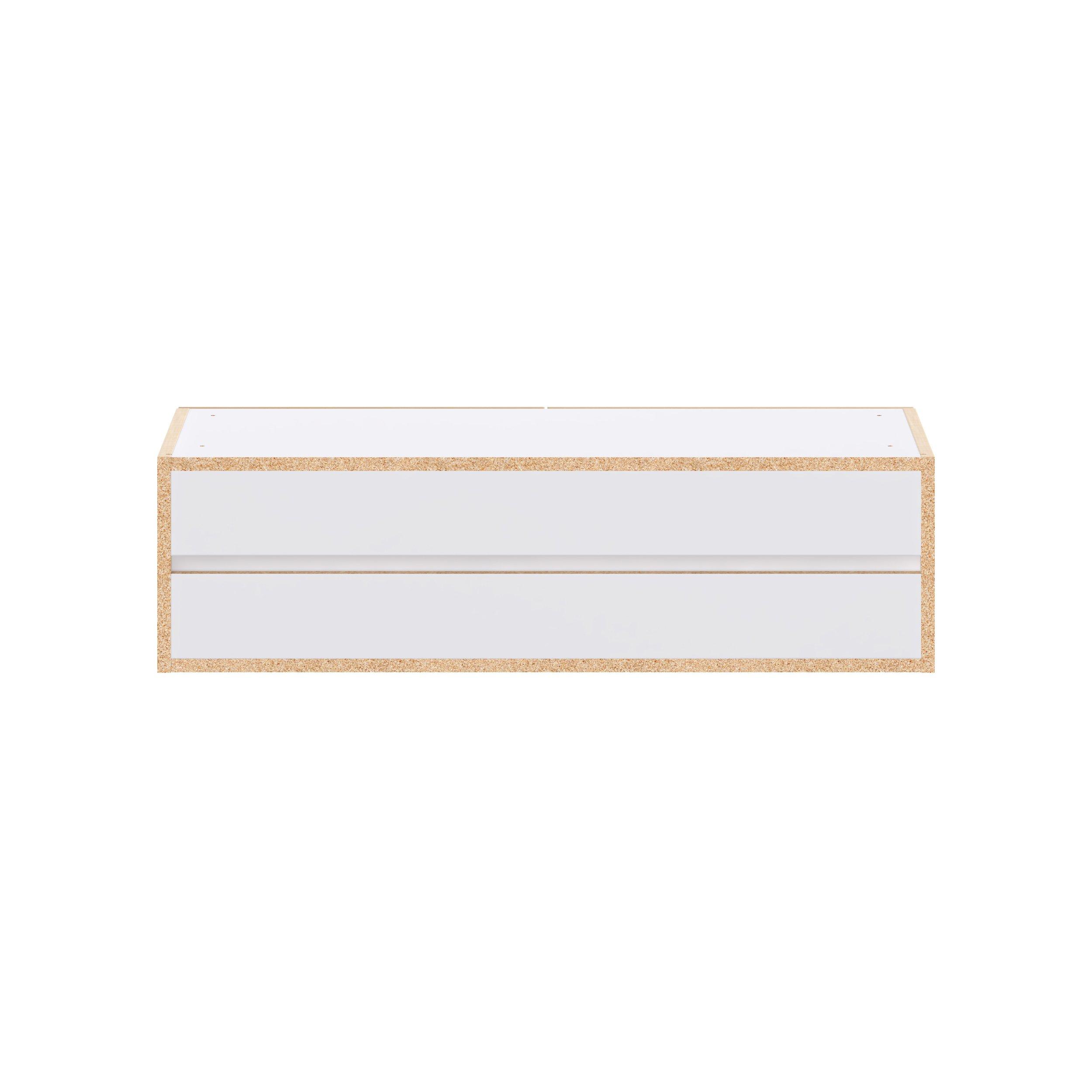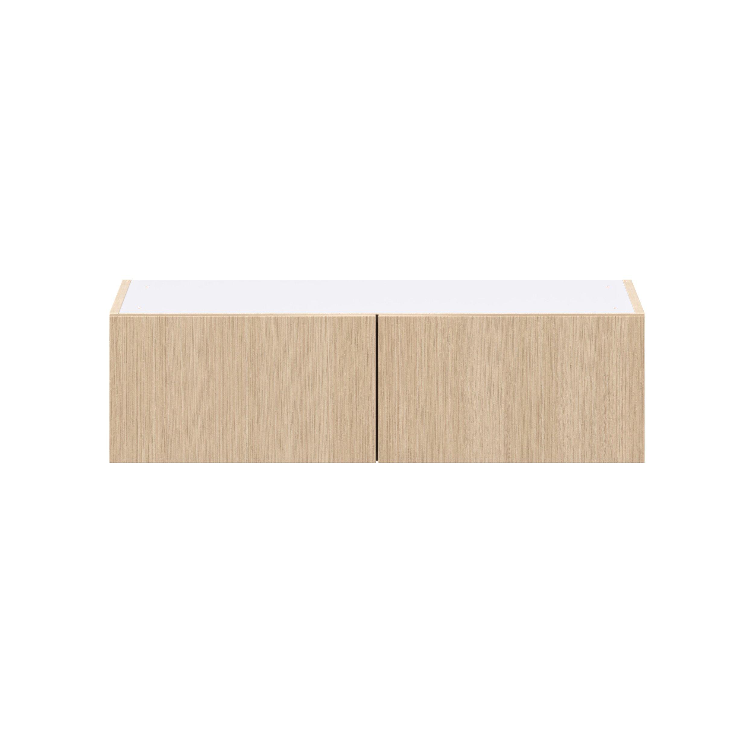 Elevate your project with the contemporary charm of Glenwood slab-style cabinets. Available in desert Mojavi oak and rich burnt walnut finishes, this collection captures the warmth and beauty of natural wood with the practicality of textured melamine. Crafted from one-piece MDF Studio Design Collection Glenwood 36 in. Mojavi Oak Bridge Wall Cabinet is designed to resist hairline cracks while the easy-to-clean finish stands up to stains and moisture. Featuring 5-piece doors and dovetail drawer joints, these cabinets offer durability and elegance. This collection combines style with everyday storage solutions.