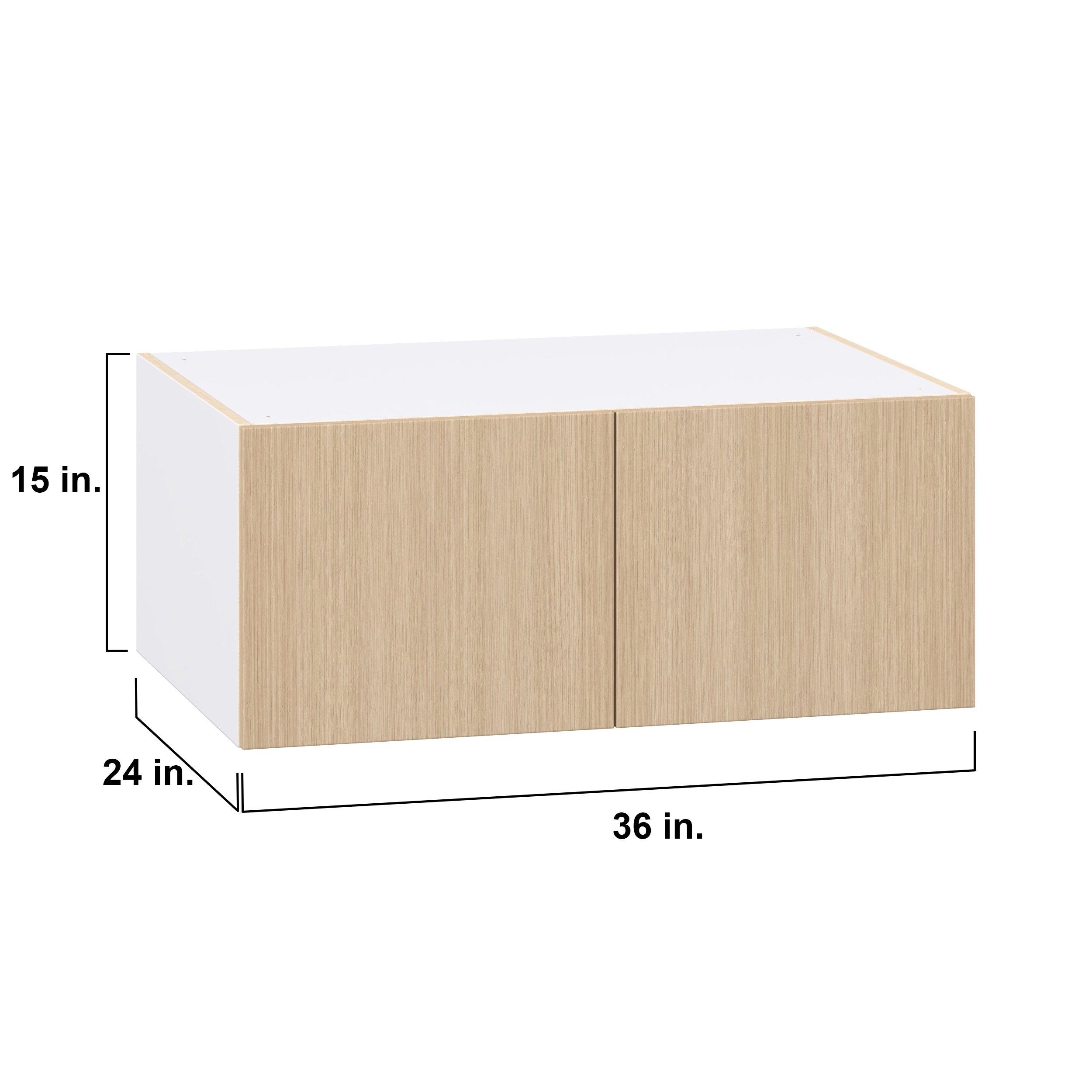 Elevate your project with the contemporary charm of Glenwood slab-style cabinets. Available in desert Mojavi oak and rich burnt walnut finishes, this collection captures the warmth and beauty of natural wood with the practicality of textured melamine. Crafted from one-piece MDF Studio Design Collection Glenwood 36 in. Mojavi Oak Bridge Wall Cabinet is designed to resist hairline cracks while the easy-to-clean finish stands up to stains and moisture. Featuring 5-piece doors and dovetail drawer joints, these cabinets offer durability and elegance. This collection combines style with everyday storage solutions.