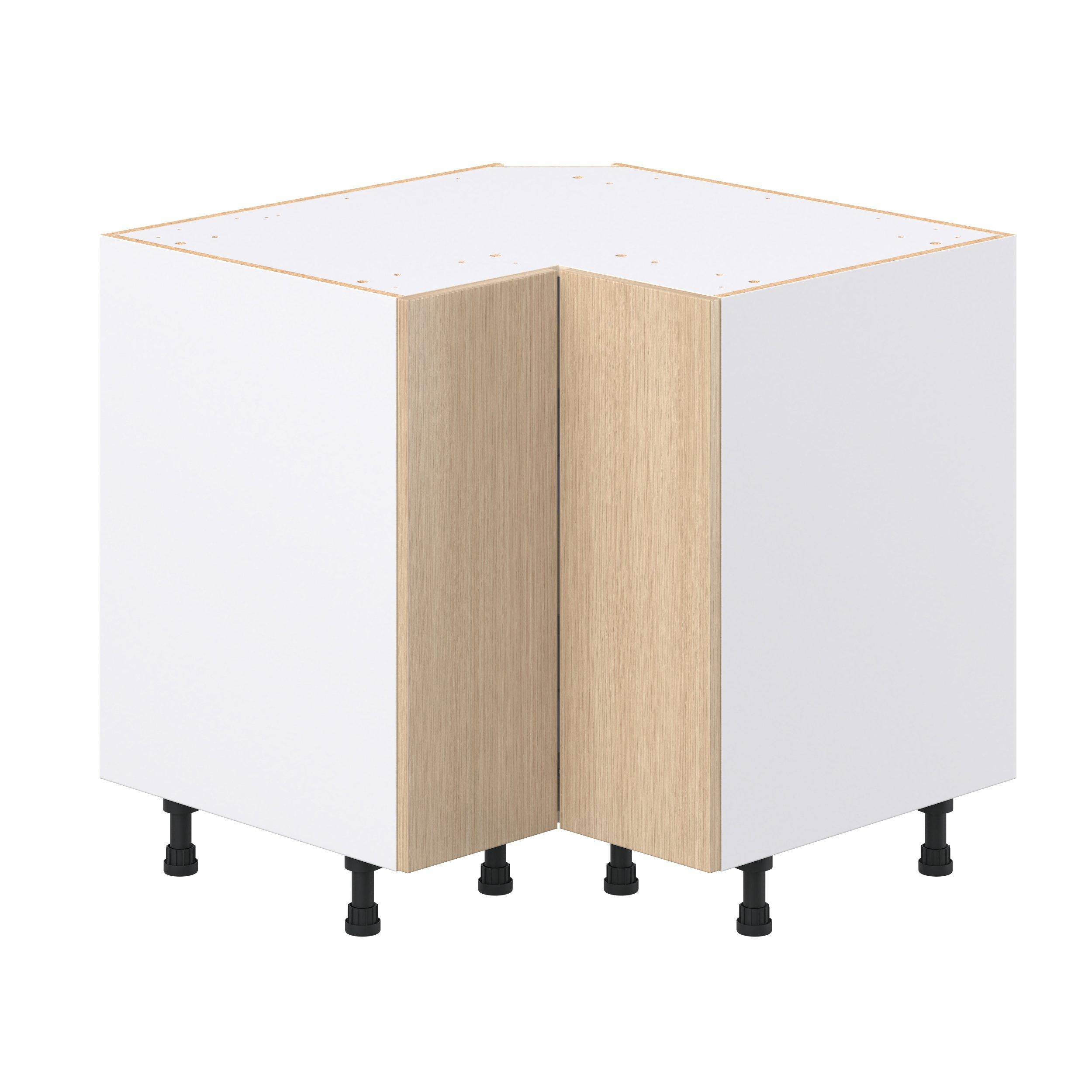 Elevate your project with the contemporary charm of Glenwood slab-style cabinets. Available in desert Mojavi oak and rich burnt walnut finishes, this collection captures the warmth and beauty of natural wood with the practicality of textured melamine. Crafted from one-piece MDF Studio Design Collection Glenwood 36 in. Mojavi Oak Lazy Susan Corner Base Cabinet is designed to resist hairline cracks while the easy-to-clean finish stands up to stains and moisture. Featuring 5-piece doors and dovetail drawer joints, these cabinets offer durability and elegance. This collection combines style with everyday storage solutions.
