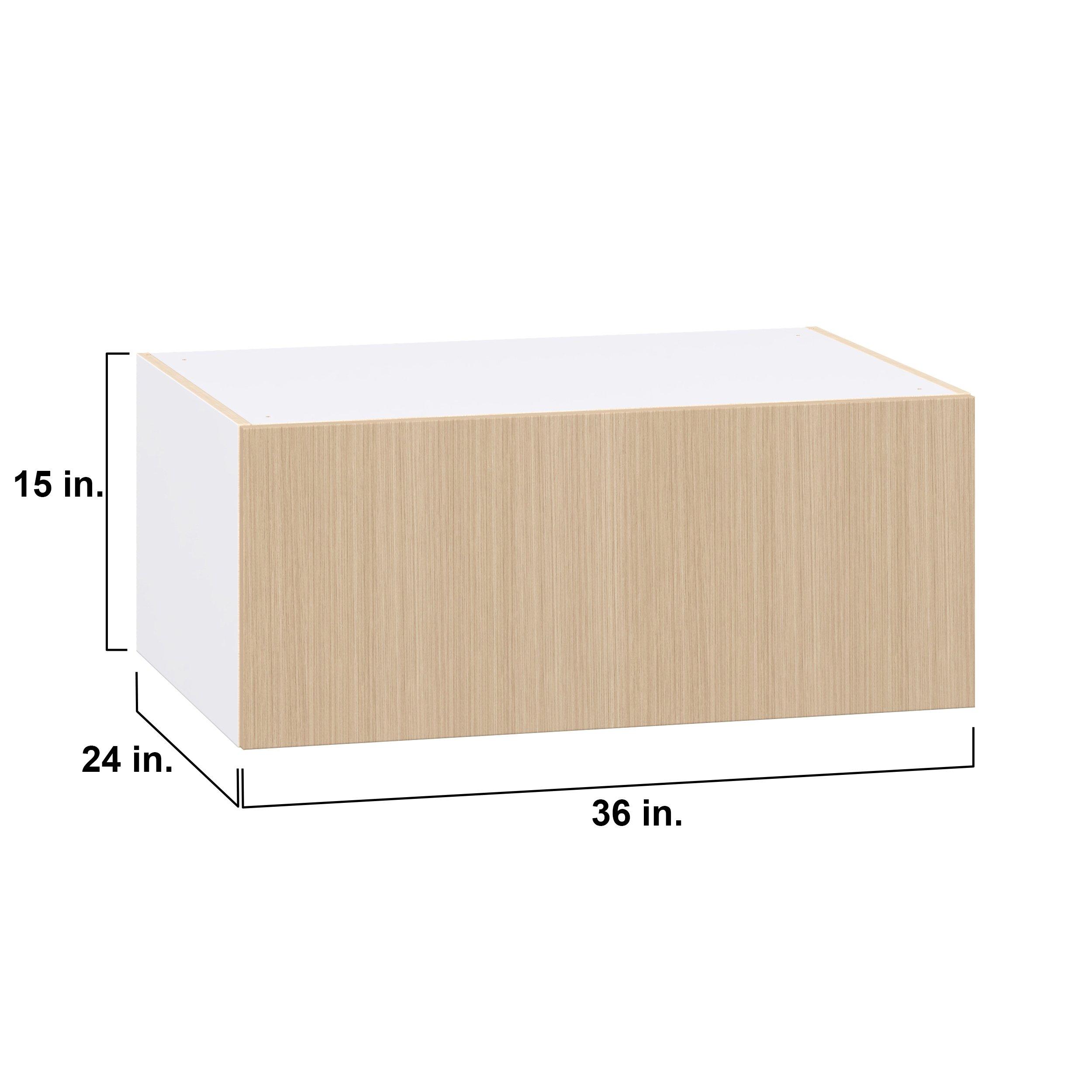 Elevate your project with the contemporary charm of Glenwood slab-style cabinets. Available in desert Mojavi oak and rich burnt walnut finishes, this collection captures the warmth and beauty of natural wood with the practicality of textured melamine. Crafted from one-piece MDF Studio Design Collection Glenwood 36 in. Mojavi Oak Lift Up Wall Cabinet is designed to resist hairline cracks while the easy-to-clean finish stands up to stains and moisture. Featuring 5-piece doors and dovetail drawer joints, these cabinets offer durability and elegance. This collection combines style with everyday storage solutions.