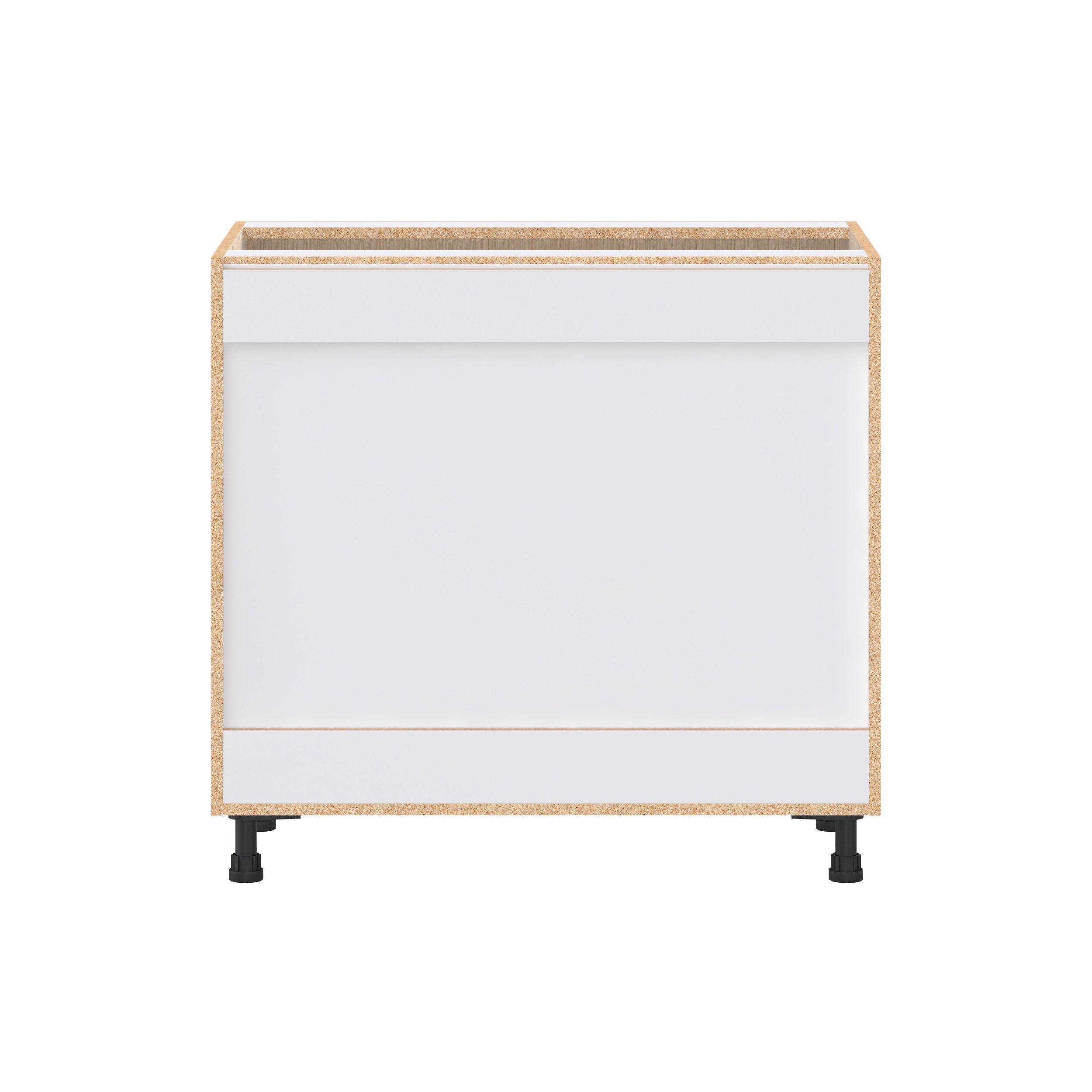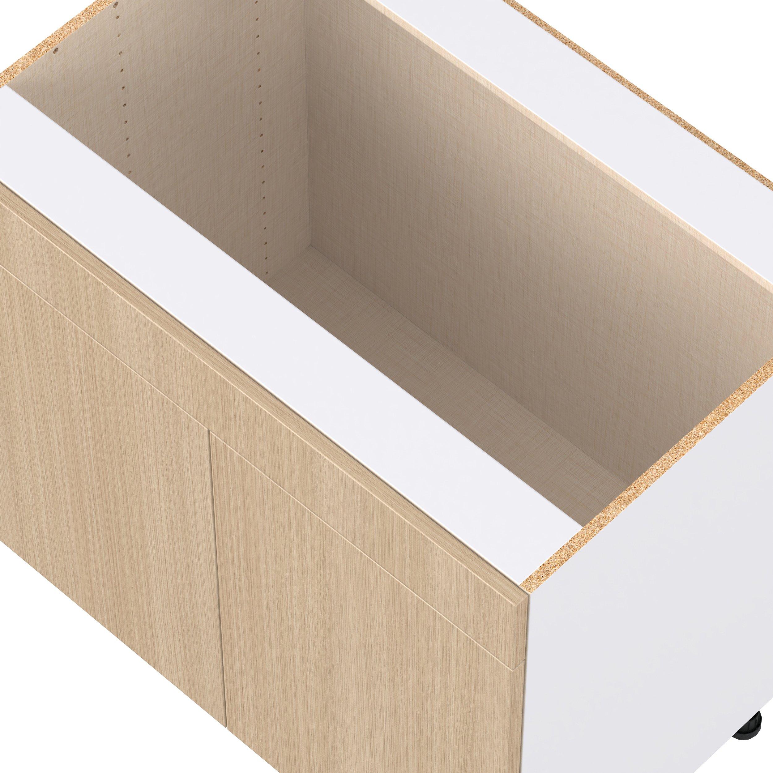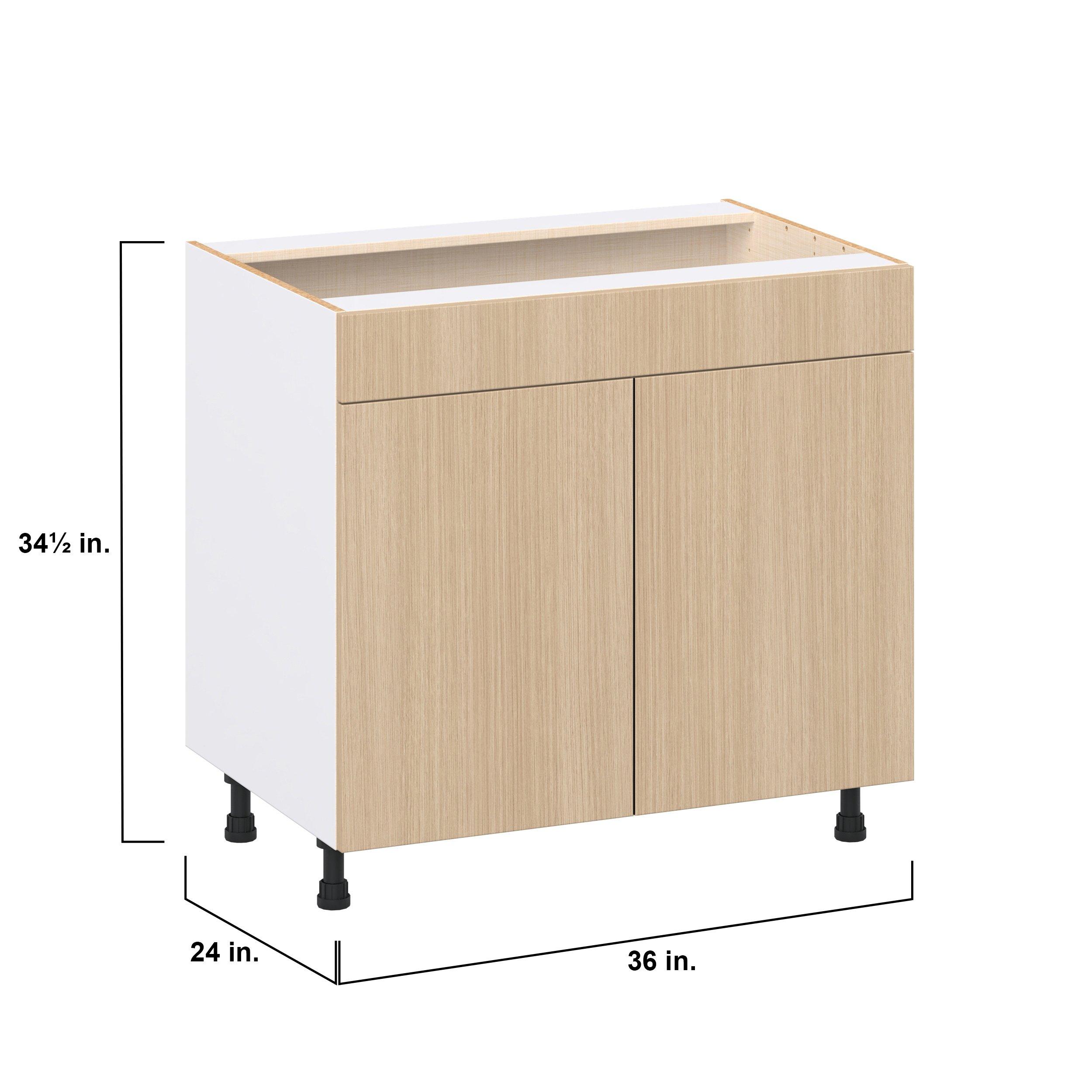 Elevate your project with the contemporary charm of Glenwood slab-style cabinets. Available in desert Mojavi oak and rich burnt walnut finishes, this collection captures the warmth and beauty of natural wood with the practicality of textured melamine. Crafted from one-piece MDF Studio Design Collection Glenwood 36 in. Mojavi Oak Sink Base Cabinet with False Front is designed to resist hairline cracks while the easy-to-clean finish stands up to stains and moisture. Featuring 5-piece doors and dovetail drawer joints, these cabinets offer durability and elegance. This collection combines style with everyday storage solutions.