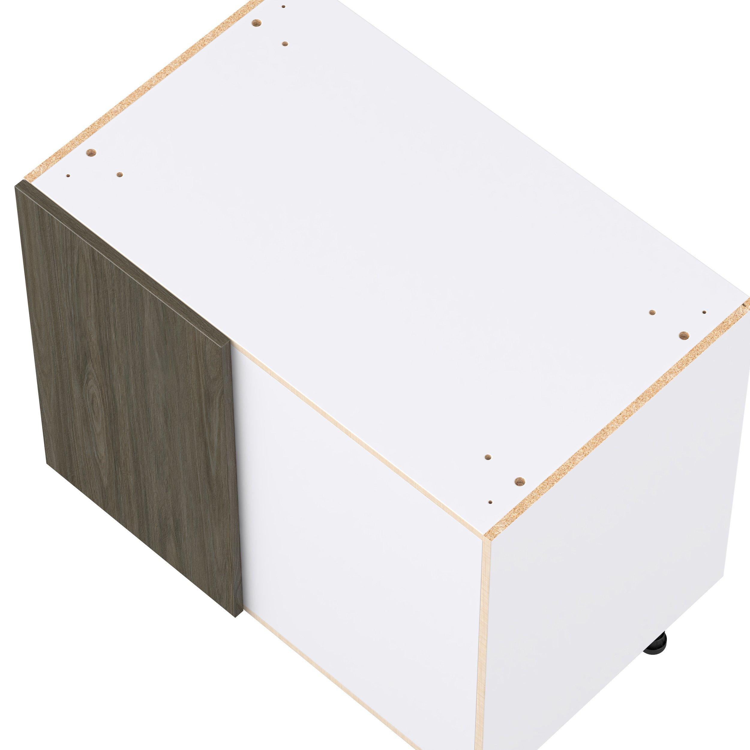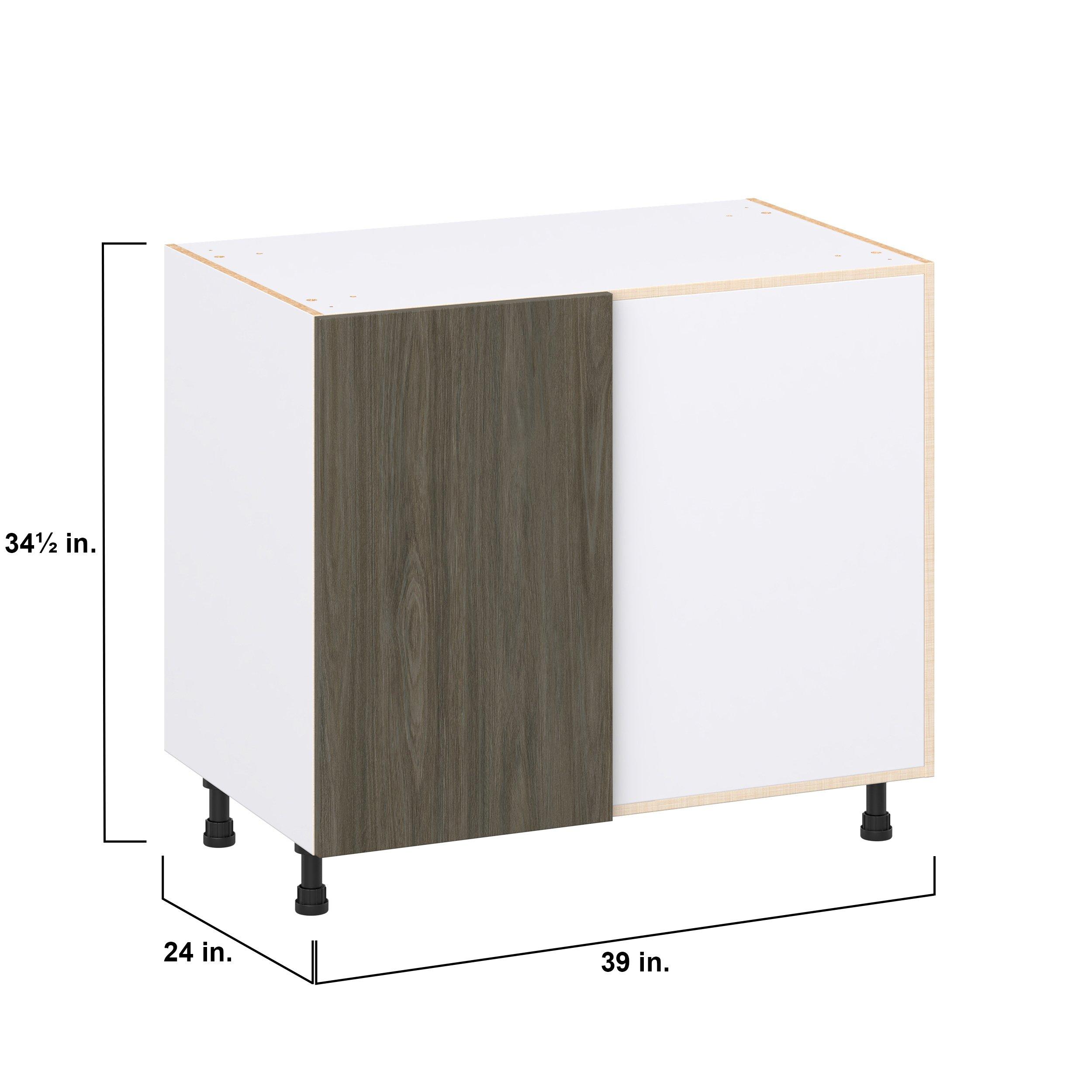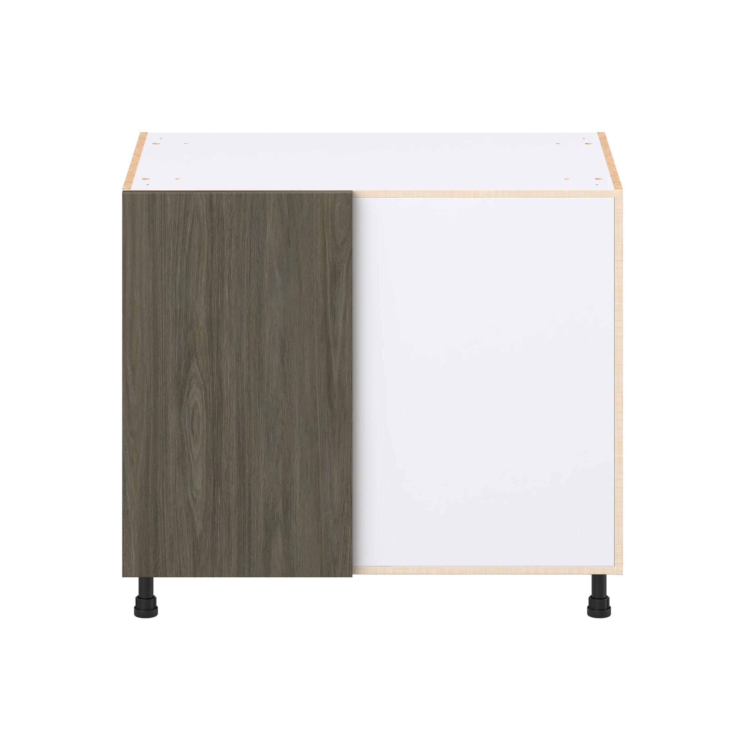 Elevate your project with the contemporary charm of Glenwood slab-style cabinets. Available in desert Mojavi oak and rich burnt walnut finishes, this collection captures the warmth and beauty of natural wood with the practicality of textured melamine. Crafted from one-piece MDF Studio Design Collection Glenwood 39 in. Burnt Walnut Lemans Swing Out Blind Corner Base Cabinet is designed to resist hairline cracks while the easy-to-clean finish stands up to stains and moisture. Featuring 5-piece doors and dovetail drawer joints, these cabinets offer durability and elegance. This collection combines style with everyday storage solutions.