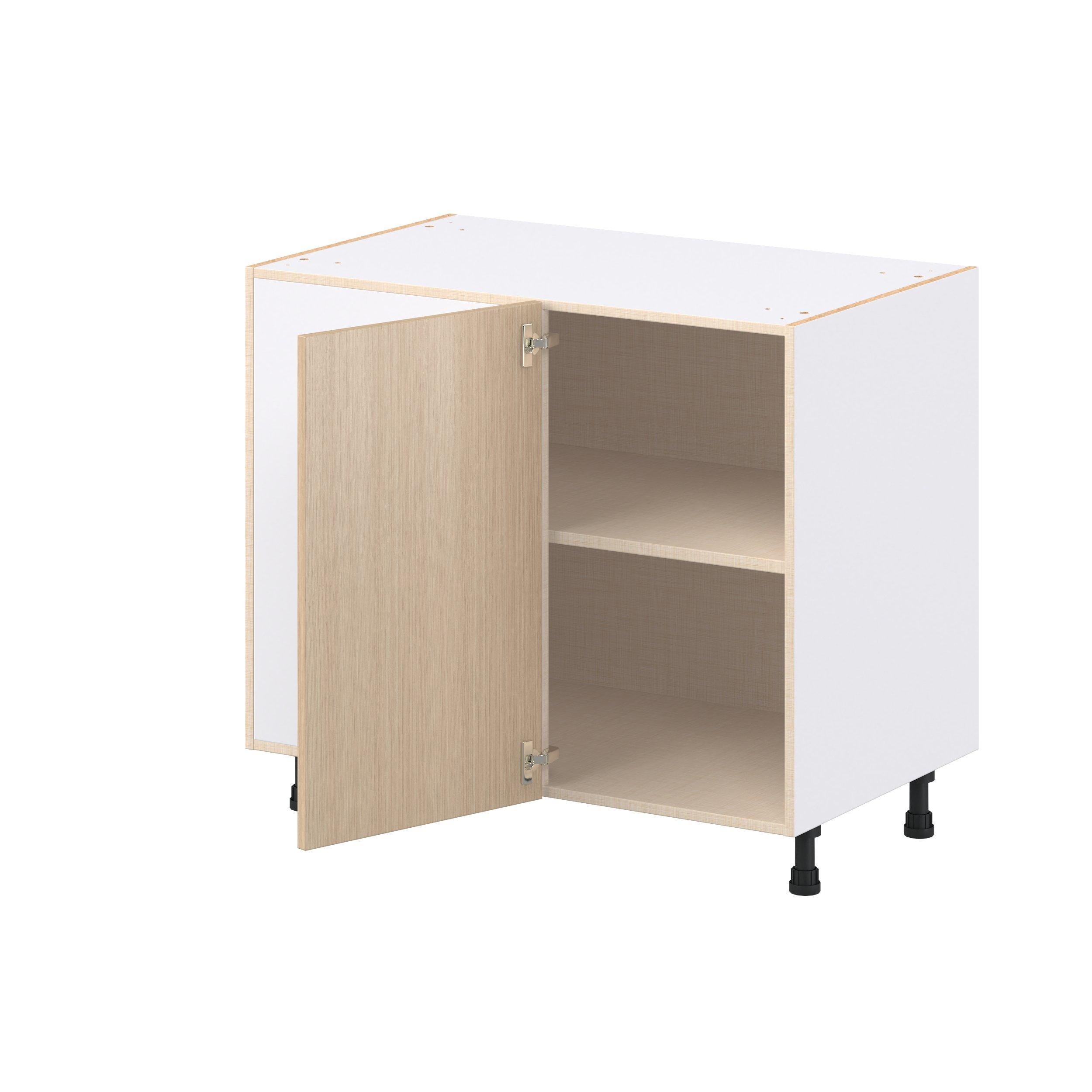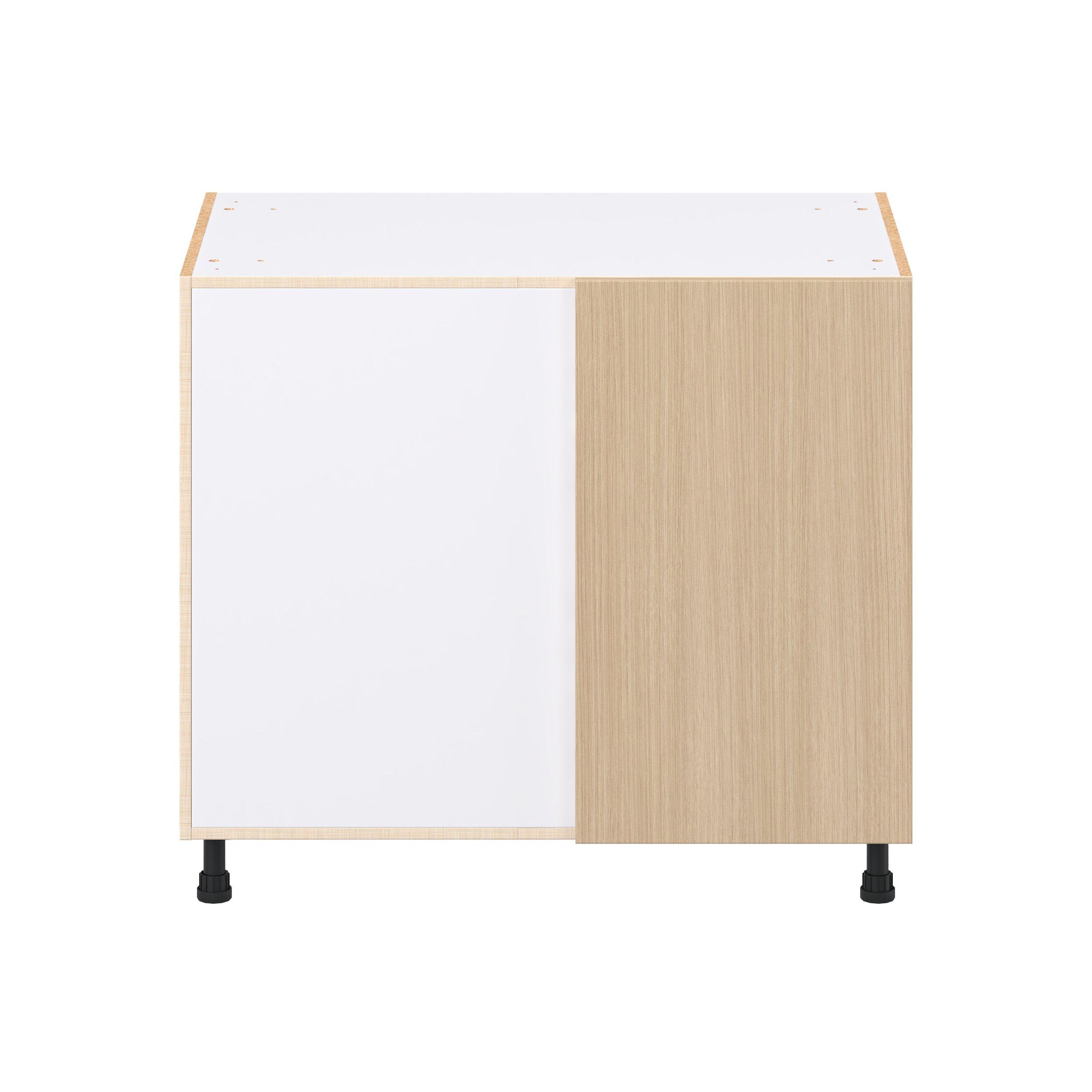 Elevate your project with the contemporary charm of Glenwood slab-style cabinets. Available in desert Mojavi oak and rich burnt walnut finishes, this collection captures the warmth and beauty of natural wood with the practicality of textured melamine. Crafted from one-piece MDF Studio Design Collection Glenwood 39 in. Mojavi Oak Blind Corner Base Cabinet is designed to resist hairline cracks while the easy-to-clean finish stands up to stains and moisture. Featuring 5-piece doors and dovetail drawer joints, these cabinets offer durability and elegance. This collection combines style with everyday storage solutions.