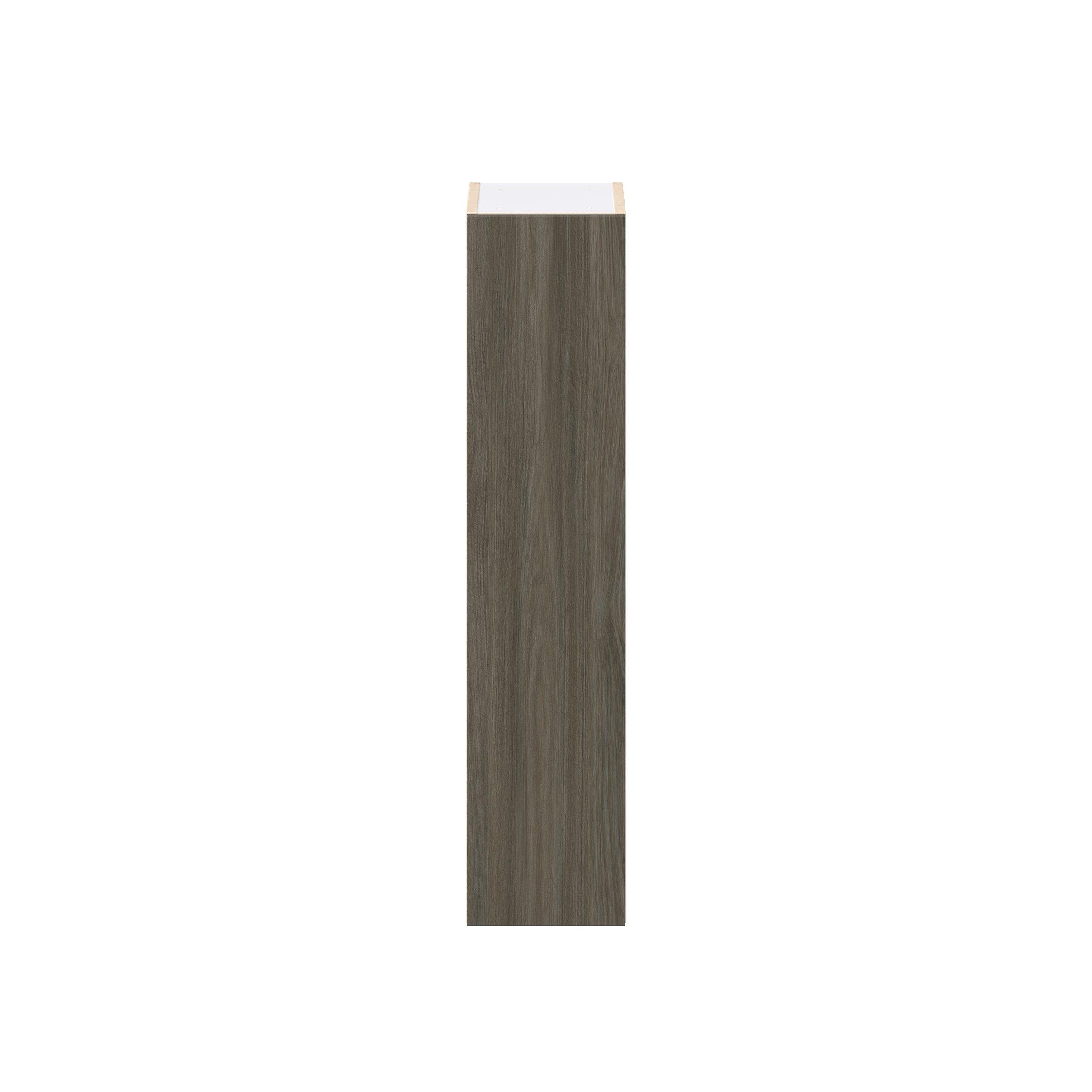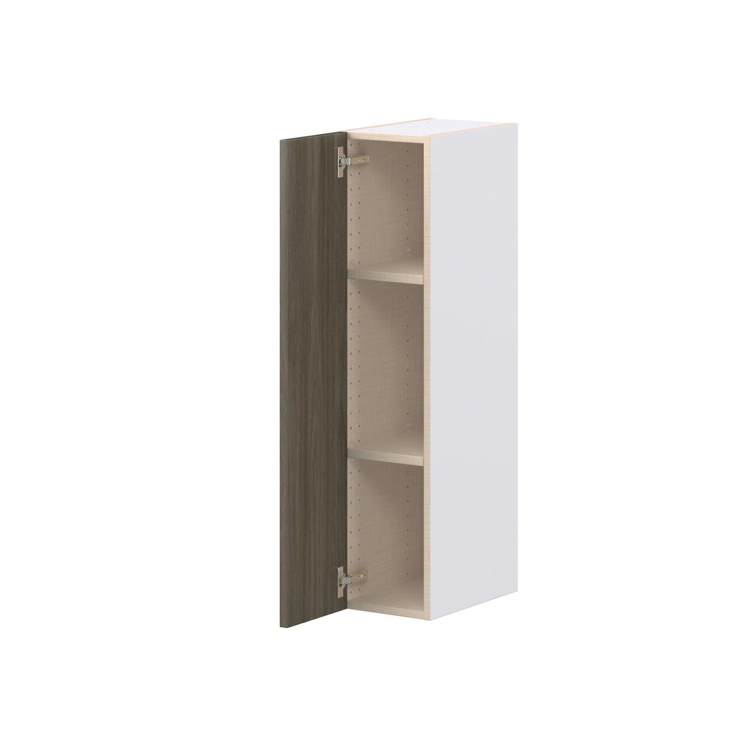 Elevate your project with the contemporary charm of Glenwood slab-style cabinets. Available in desert Mojavi oak and rich burnt walnut finishes, this collection captures the warmth and beauty of natural wood with the practicality of textured melamine. Crafted from one-piece MDF Studio Design Collection Glenwood 9 in. Burnt Walnut Door Wall Cabinet is designed to resist hairline cracks while the easy-to-clean finish stands up to stains and moisture. Featuring 5-piece doors and dovetail drawer joints, these cabinets offer durability and elegance. This collection combines style with everyday storage solutions.