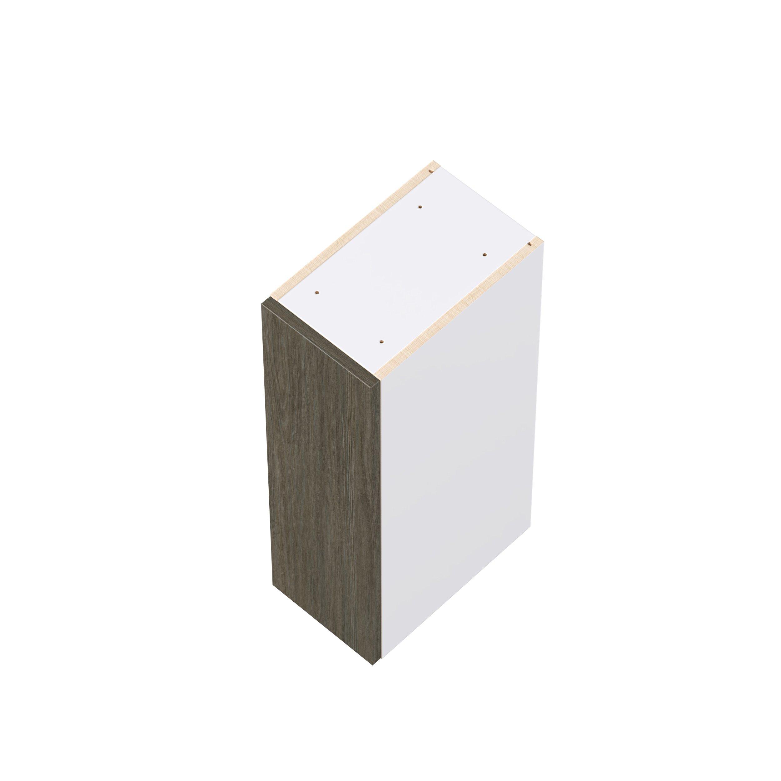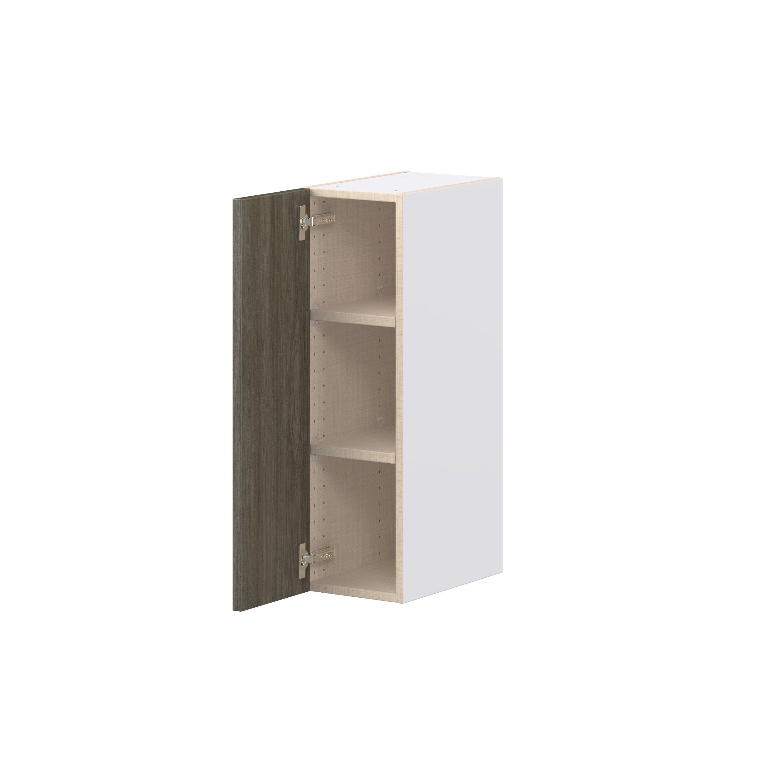 Elevate your project with the contemporary charm of Glenwood slab-style cabinets. Available in desert Mojavi oak and rich burnt walnut finishes, this collection captures the warmth and beauty of natural wood with the practicality of textured melamine. Crafted from one-piece MDF Studio Design Collection Glenwood 9 in. Burnt Walnut Door Wall Cabinet is designed to resist hairline cracks while the easy-to-clean finish stands up to stains and moisture. Featuring 5-piece doors and dovetail drawer joints, these cabinets offer durability and elegance. This collection combines style with everyday storage solutions.
