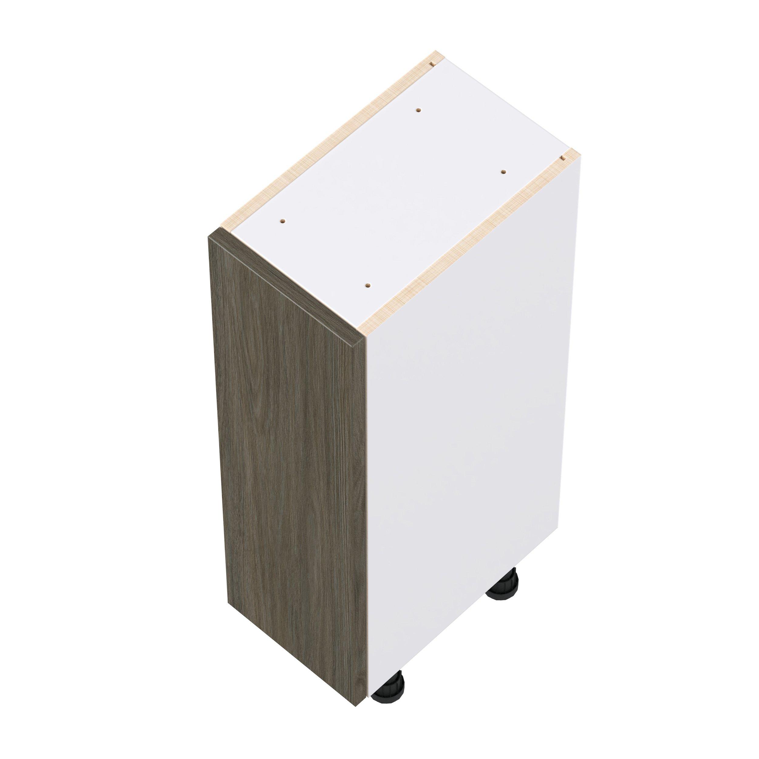 Elevate your project with the contemporary charm of Glenwood slab-style cabinets. Available in desert Mojavi oak and rich burnt walnut finishes, this collection captures the warmth and beauty of natural wood with the practicality of textured melamine. Crafted from one-piece MDF Studio Design Collection Glenwood 9 in. Burnt Walnut Shallow Base Cabinet is designed to resist hairline cracks while the easy-to-clean finish stands up to stains and moisture. Featuring 5-piece doors and dovetail drawer joints, these cabinets offer durability and elegance. This collection combines style with everyday storage solutions.