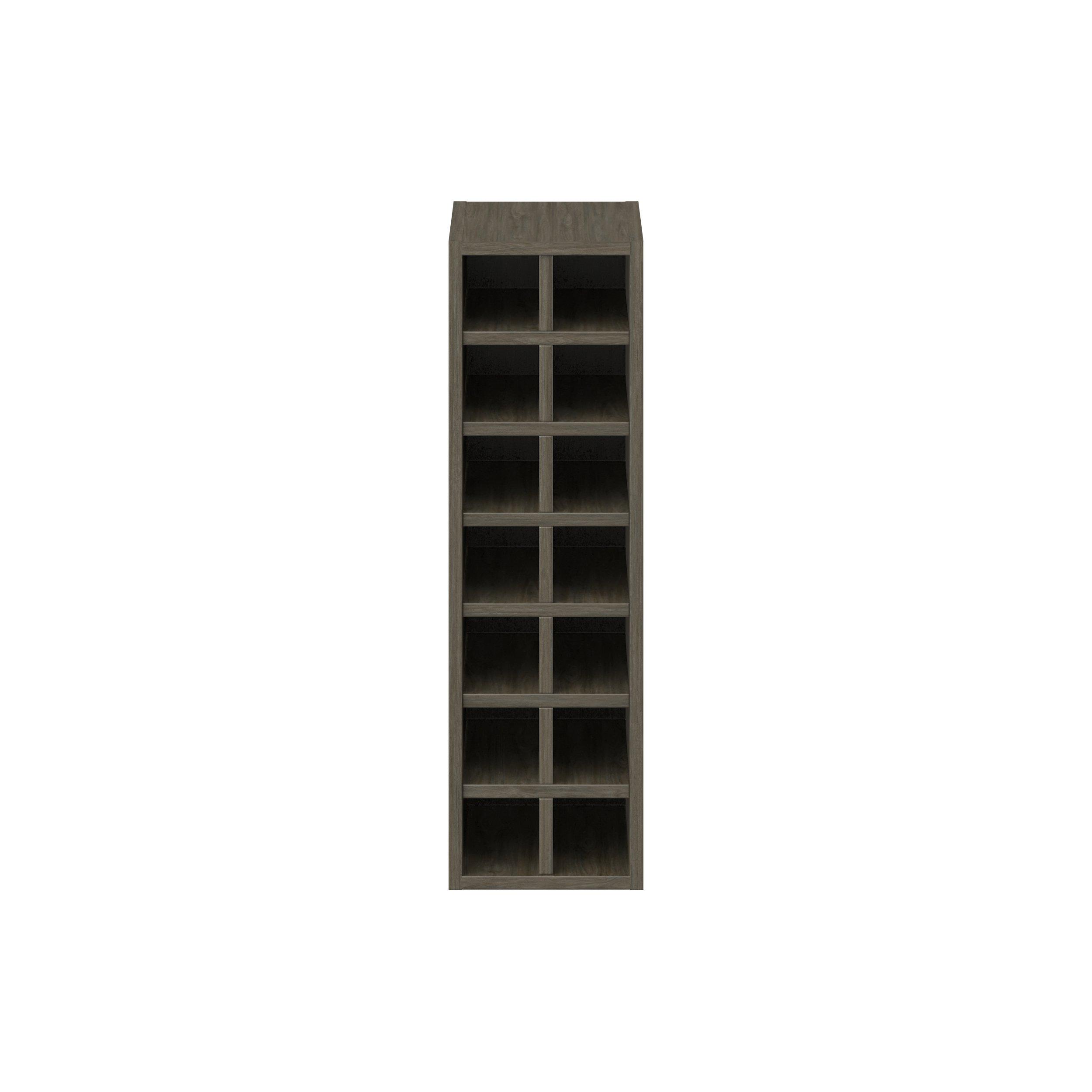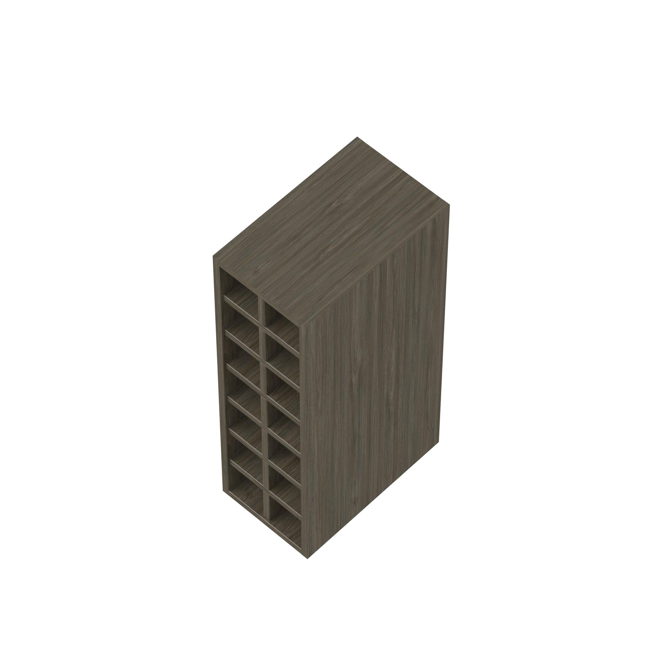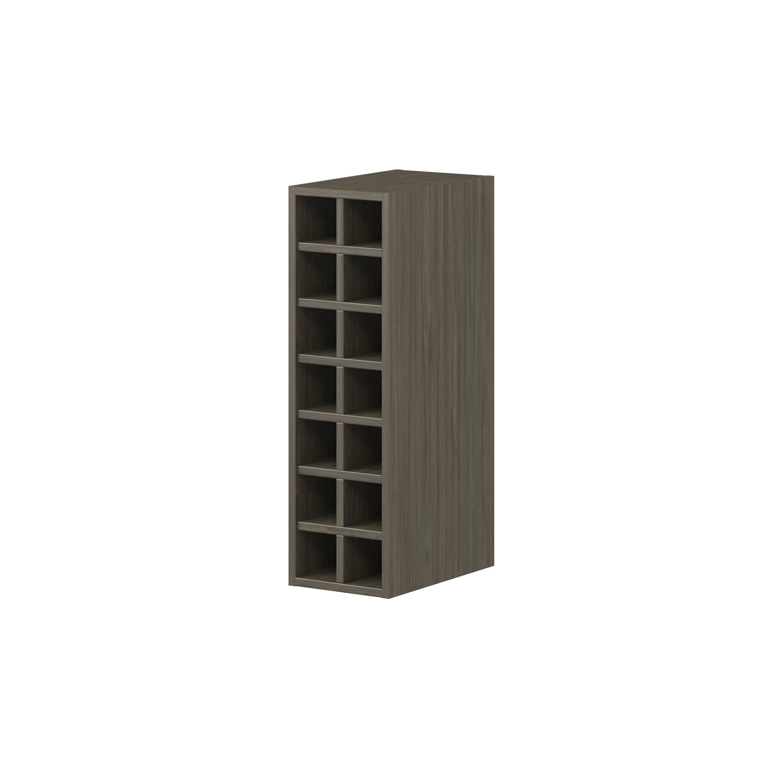 Elevate your project with the contemporary charm of Glenwood slab-style cabinets. Available in desert Mojavi oak and rich burnt walnut finishes, this collection captures the warmth and beauty of natural wood with the practicality of textured melamine. Crafted from one-piece MDF Studio Design Collection Glenwood 9 in. Burnt Walnut Wine Wall Cabinet is designed to resist hairline cracks while the easy-to-clean finish stands up to stains and moisture. Featuring 5-piece doors and dovetail drawer joints, these cabinets offer durability and elegance. This collection combines style with everyday storage solutions.