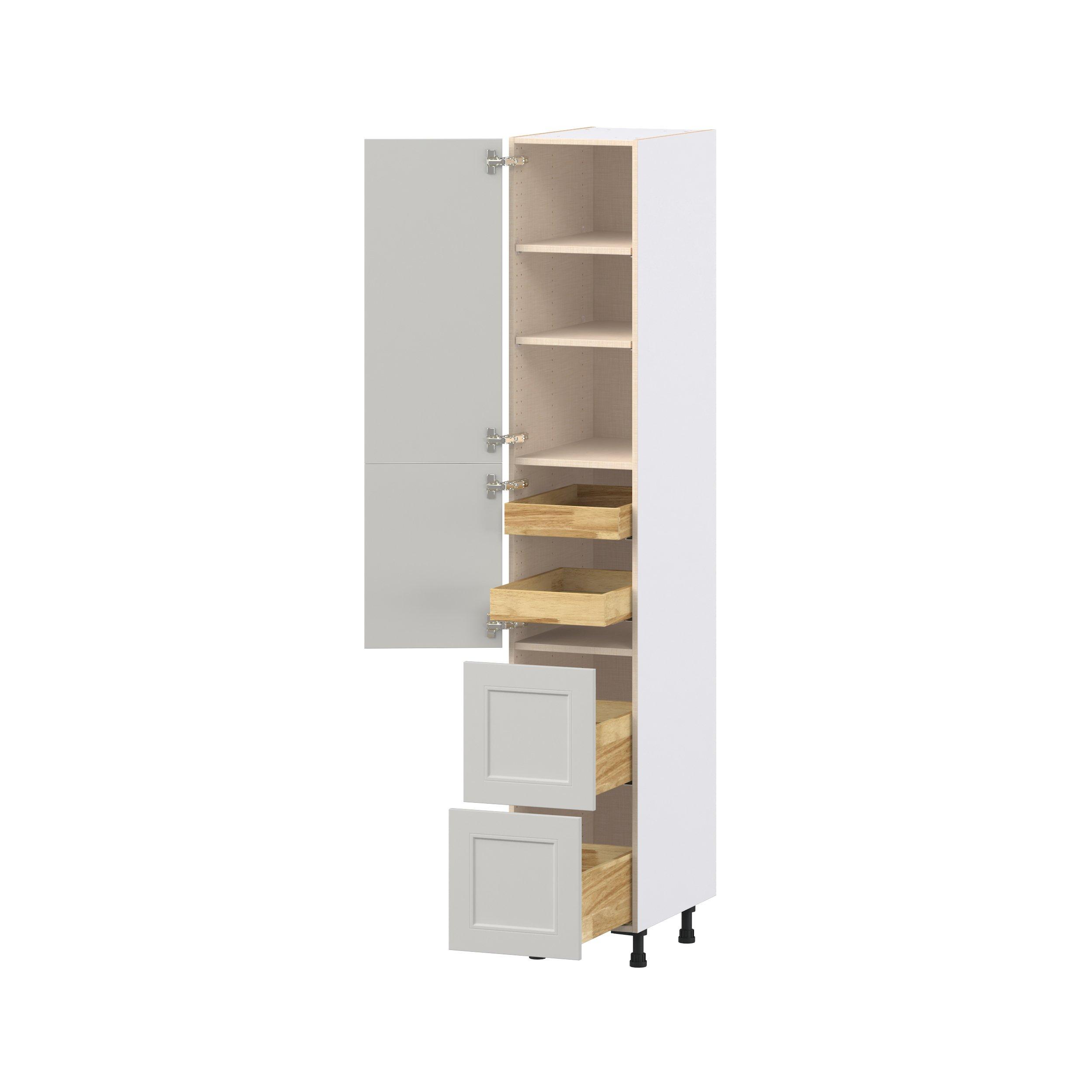 Treat yourself to the refined charm of Lenox shaker-inspired cabinets. Featuring a high-quality premium painted light gray finish, this collection offers sophistication that’s truly built to endure. Crafted from one-piece MDF Studio Design Collection Lenox 15 in. Painted Light Gray Door and Drawer Pantry Cabinet with Inner Pull-Out is designed to resist hairline cracks while the easy-to-clean finish stands up to stains and moisture. Featuring 5-piece doors and dovetail drawer joints, these cabinets offer durability and elegance. This collection combines style with everyday storage solutions.