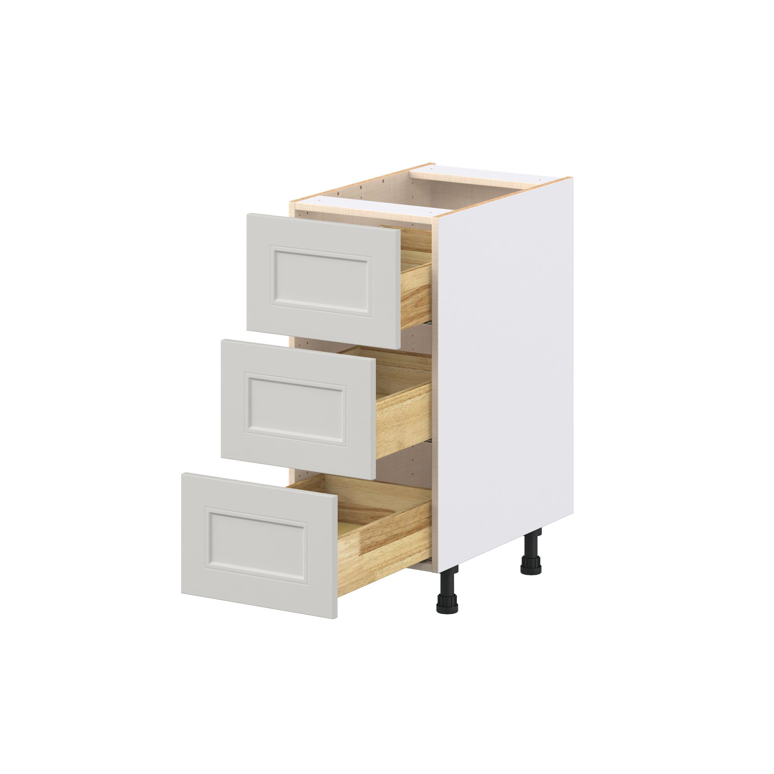 Treat yourself to the refined charm of Lenox shaker-inspired cabinets. Featuring a high-quality premium painted light gray finish, this collection offers sophistication that’s truly built to endure. Crafted from one-piece MDF Studio Design Collection Lenox 15 in. Painted Light Gray Drawer Base Cabinet is designed to resist hairline cracks while the easy-to-clean finish stands up to stains and moisture. Featuring 5-piece doors and dovetail drawer joints, these cabinets offer durability and elegance. This collection combines style with everyday storage solutions.