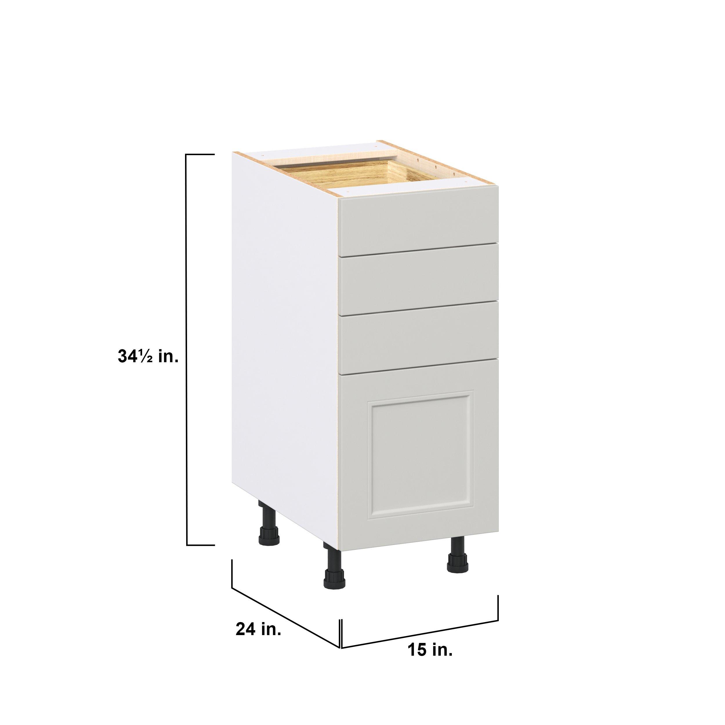 Treat yourself to the refined charm of Lenox shaker-inspired cabinets. Featuring a high-quality premium painted light gray finish, this collection offers sophistication that’s truly built to endure. Crafted from one-piece MDF Studio Design Collection Lenox 15 in. Painted Light Gray Drawer Base Cabinet is designed to resist hairline cracks while the easy-to-clean finish stands up to stains and moisture. Featuring 5-piece doors and dovetail drawer joints, these cabinets offer durability and elegance. This collection combines style with everyday storage solutions.