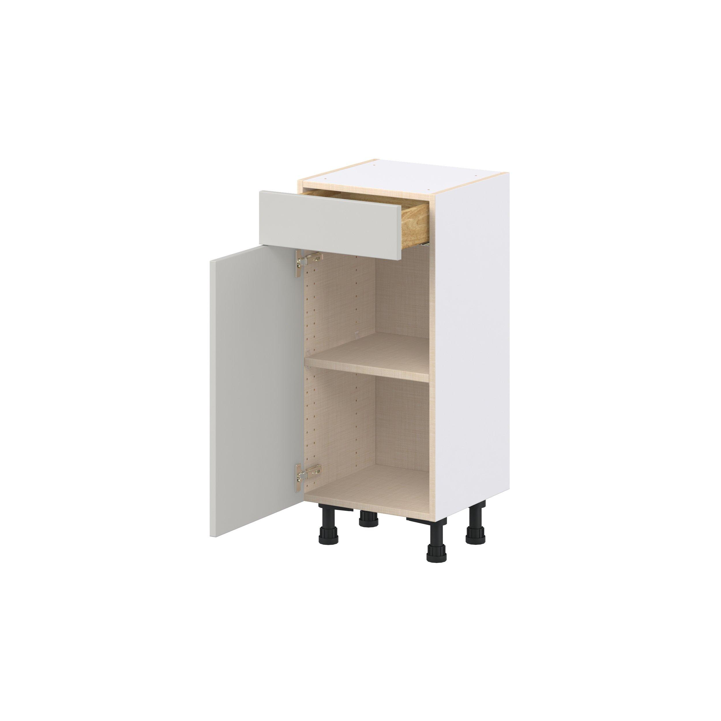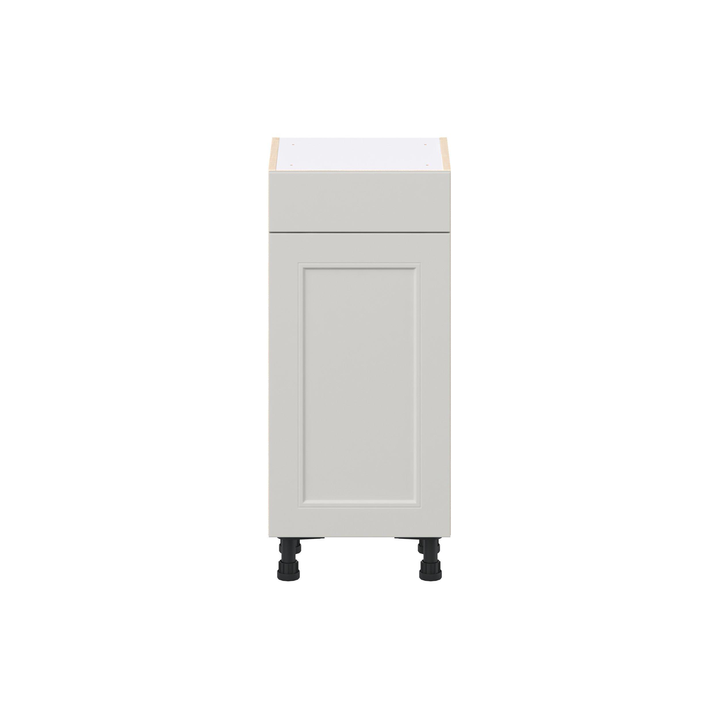 Treat yourself to the refined charm of Lenox shaker-inspired cabinets. Featuring a high-quality premium painted light gray finish, this collection offers sophistication that’s truly built to endure. Crafted from one-piece MDF Studio Design Collection Lenox 15 in. Painted Light Gray Shallow Base Cabinet is designed to resist hairline cracks while the easy-to-clean finish stands up to stains and moisture. Featuring 5-piece doors and dovetail drawer joints, these cabinets offer durability and elegance. This collection combines style with everyday storage solutions.