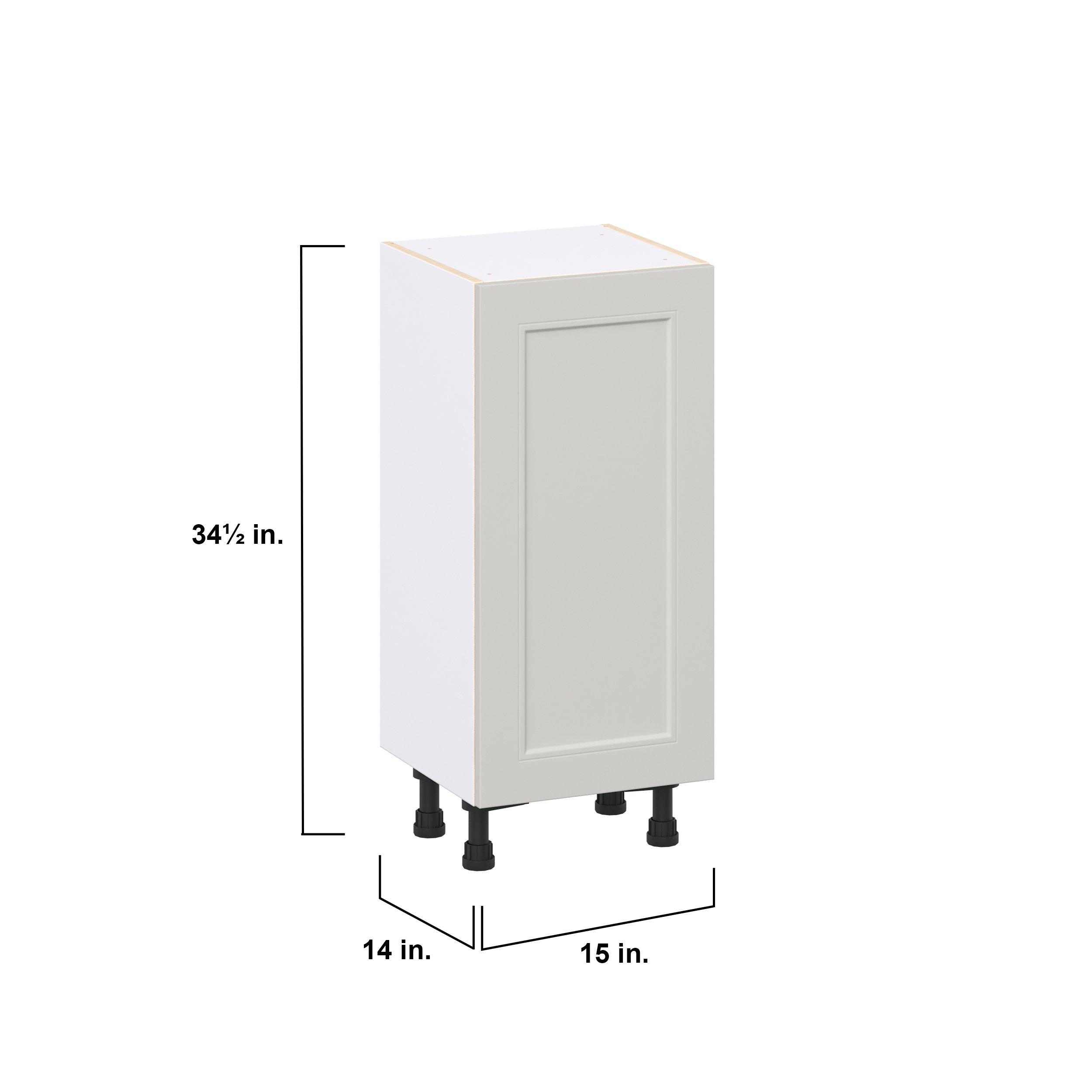 Treat yourself to the refined charm of Lenox shaker-inspired cabinets. Featuring a high-quality premium painted light gray finish, this collection offers sophistication that’s truly built to endure. Crafted from one-piece MDF Studio Design Collection Lenox 15 in. Painted Light Gray Shallow Base Cabinet with Inner Pull-Out Drawer is designed to resist hairline cracks while the easy-to-clean finish stands up to stains and moisture. Featuring 5-piece doors and dovetail drawer joints, these cabinets offer durability and elegance. This collection combines style with everyday storage solutions.