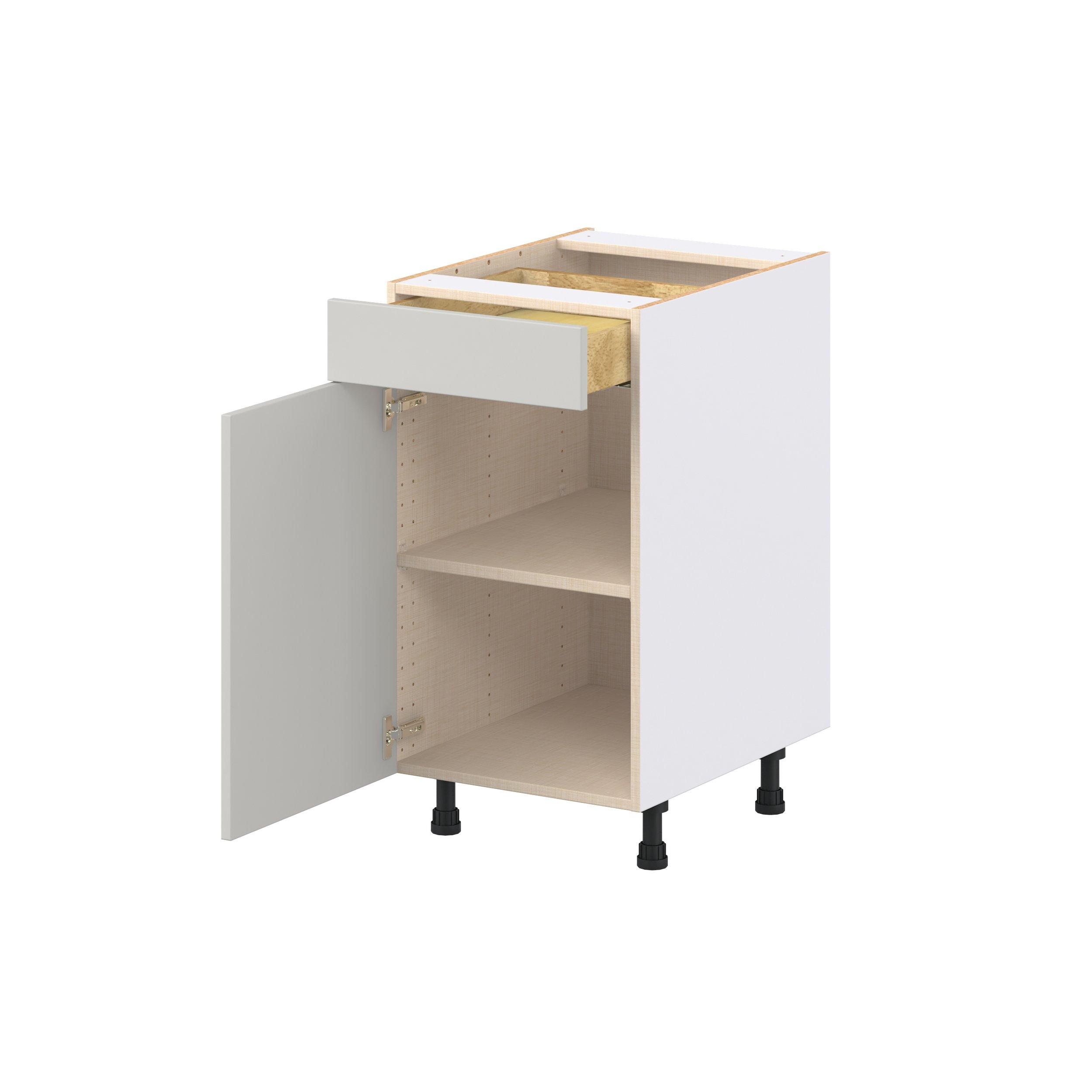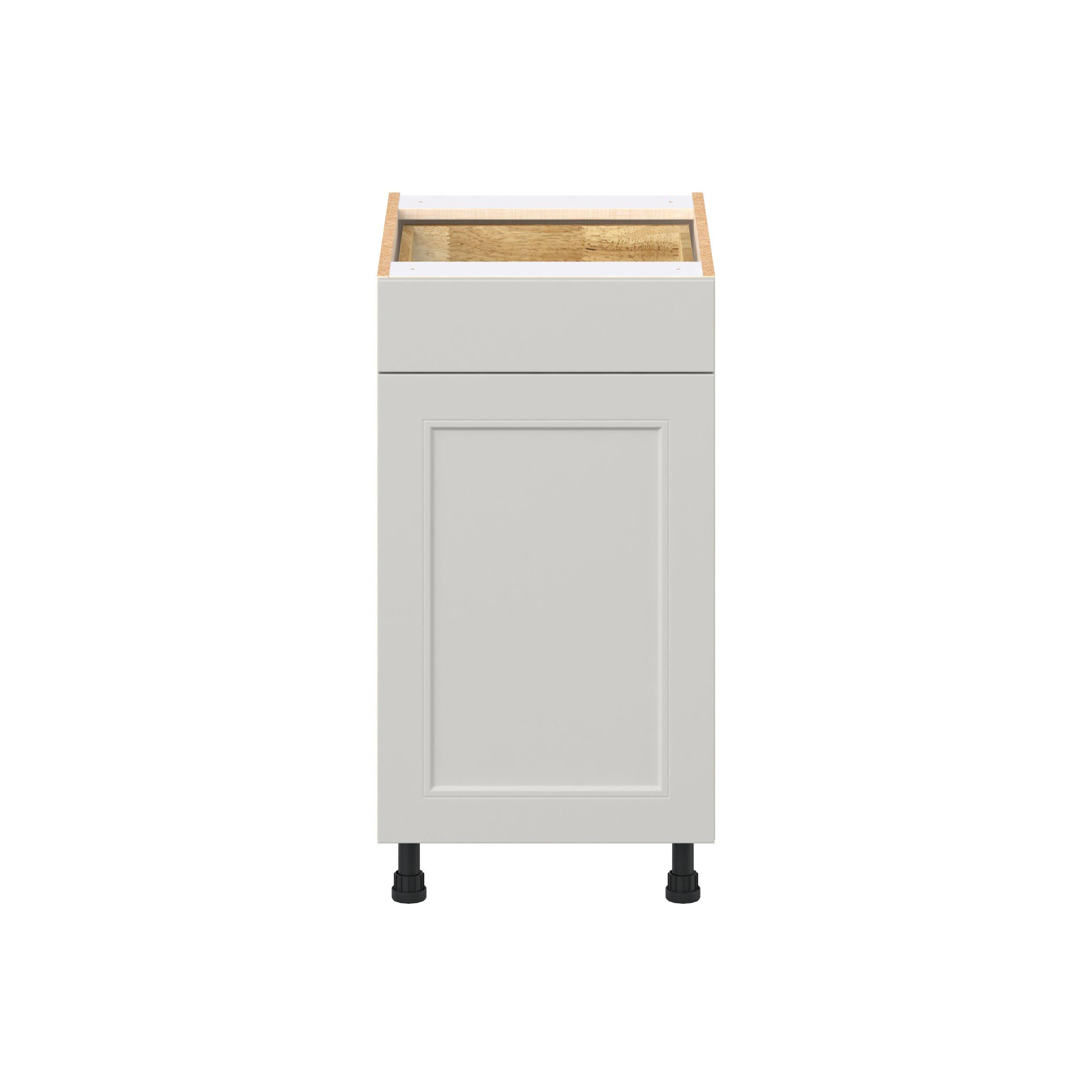 Treat yourself to the refined charm of Lenox shaker-inspired cabinets. Featuring a high-quality premium painted light gray finish, this collection offers sophistication that’s truly built to endure. Crafted from one-piece MDF Studio Design Collection Lenox 18 in. Painted Light Gray Door and Drawer Base Cabinet is designed to resist hairline cracks while the easy-to-clean finish stands up to stains and moisture. Featuring 5-piece doors and dovetail drawer joints, these cabinets offer durability and elegance. This collection combines style with everyday storage solutions.