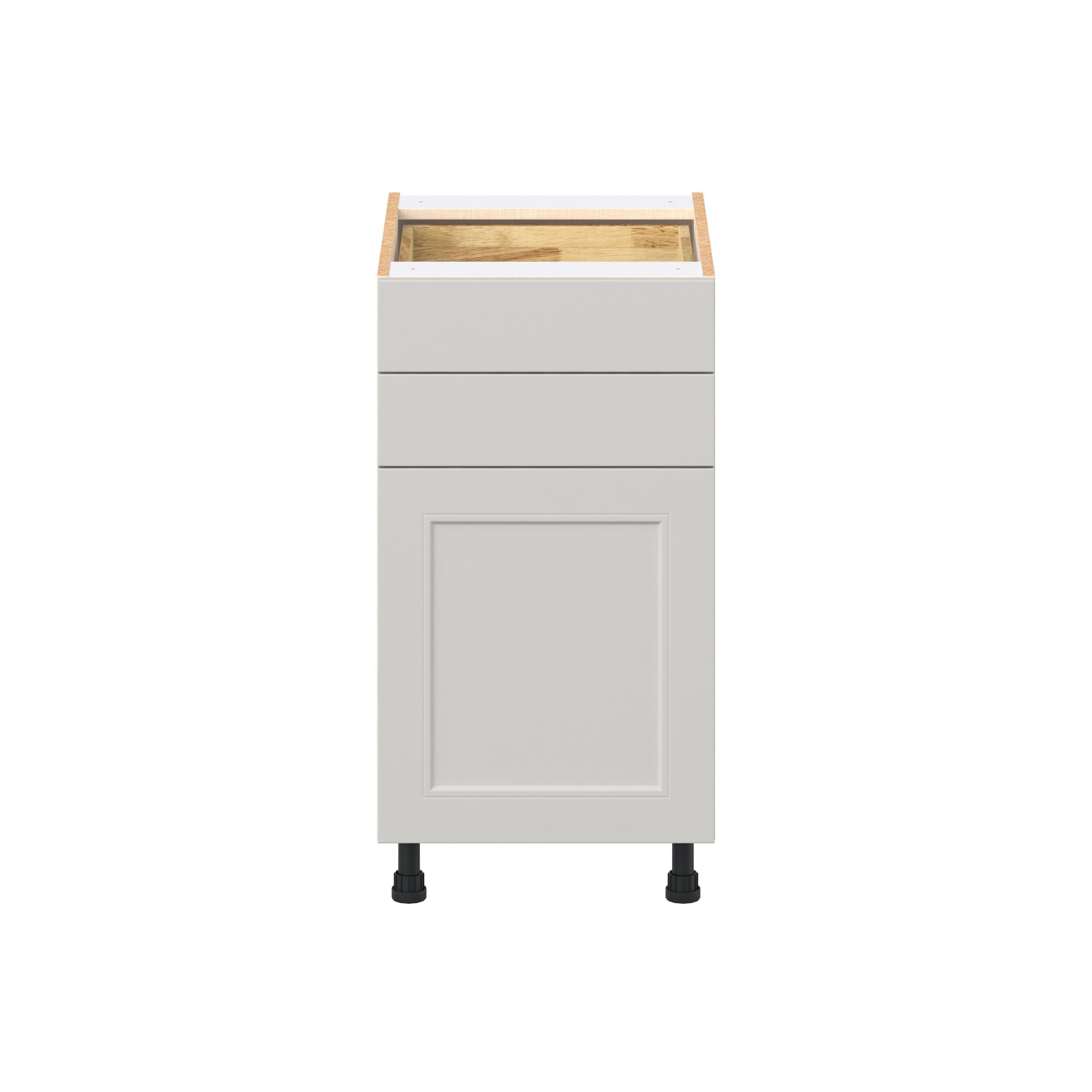 Treat yourself to the refined charm of Lenox shaker-inspired cabinets. Featuring a high-quality premium painted light gray finish, this collection offers sophistication that’s truly built to endure. Crafted from one-piece MDF Studio Design Collection Lenox 18 in. Painted Light Gray Door and Drawer Base Cabinet is designed to resist hairline cracks while the easy-to-clean finish stands up to stains and moisture. Featuring 5-piece doors and dovetail drawer joints, these cabinets offer durability and elegance. This collection combines style with everyday storage solutions.
