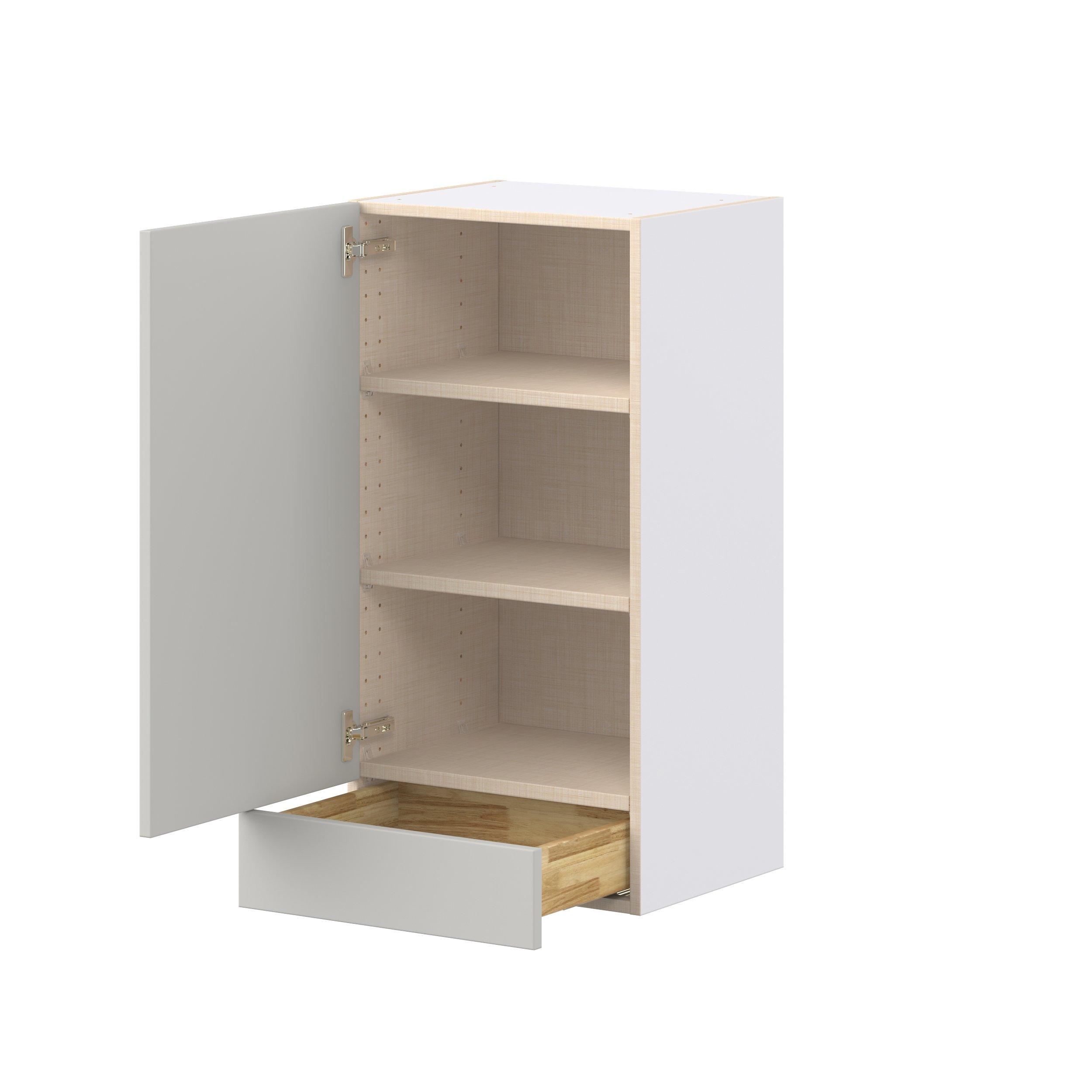 Treat yourself to the refined charm of Lenox shaker-inspired cabinets. Featuring a high-quality premium painted light gray finish, this collection offers sophistication that’s truly built to endure. Crafted from one-piece MDF Studio Design Collection Lenox 18 in. Painted Light Gray Door and Drawer Wall Cabinet is designed to resist hairline cracks while the easy-to-clean finish stands up to stains and moisture. Featuring 5-piece doors and dovetail drawer joints, these cabinets offer durability and elegance. This collection combines style with everyday storage solutions.