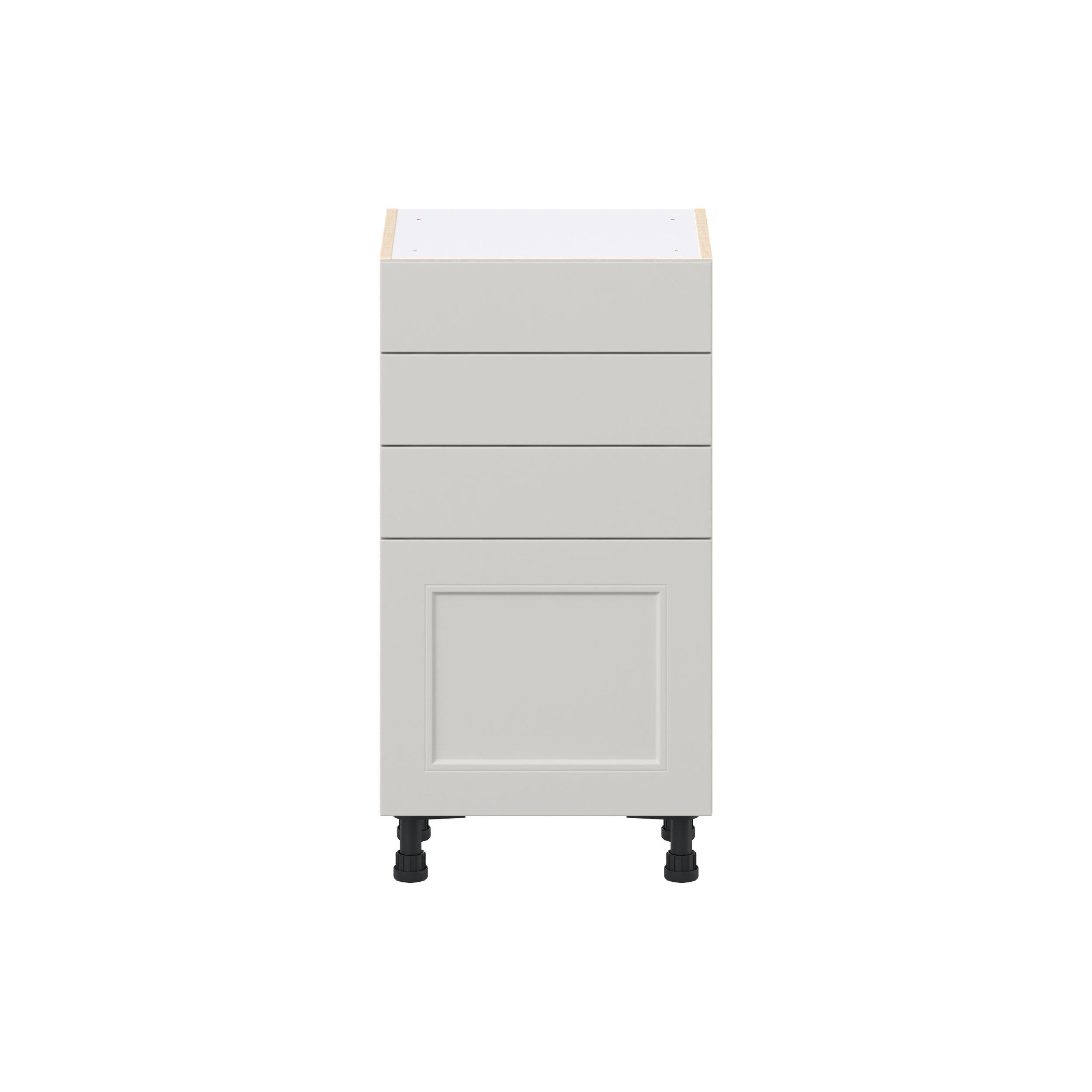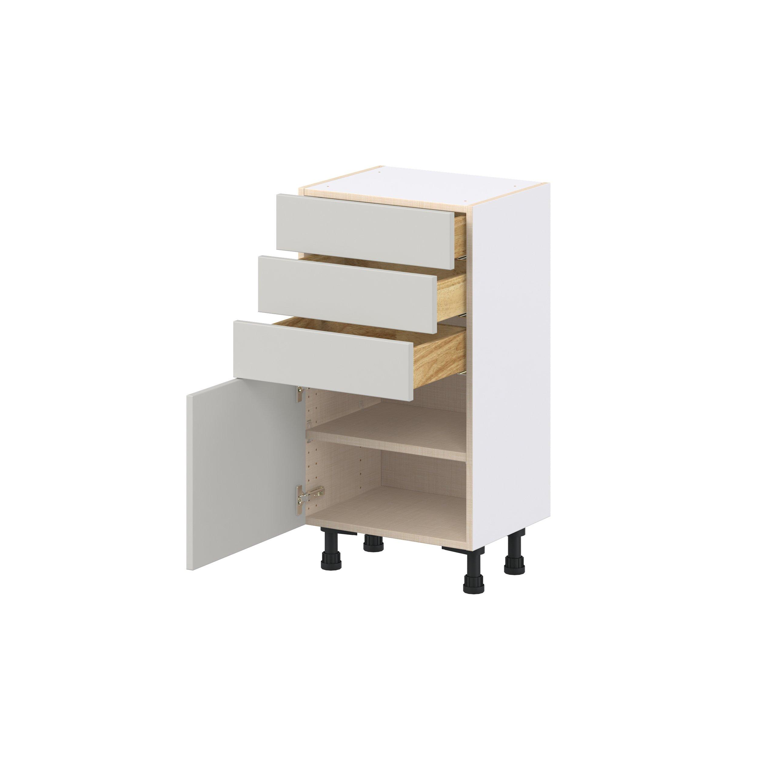 Treat yourself to the refined charm of Lenox shaker-inspired cabinets. Featuring a high-quality premium painted light gray finish, this collection offers sophistication that’s truly built to endure. Crafted from one-piece MDF Studio Design Collection Lenox 18 in. Painted Light Gray Shallow Base Cabinet is designed to resist hairline cracks while the easy-to-clean finish stands up to stains and moisture. Featuring 5-piece doors and dovetail drawer joints, these cabinets offer durability and elegance. This collection combines style with everyday storage solutions.