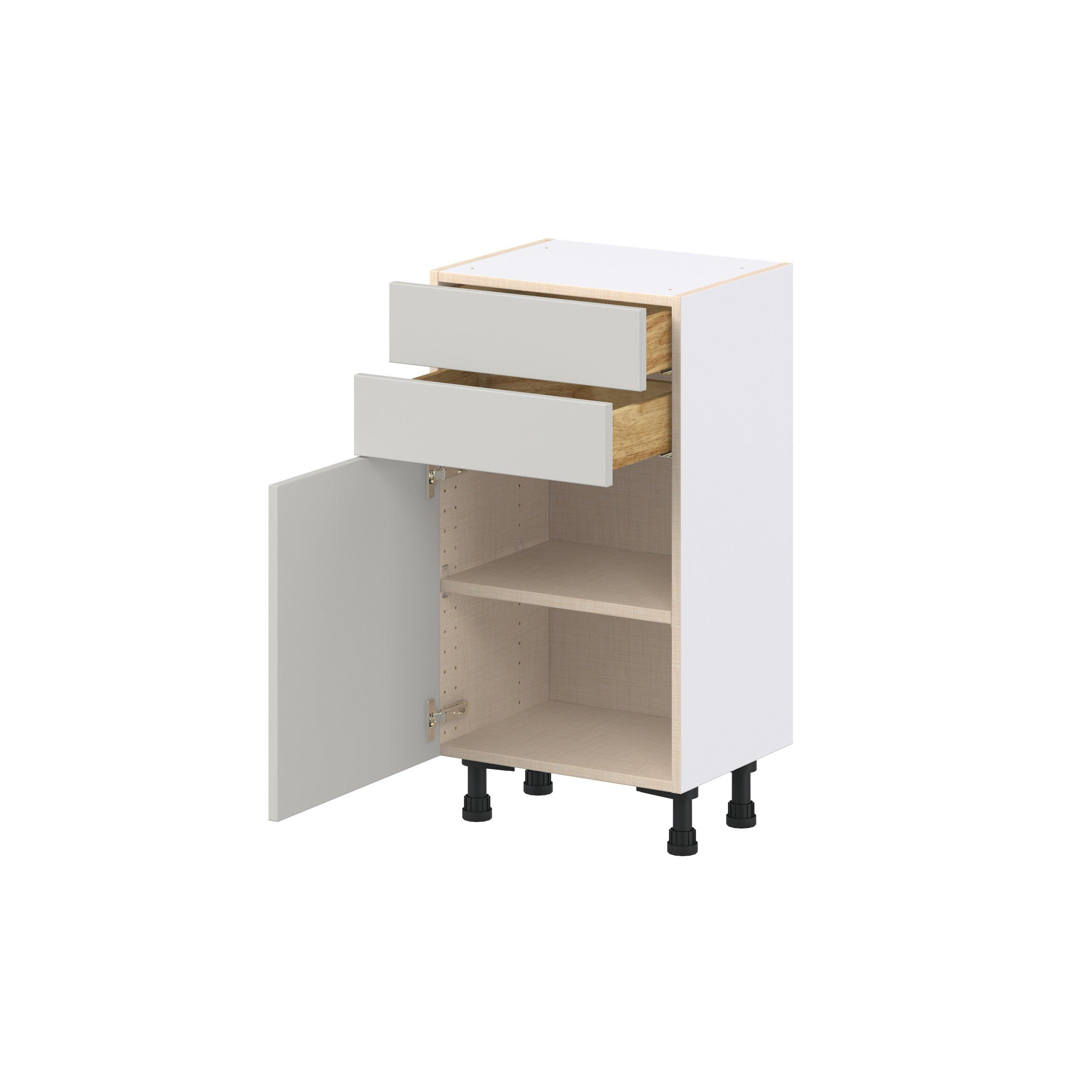 Treat yourself to the refined charm of Lenox shaker-inspired cabinets. Featuring a high-quality premium painted light gray finish, this collection offers sophistication that’s truly built to endure. Crafted from one-piece MDF Studio Design Collection Lenox 18 in. Painted Light Gray Shallow Base Cabinet is designed to resist hairline cracks while the easy-to-clean finish stands up to stains and moisture. Featuring 5-piece doors and dovetail drawer joints, these cabinets offer durability and elegance. This collection combines style with everyday storage solutions.